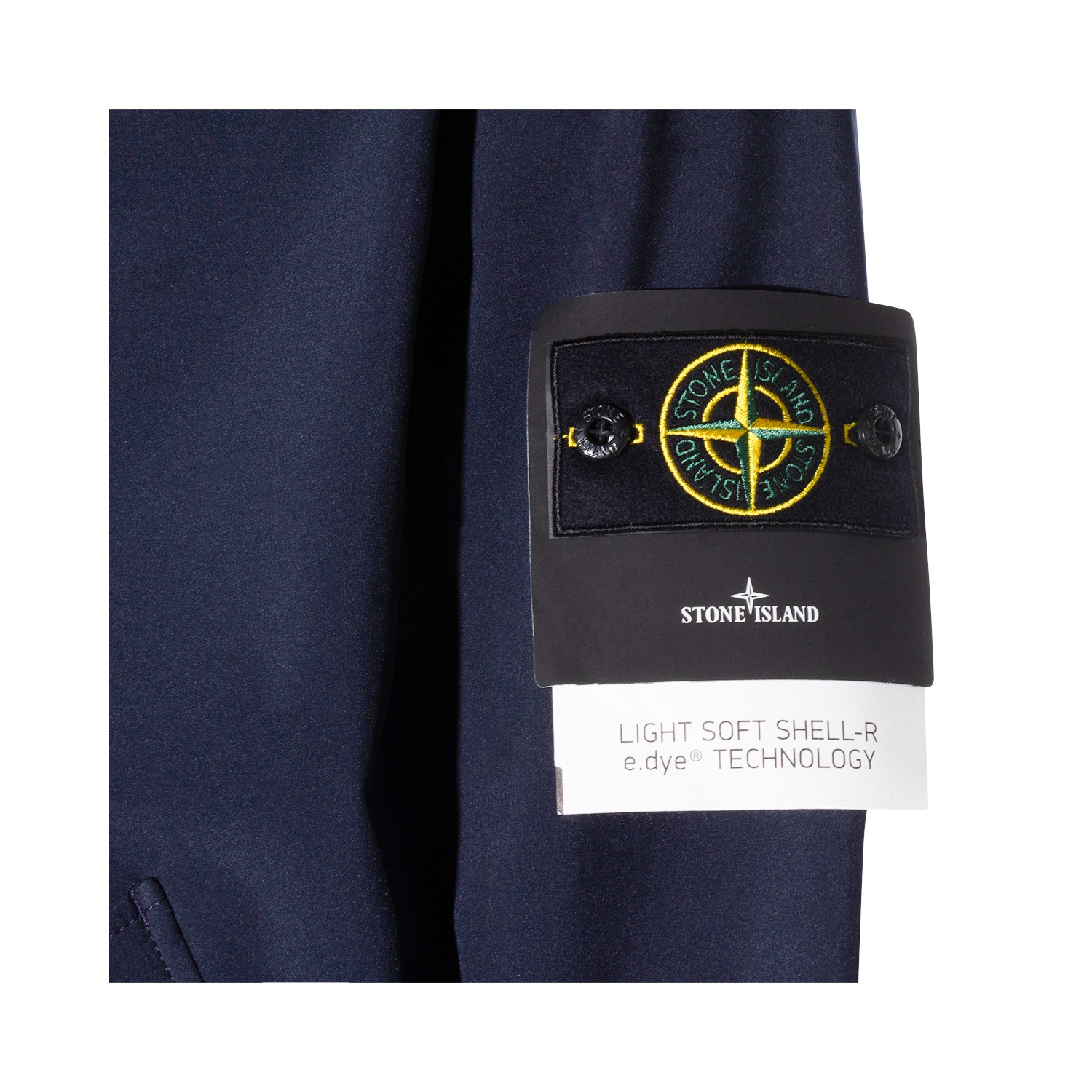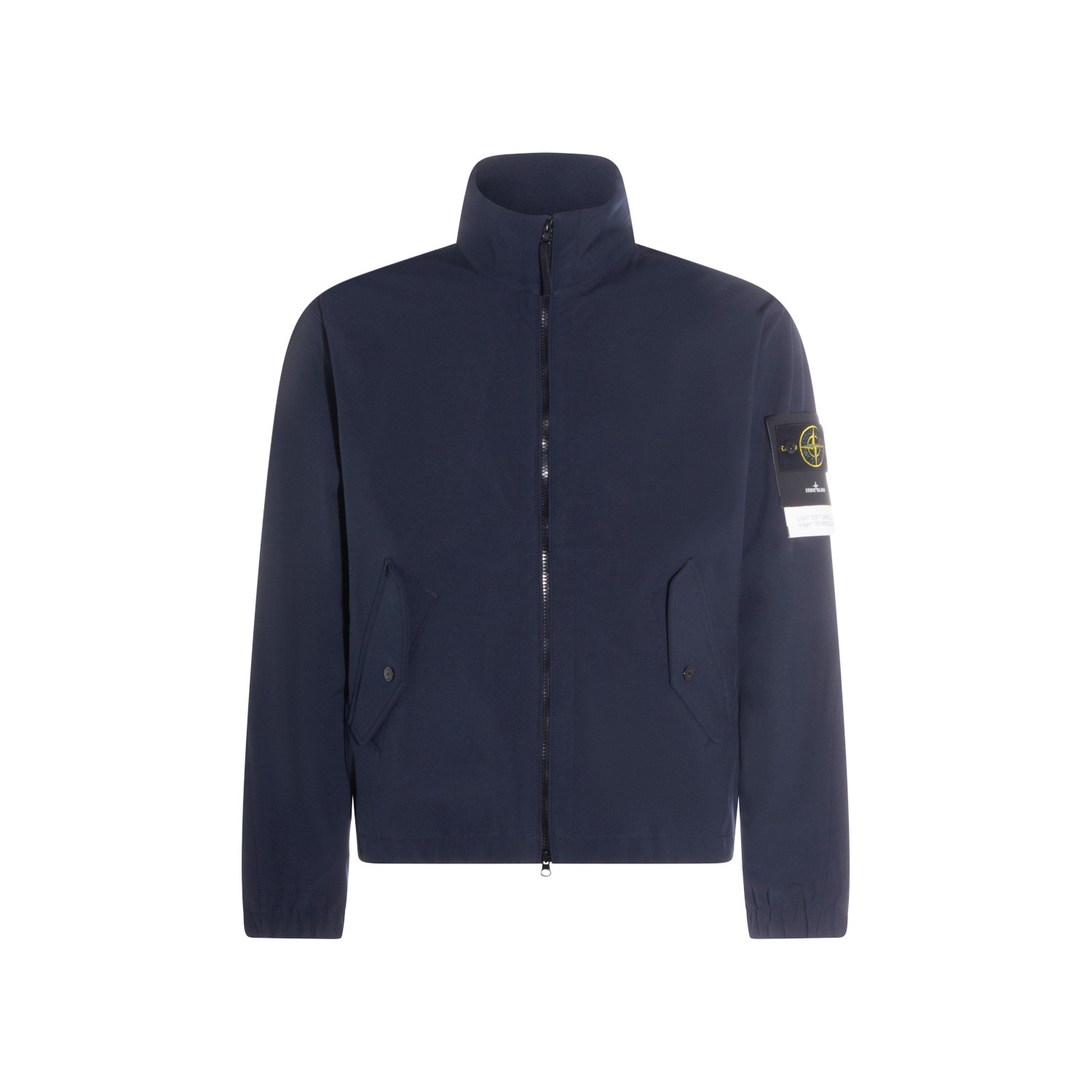 Navy casual jacket from Stone Island featuring high collar, long sleeves, zip fastening, logo patch, pockets and regular fit.