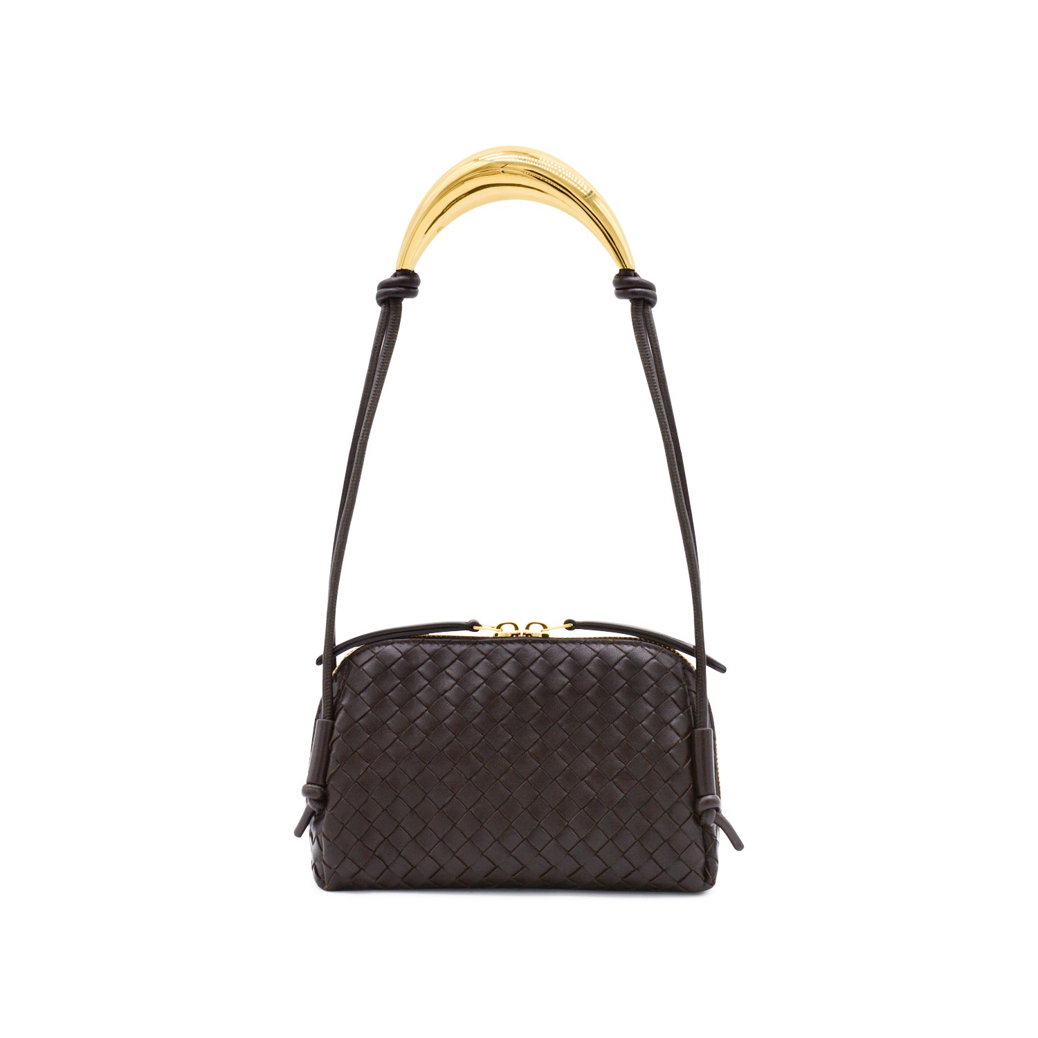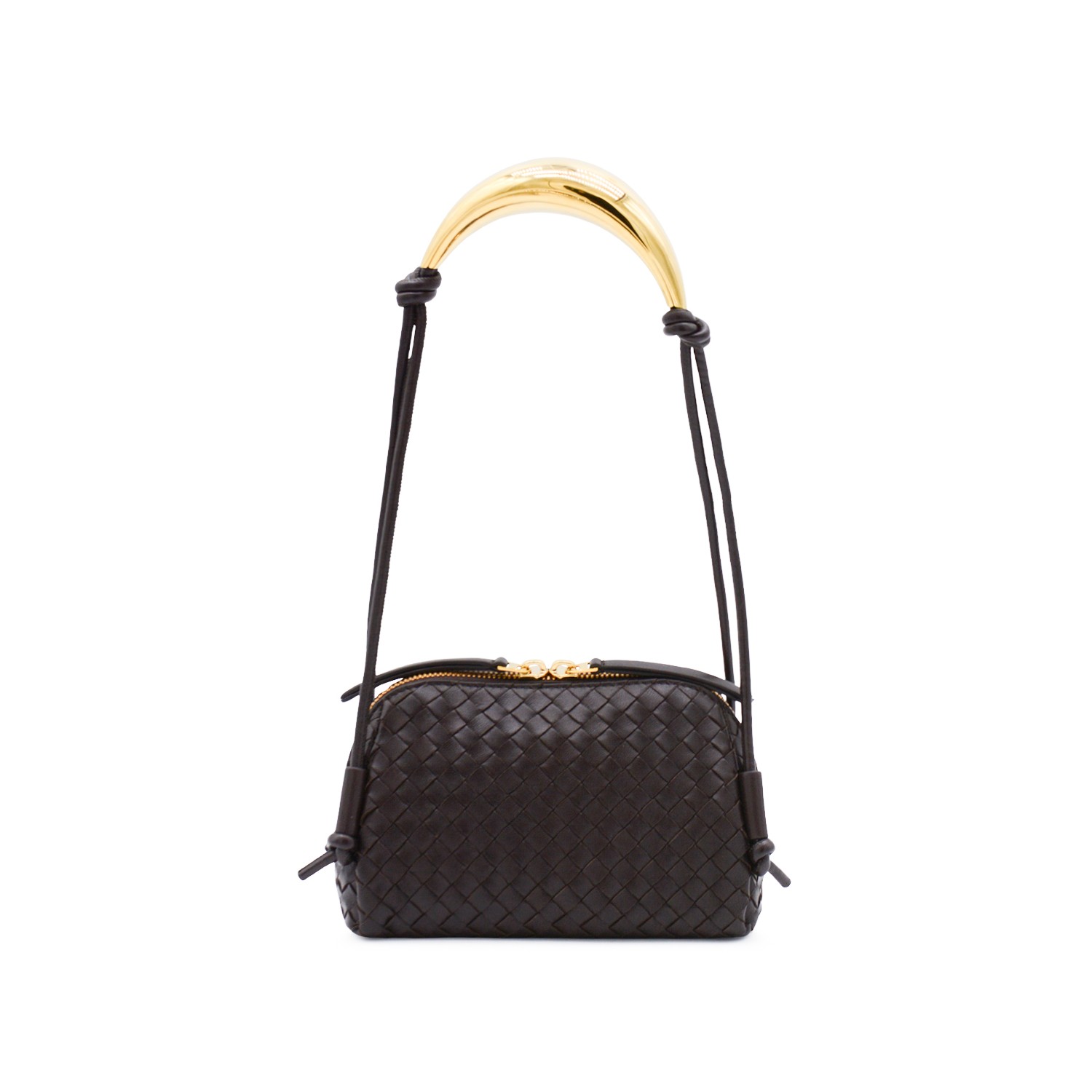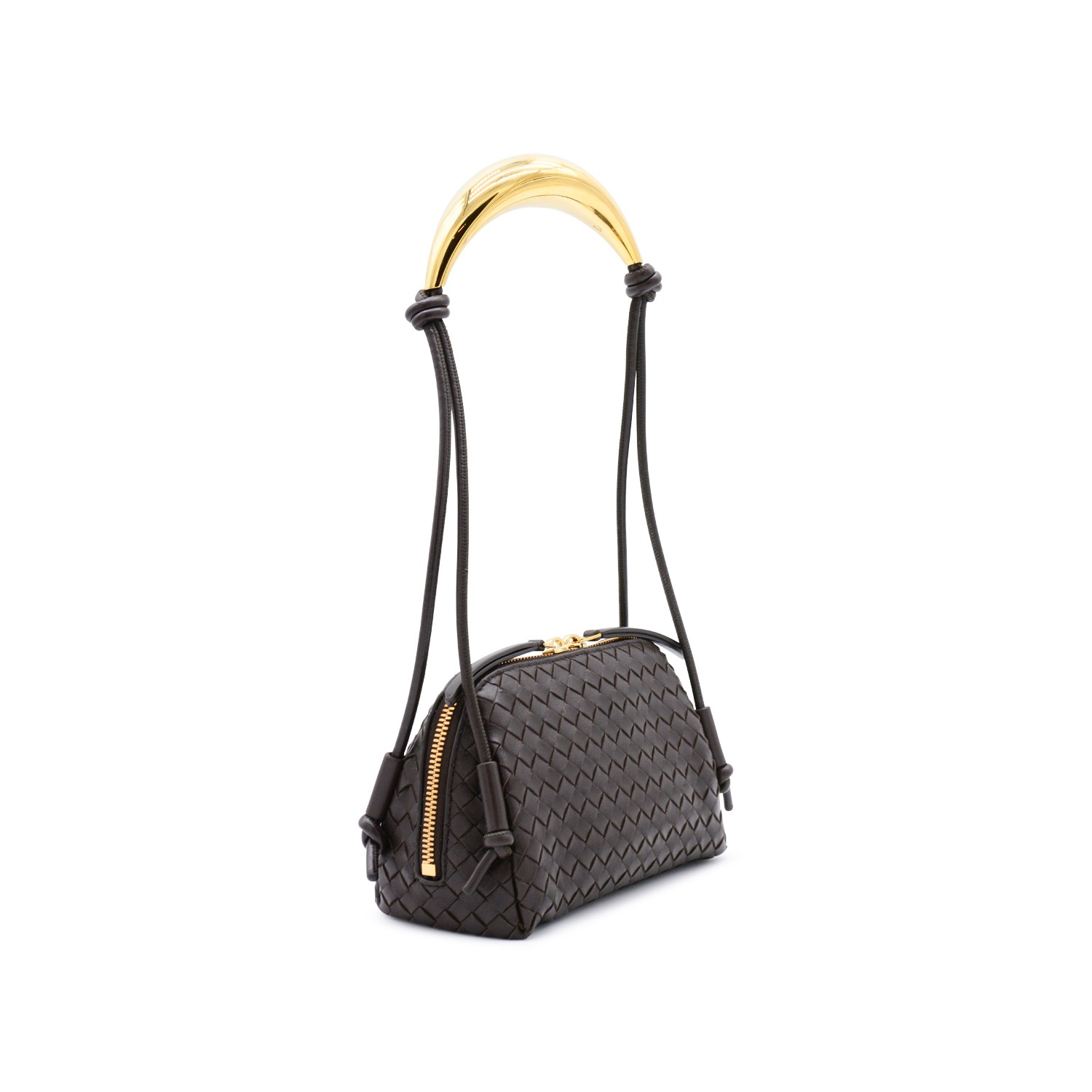 Black leather Concert pouch from Bottega Veneta featuring metal handle, all-over Intrecciato motif, double zip closure, main compartment and internal flat pocket.