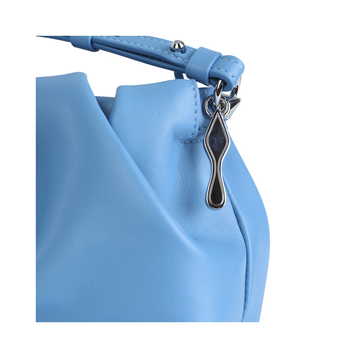 Light blue leather Eva mini clutch from Christian Louboutin featuring adjustable and removable shoulder strap, zip fastening and main compartment.