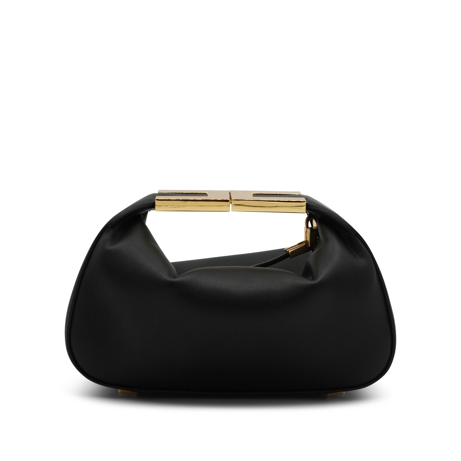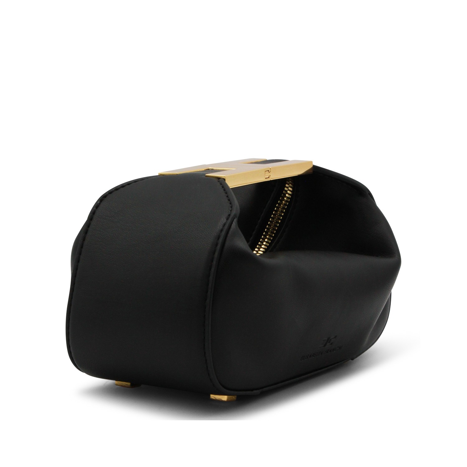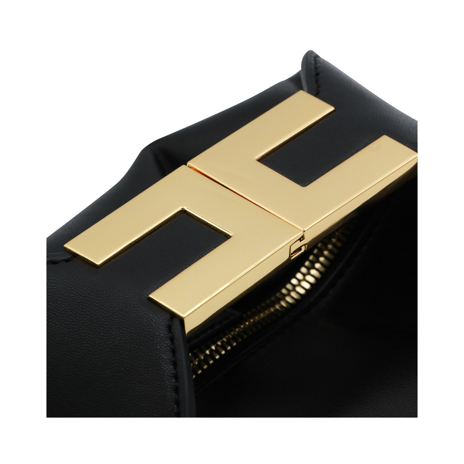 Black Hobo clutch from Elisabetta Franchi featuring logo plaque on the handle, zip fastening, gold tone hardware and main compartment.