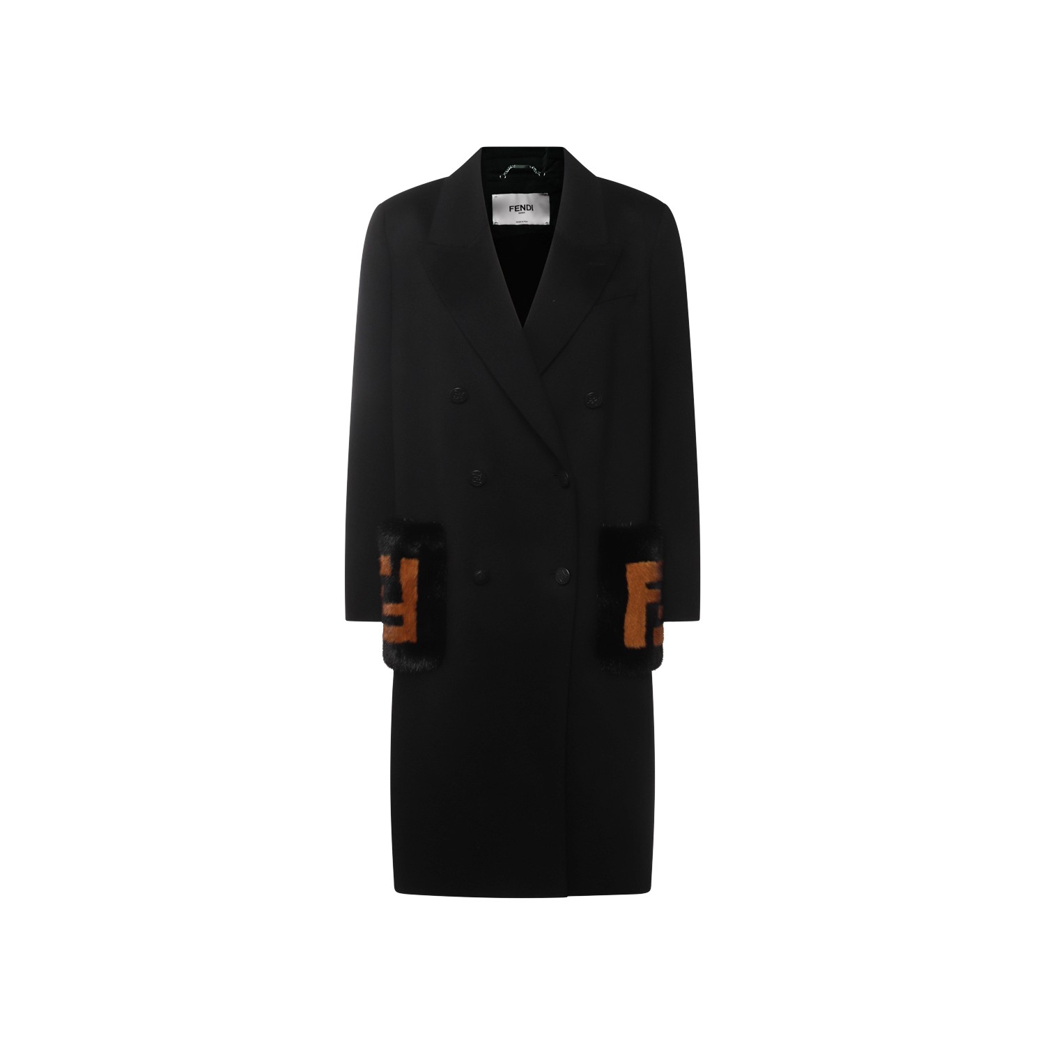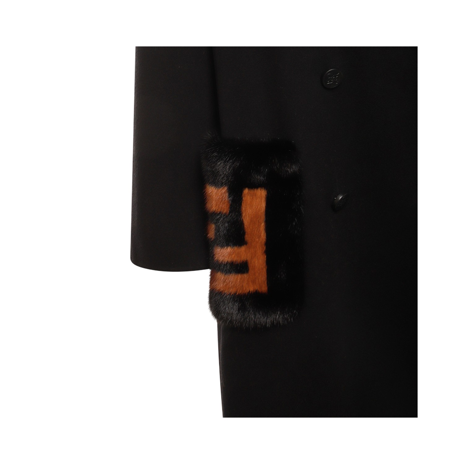 Black wool coat from Fendi featuring long sleeves, buttons fastening, pockets with logo detail and regular vestibility.