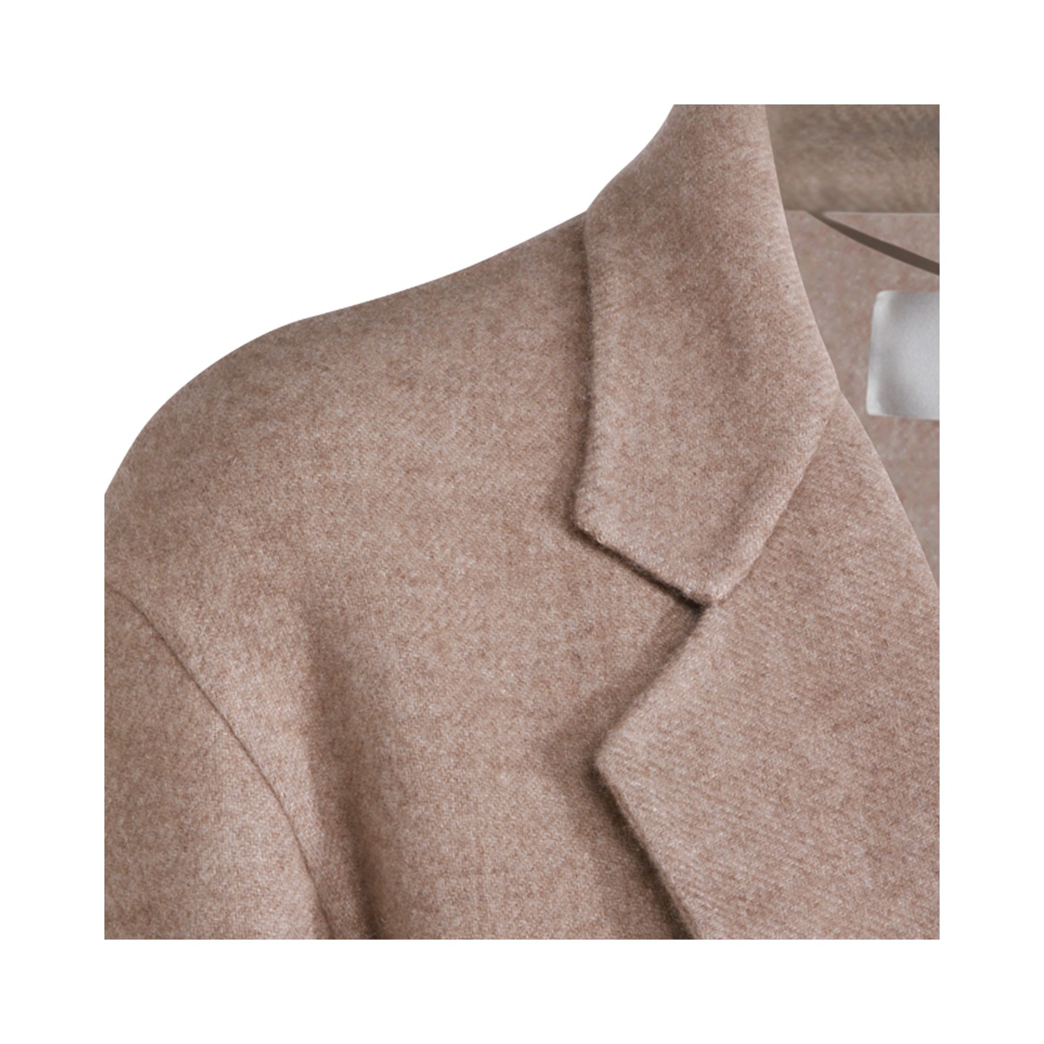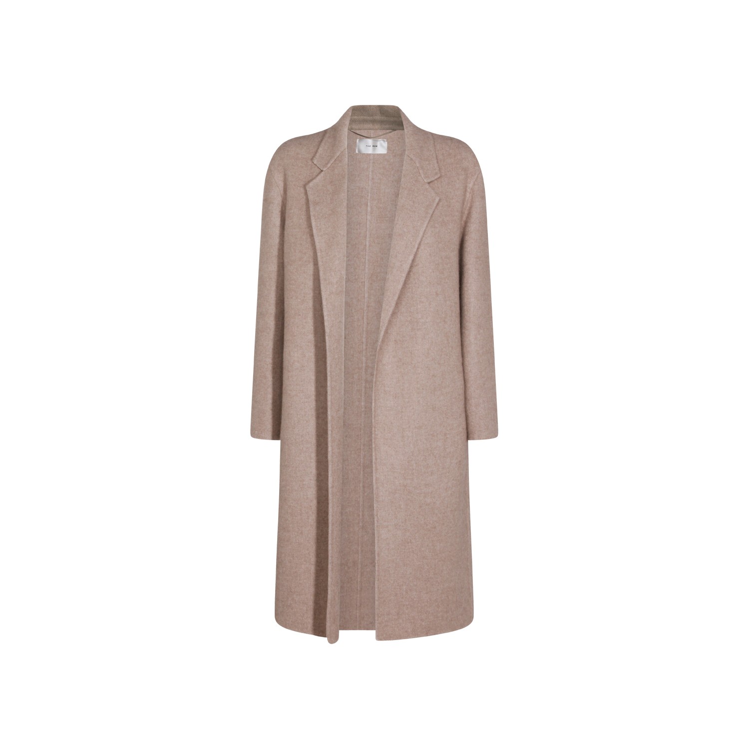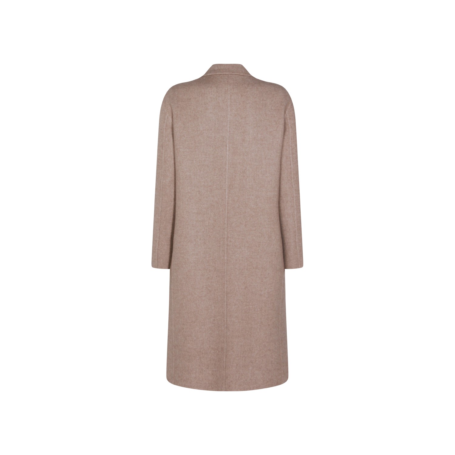 Beige cashmere coat from The Row featuring lapel collar, long sleeves, no closure and soft vestibility.