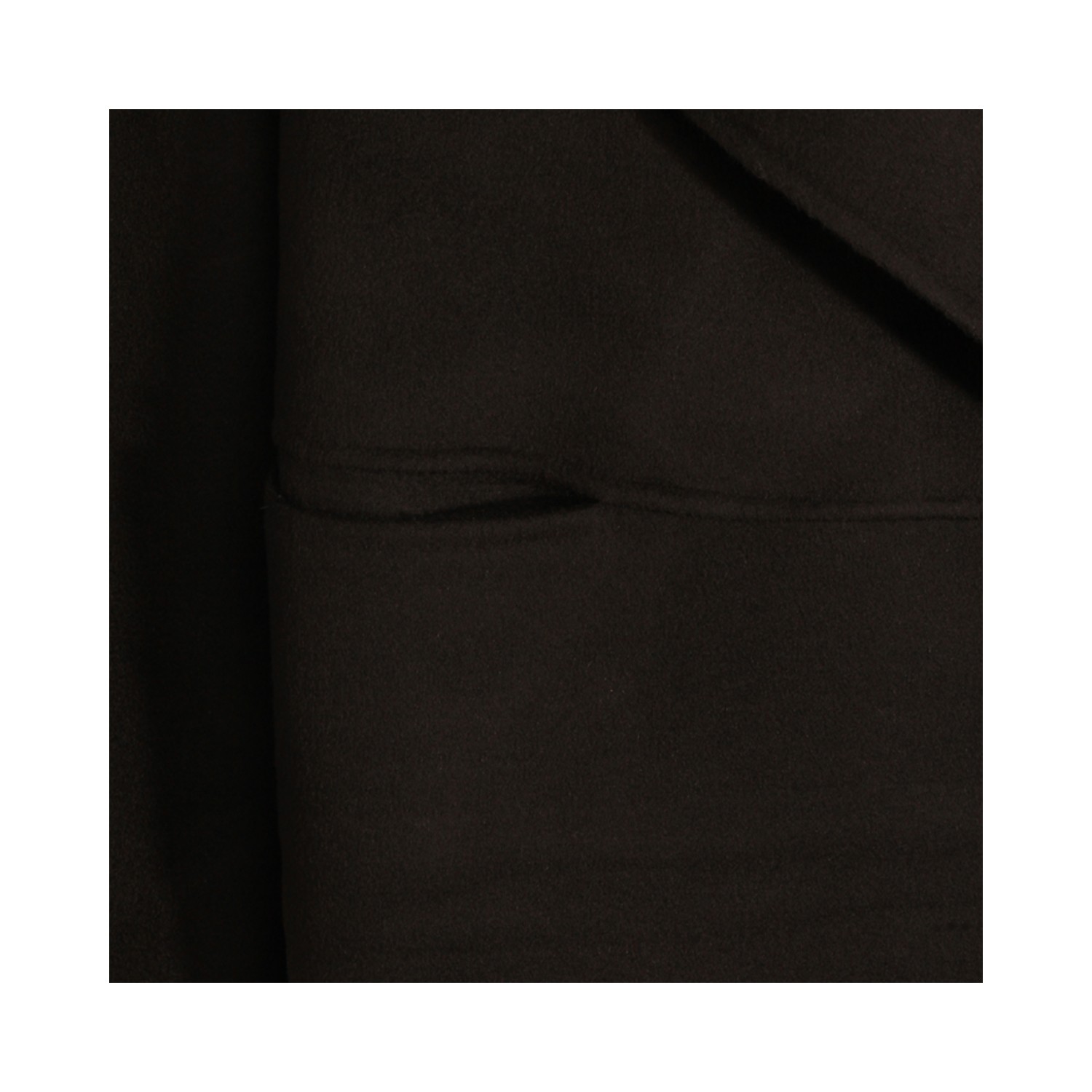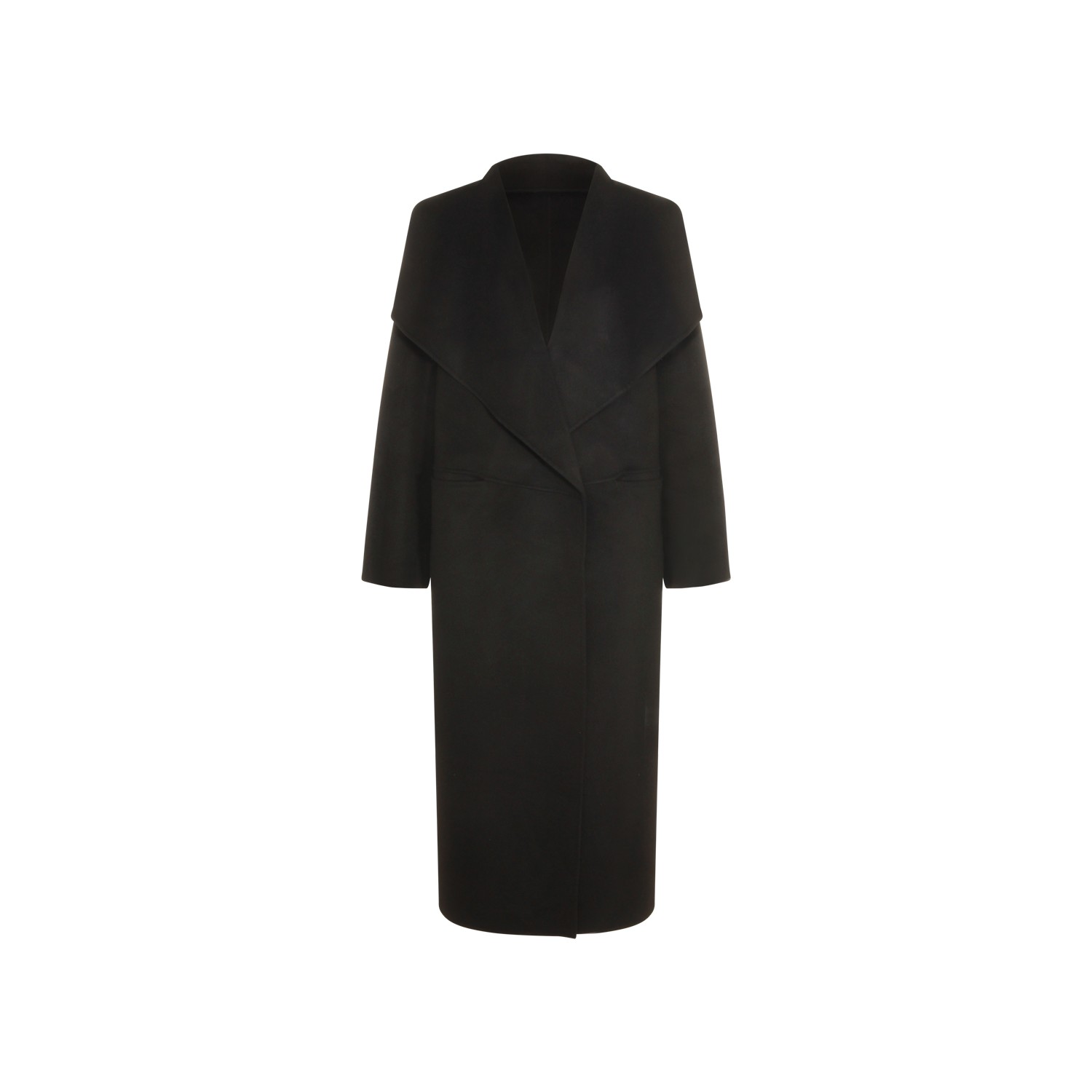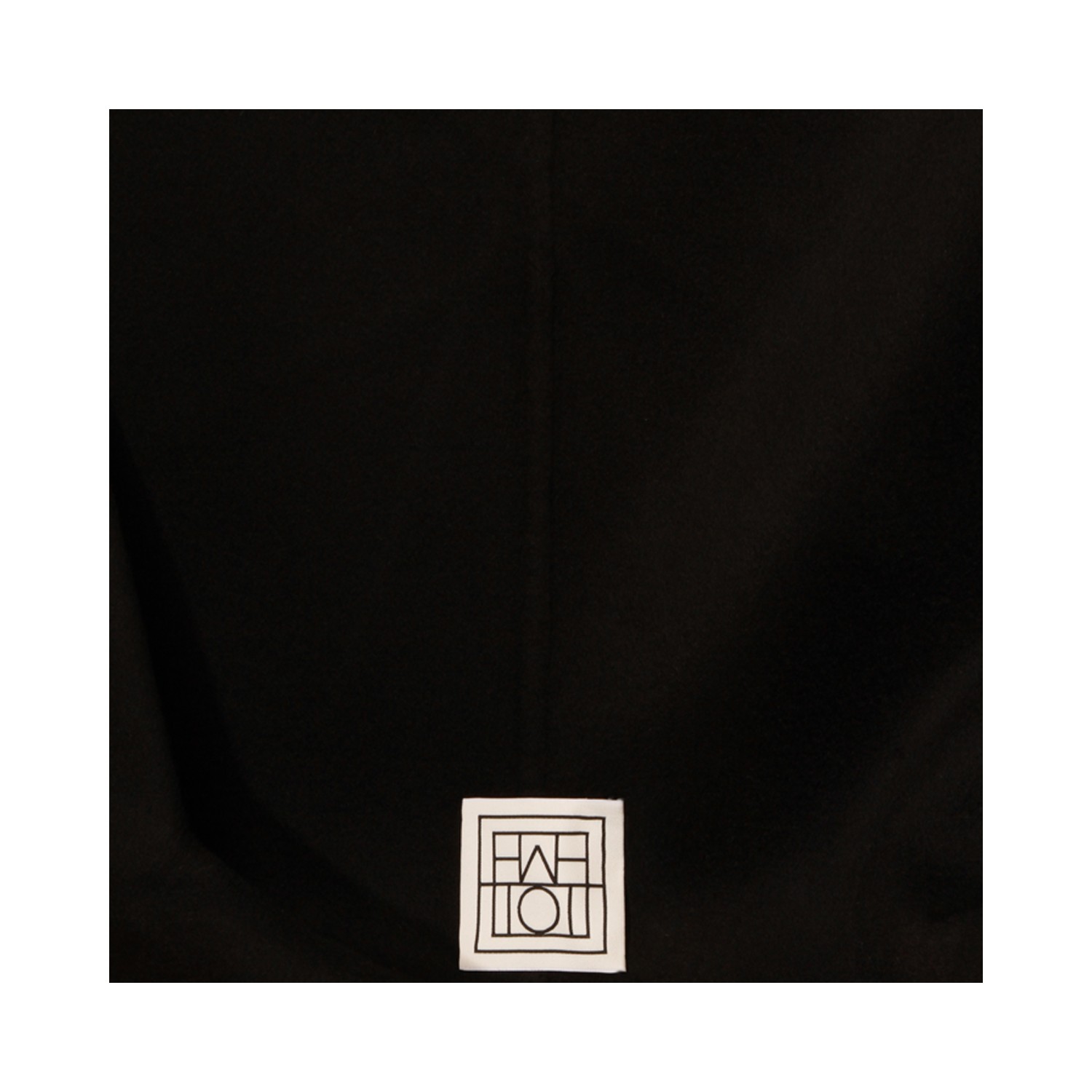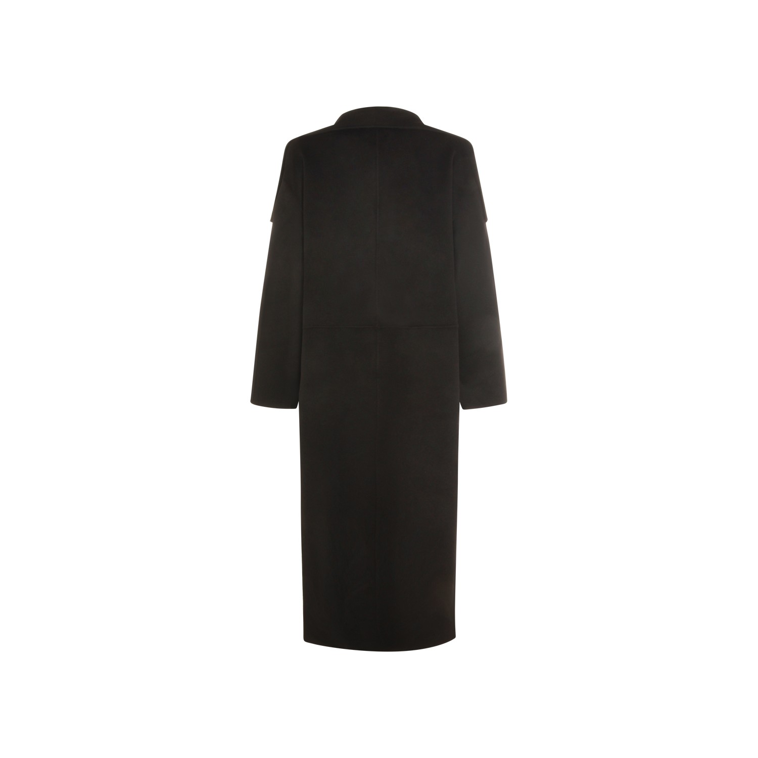 Black wool coat from Toteme featuring lapel collar, long sleeves, frontal closure and long sleeves.
