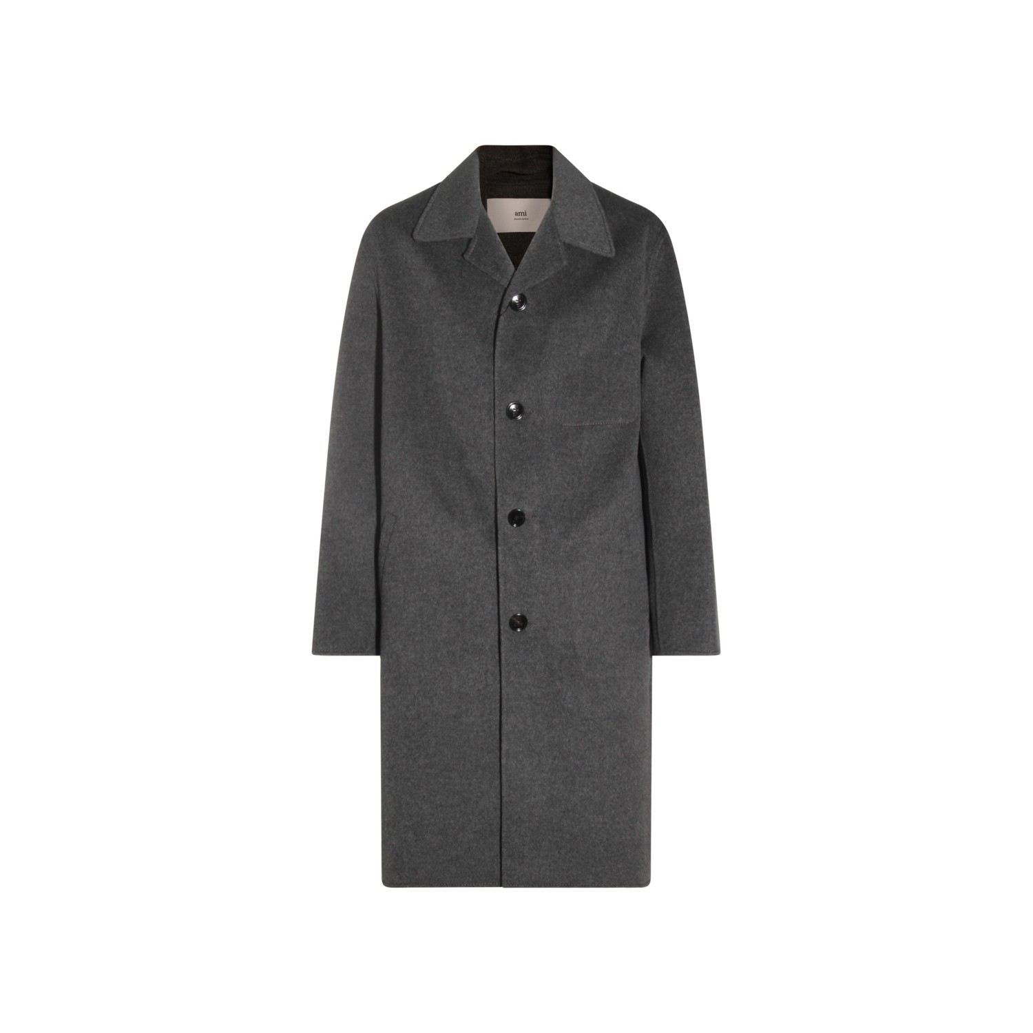Grey wool blend coat from Ami Paris featuring shirt collar, buttons fastening