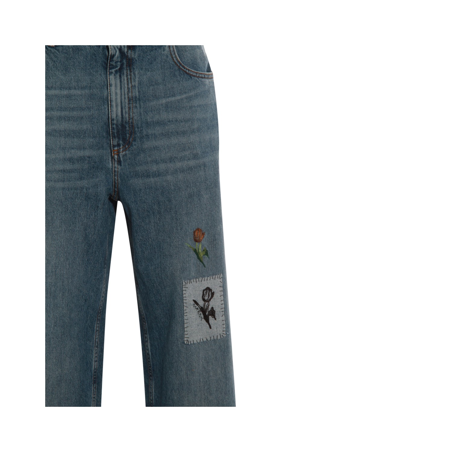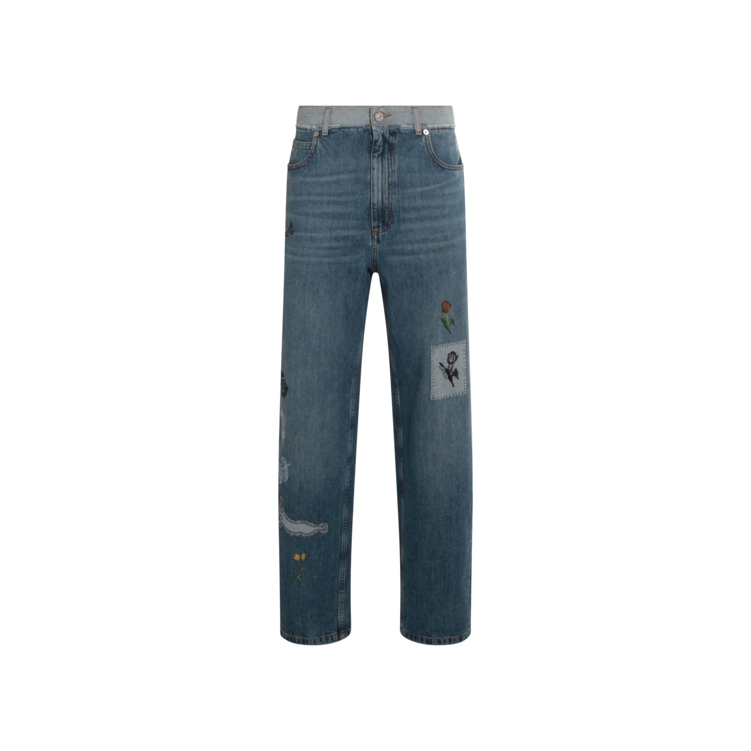 Blue cotton jeans from Marni featuring belt loops, zip and button fastening, pockets, details, straight leg and regular vestibility.