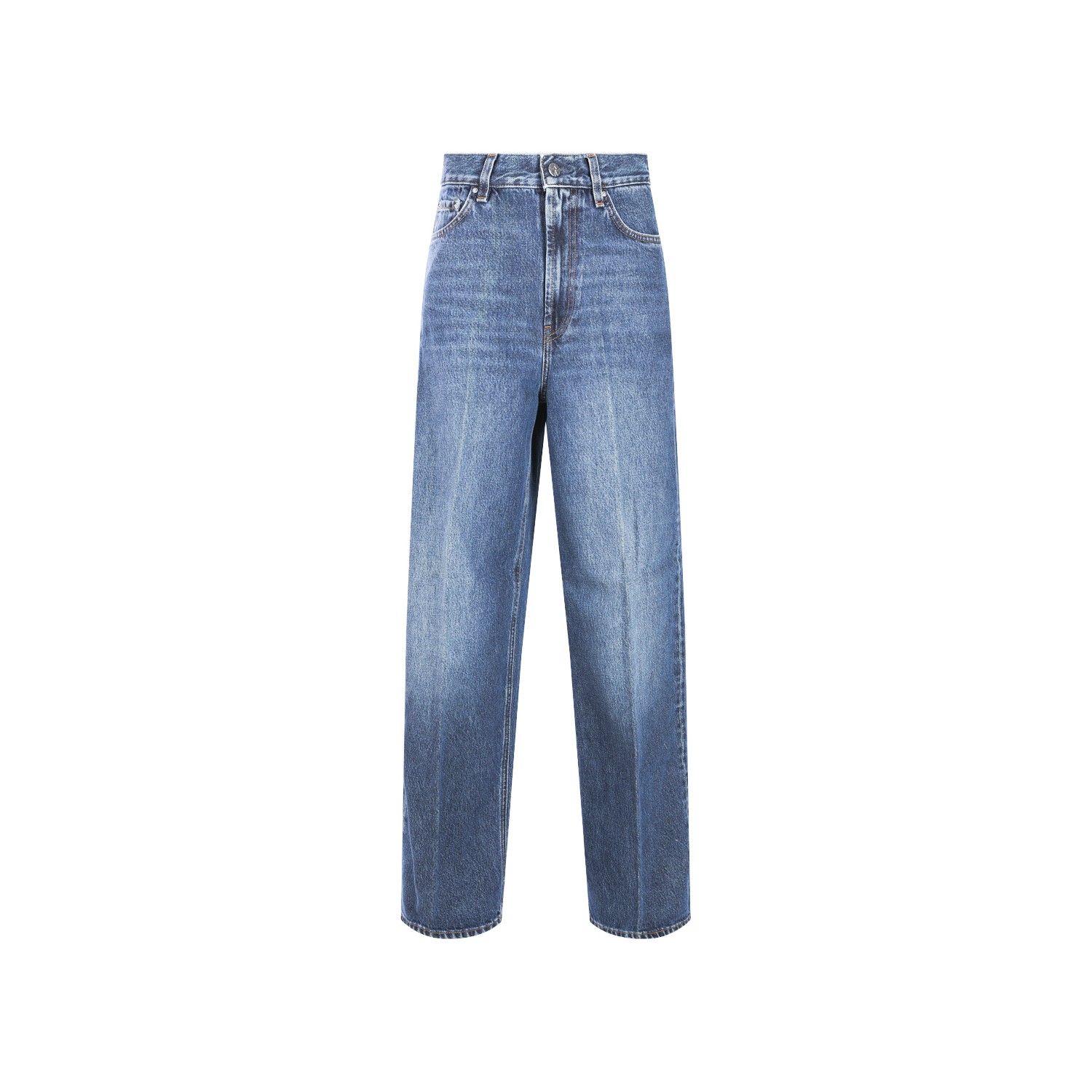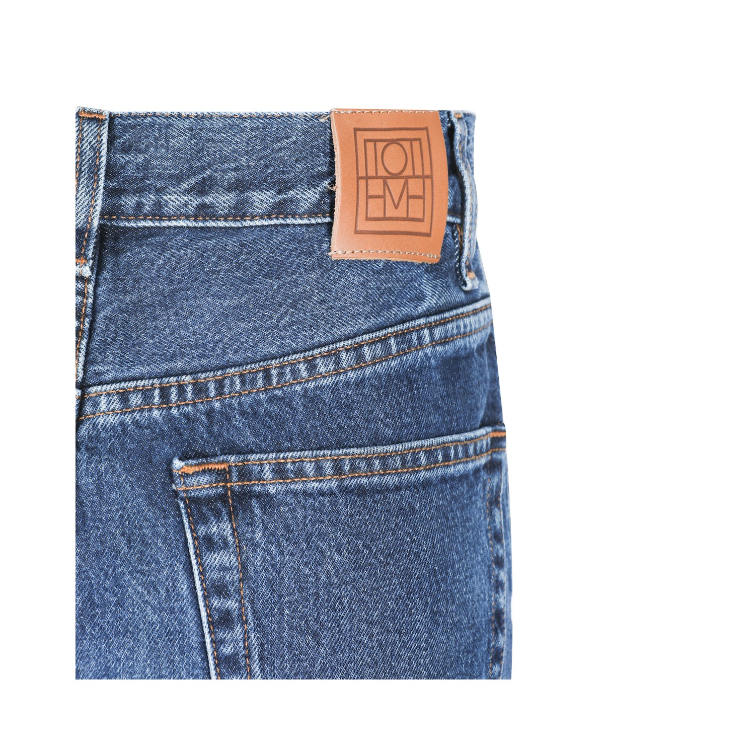 Dark blue cotton L.32 jeans from Toteme featuring high waist, belt loops, classic five pockets and wide leg.