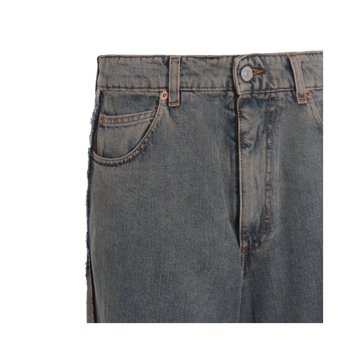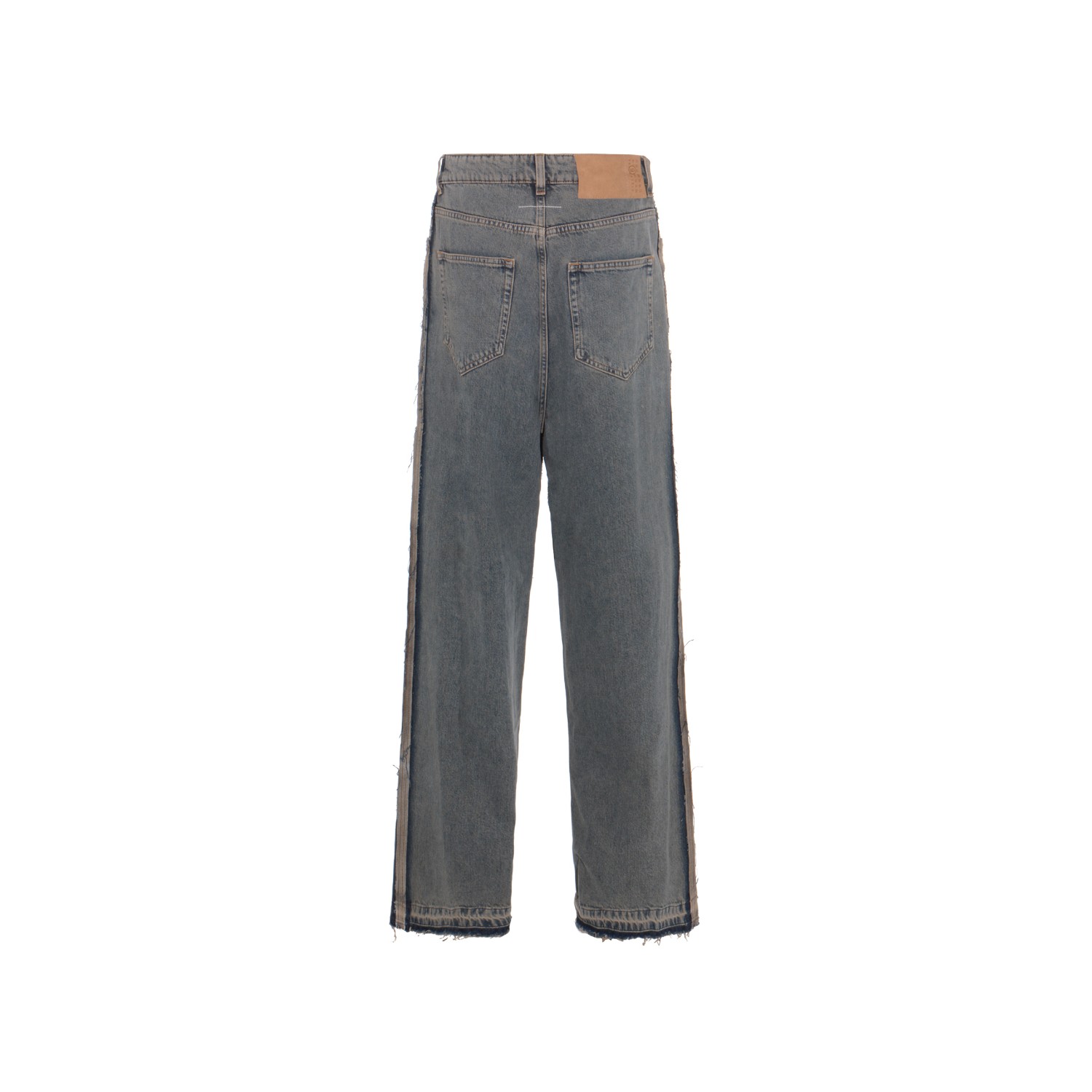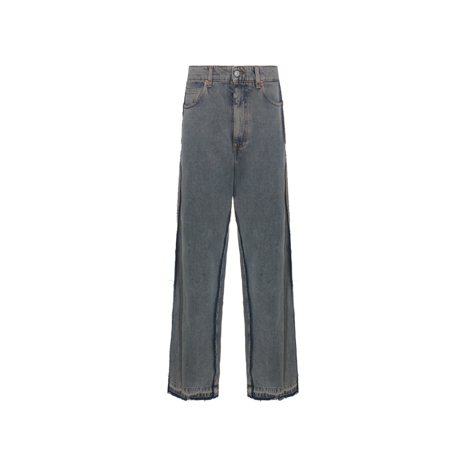 Light grey cotton jeans from MM6 Maison Margiela featuring high waist, belt loops, classic five pockets, zip and button fastening, pockets and wide leg.