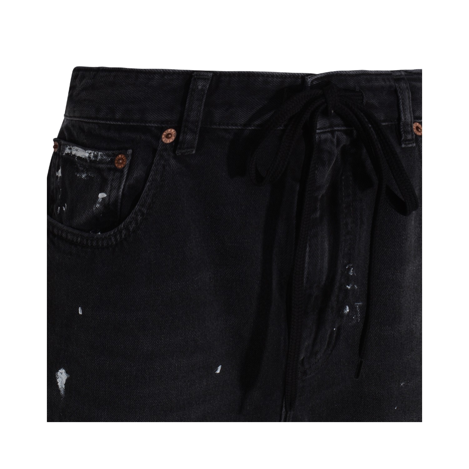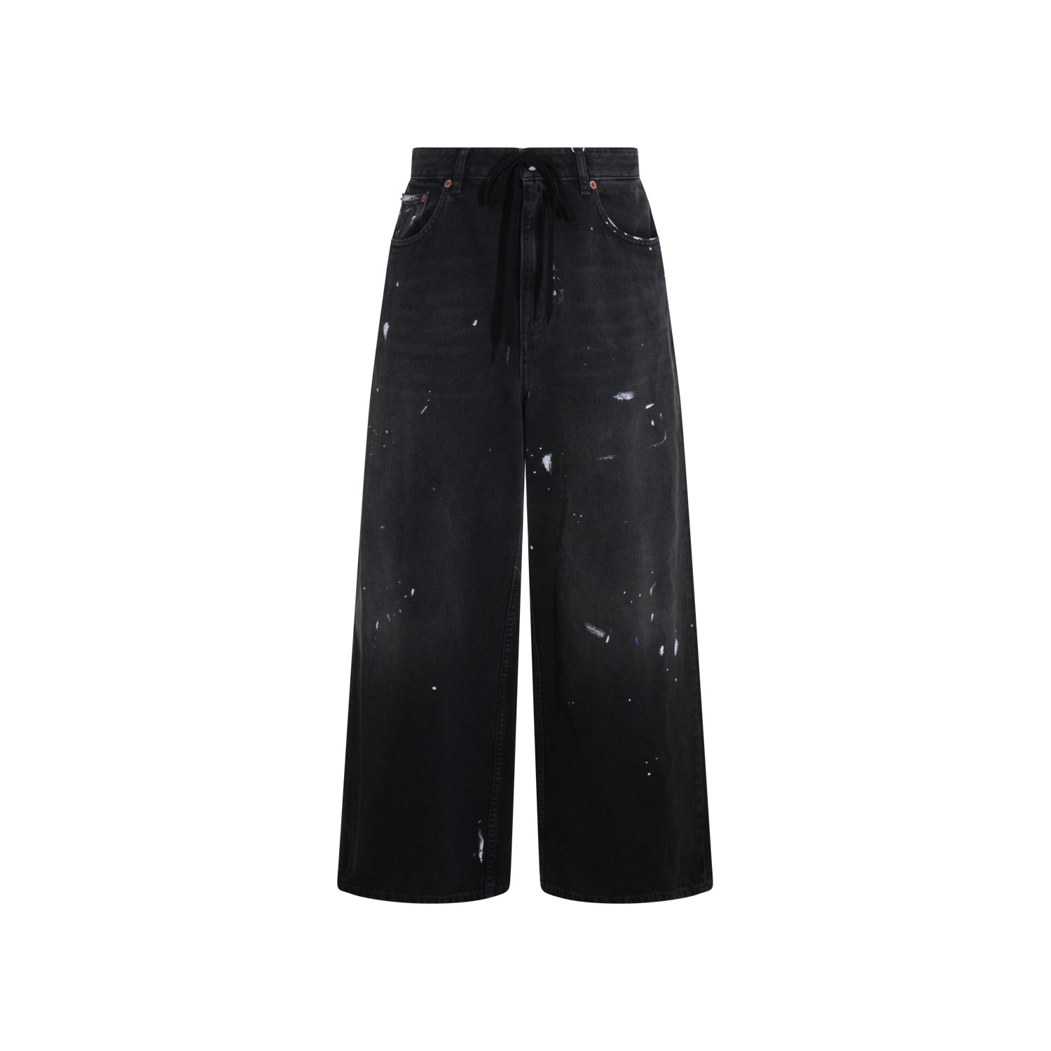 Black cotton jeans from Mm6 Maison Margiela featuring frontal fastening, belt loops, pockets and all over textile details.