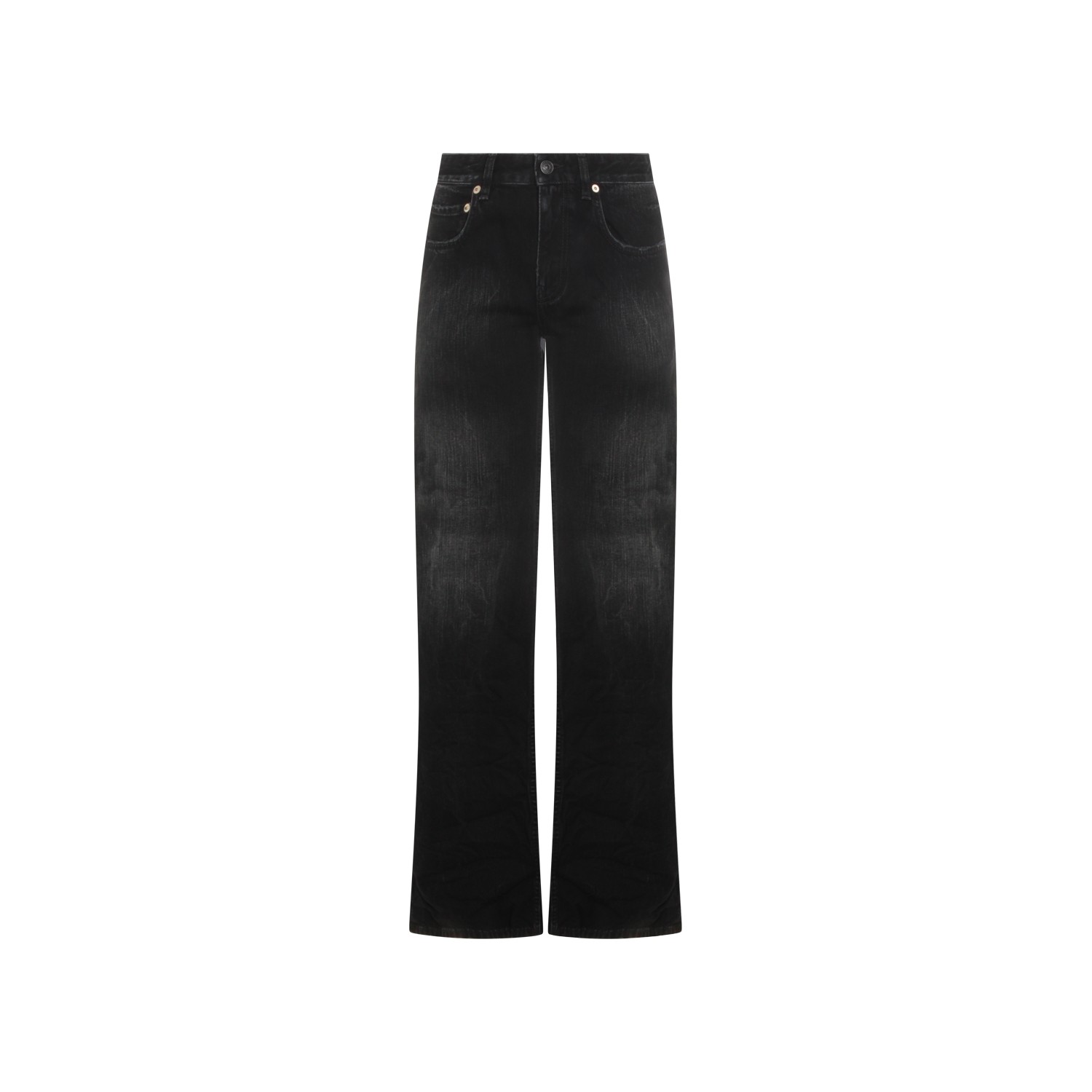 Black cotton jeans from Balenciaga featuring belt loops, high waist, zip and button fastening and wide leg.