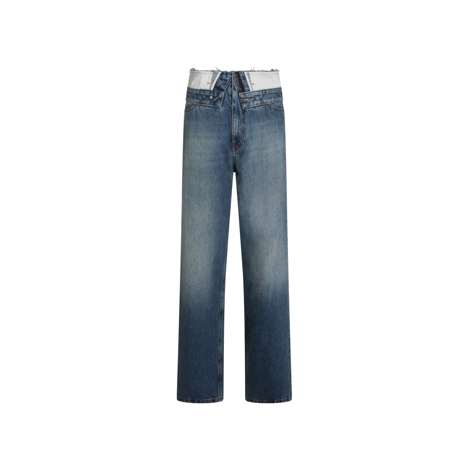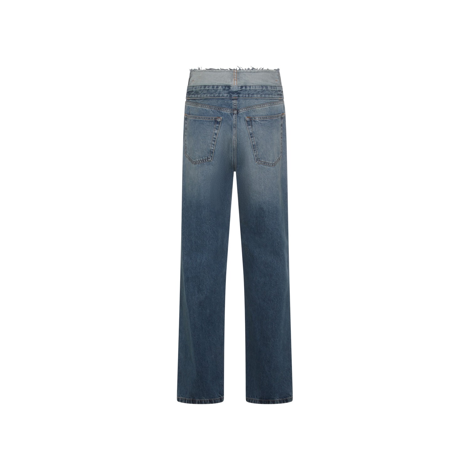 Blue cotton jeans from MM6 Maison Margiela featuring high waist, zip fastening, pockets and straight leg.