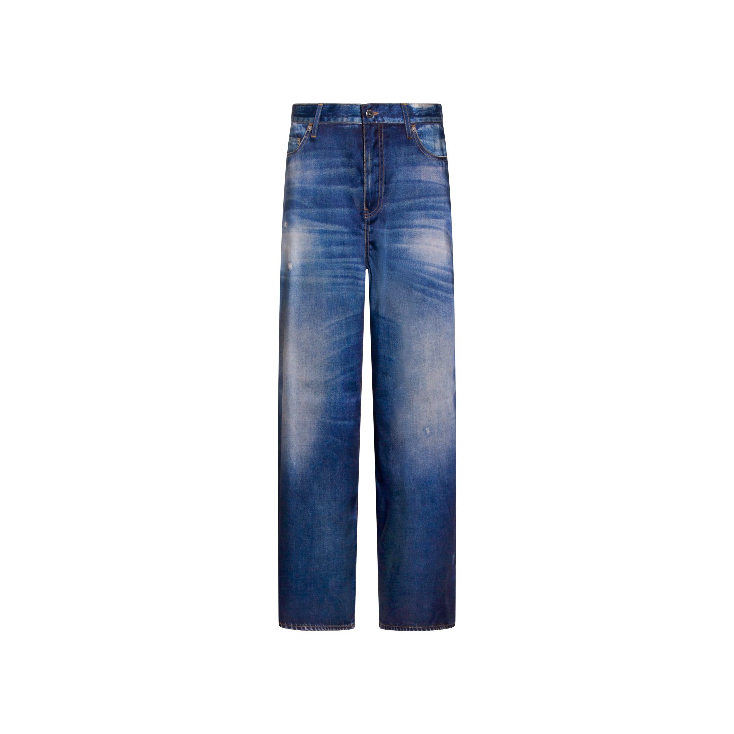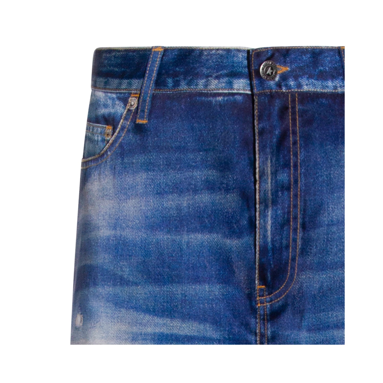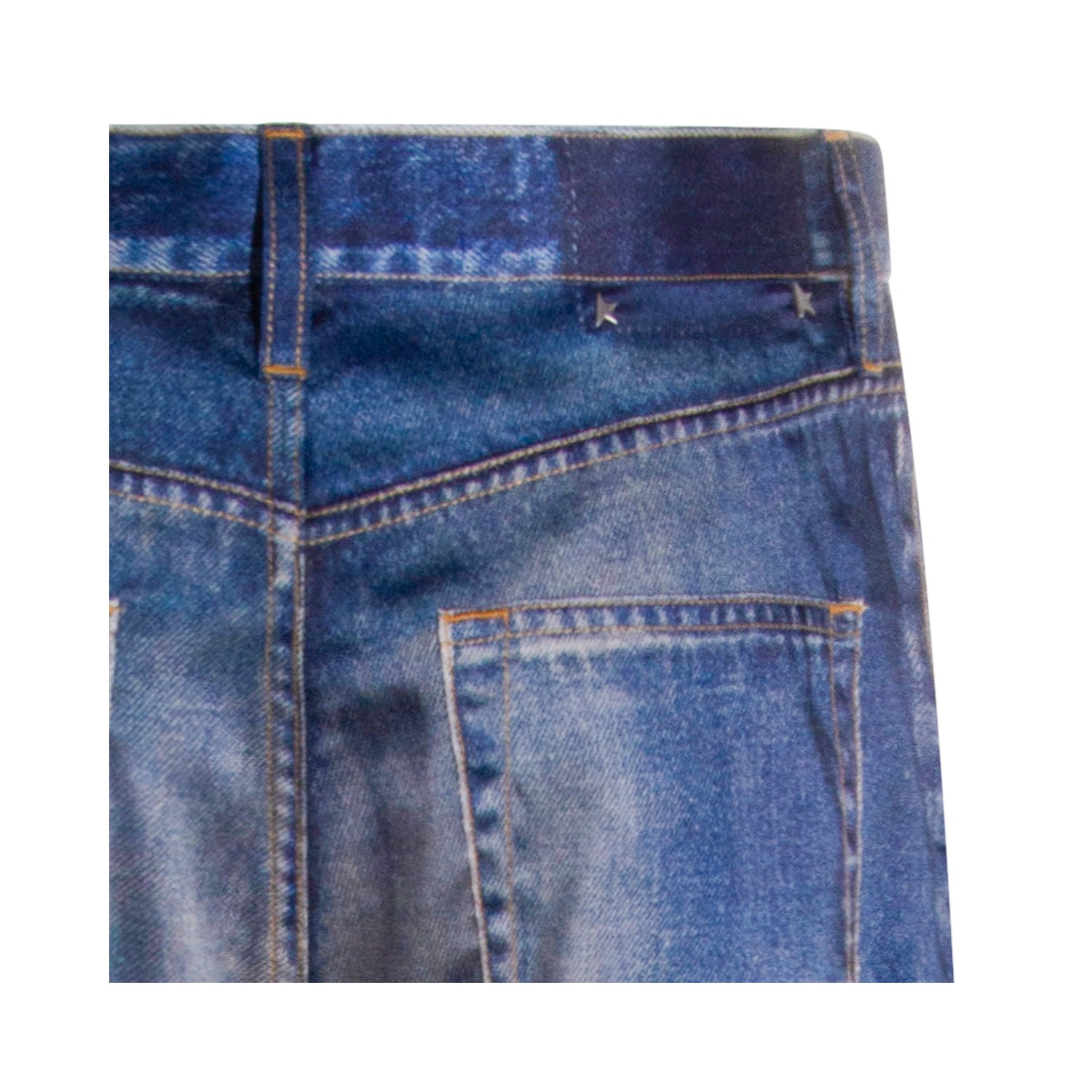 Blue jeans from Golden Goose featuring vintage denim print with belt loops, buttons and zip fly, five pockets, double star stud on the back, mid rise and wide leg.