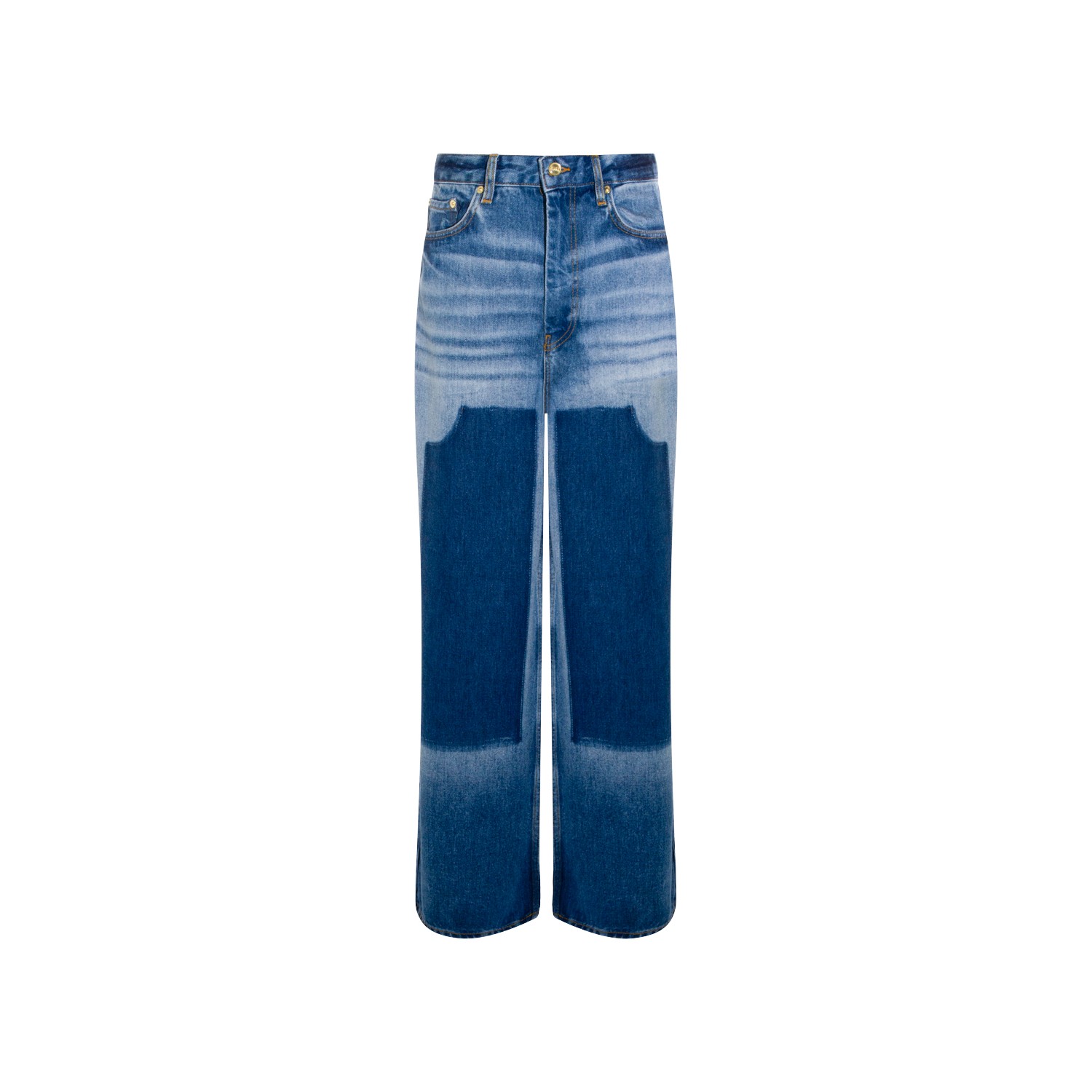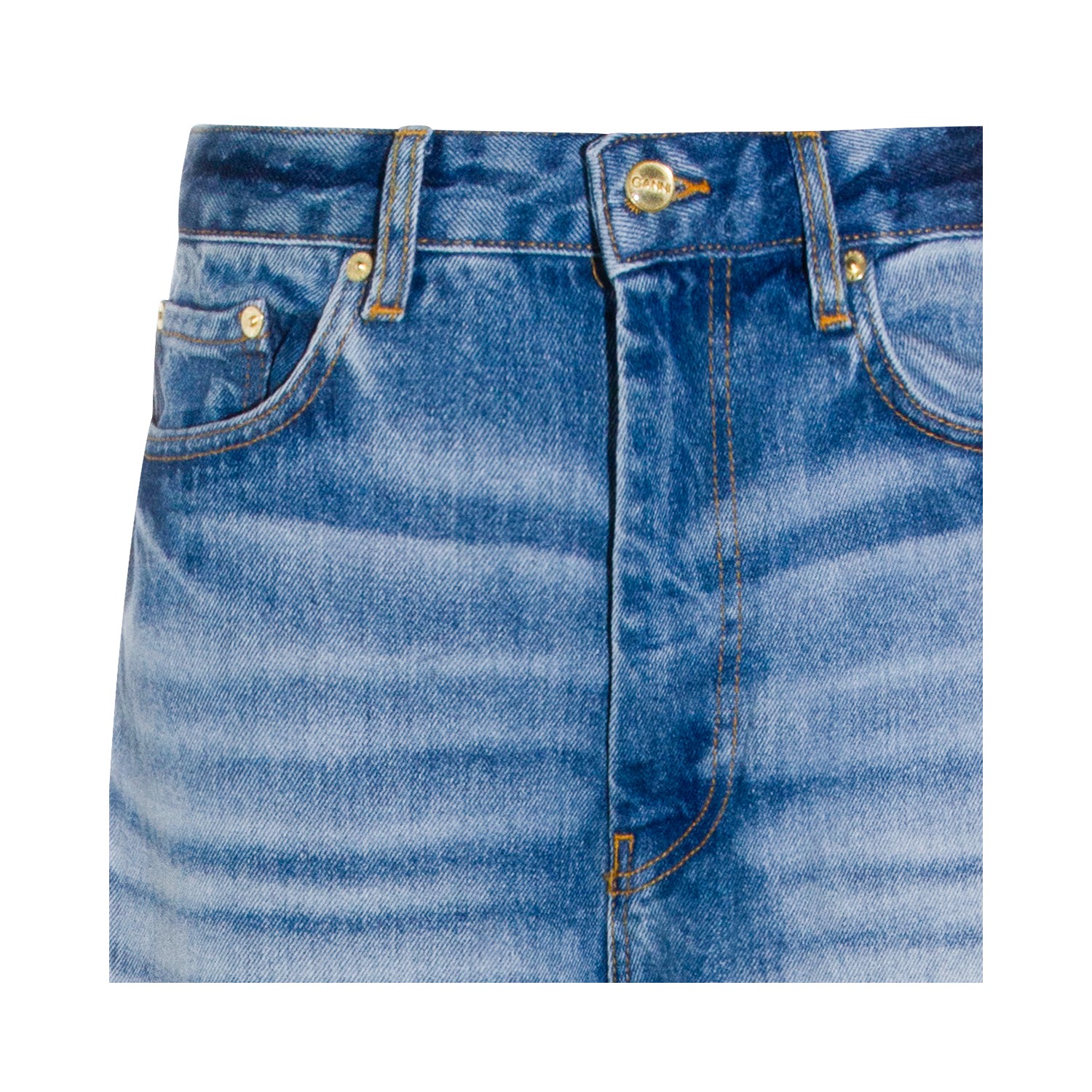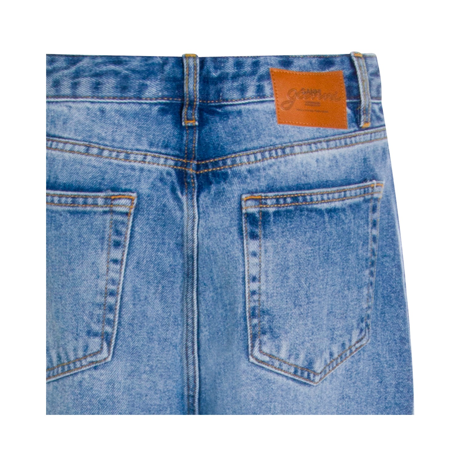 Light blue cotton jeans from Ganni featuring high waist, belt loops, button and zip fastening, five pockets, frontal patch stamp, straight leg and relaxed fit.