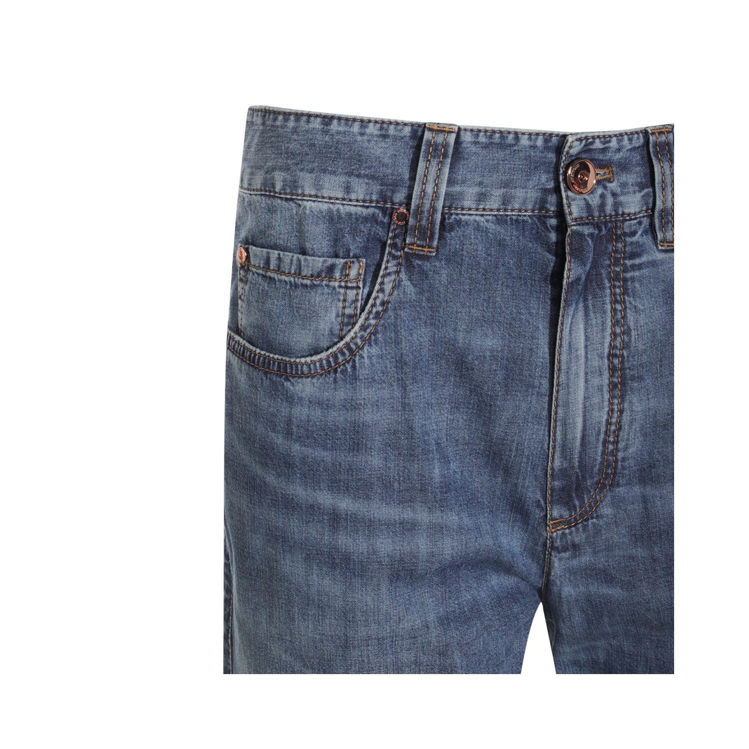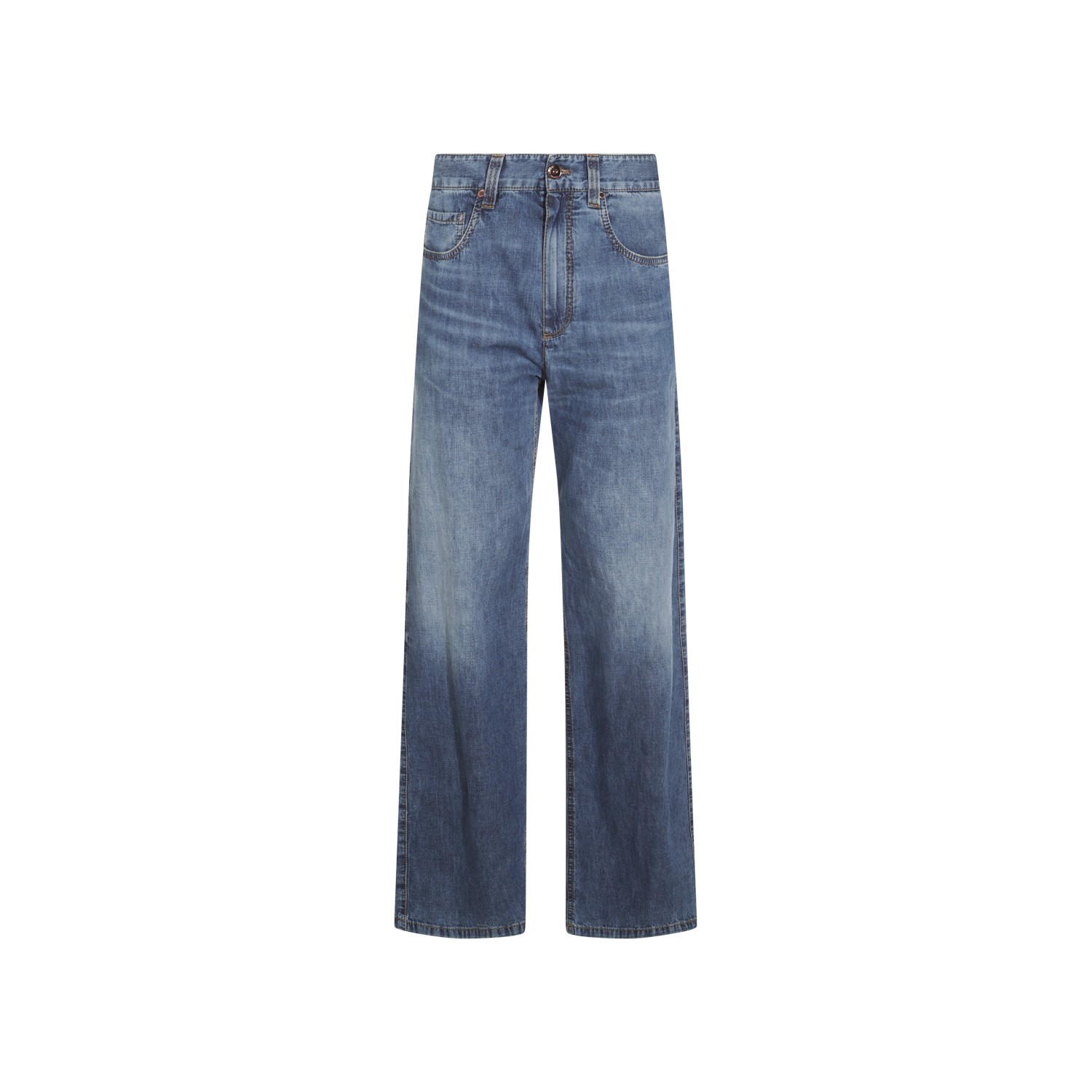 Blue cotton jeans from Brunello Cucinelli featuring frontal fastening, belt loops and regular vestibility.