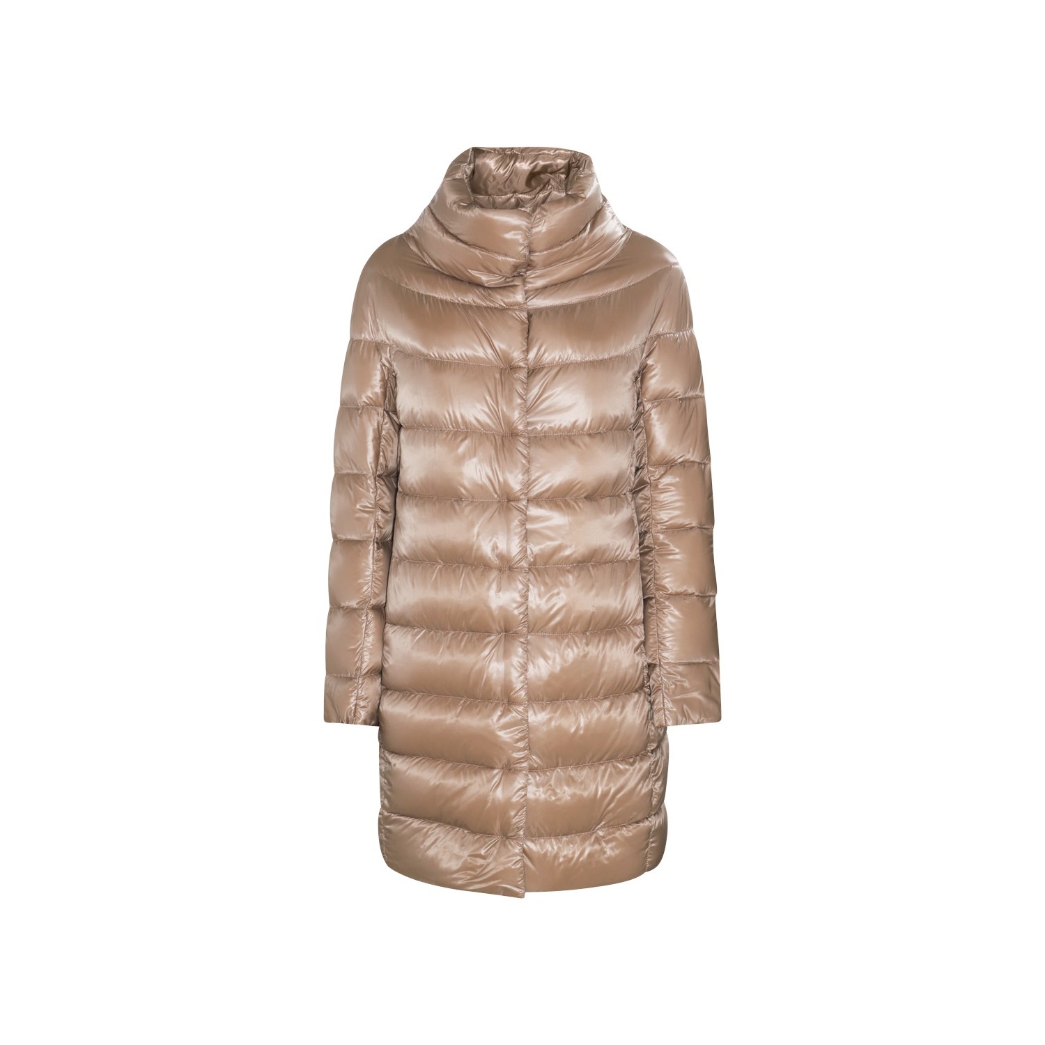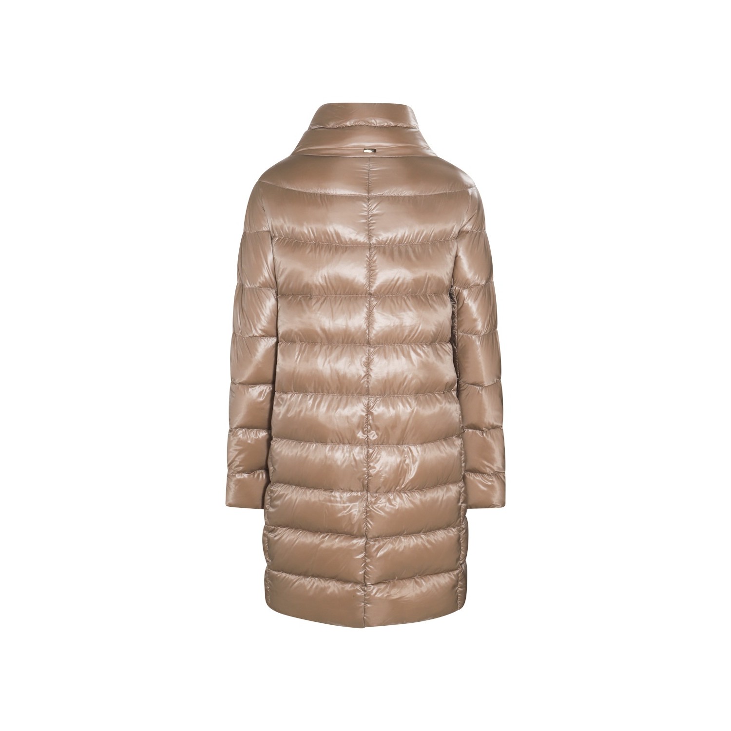 Brown down jacket from Herno featuring high collar, long sleeves, padded, frontal fastening and midi lenght.