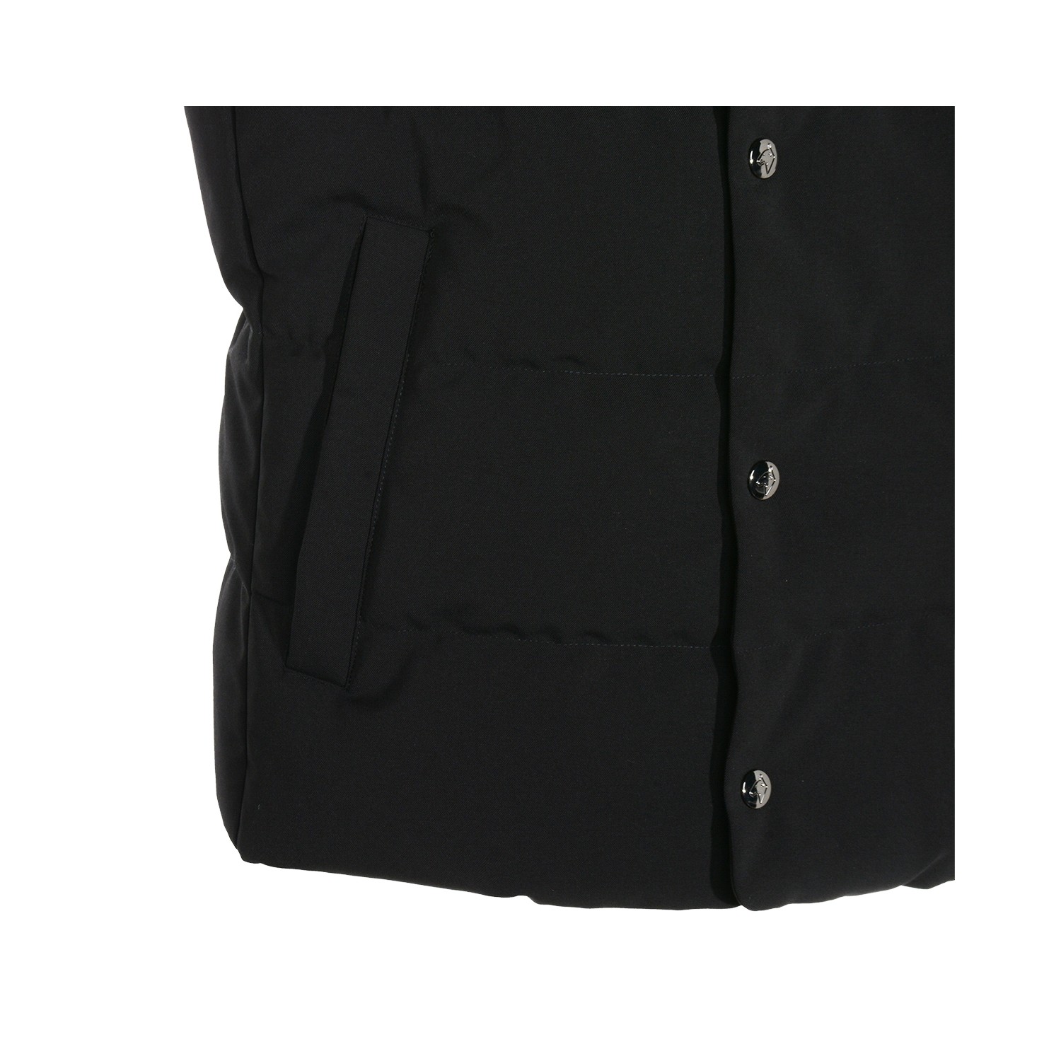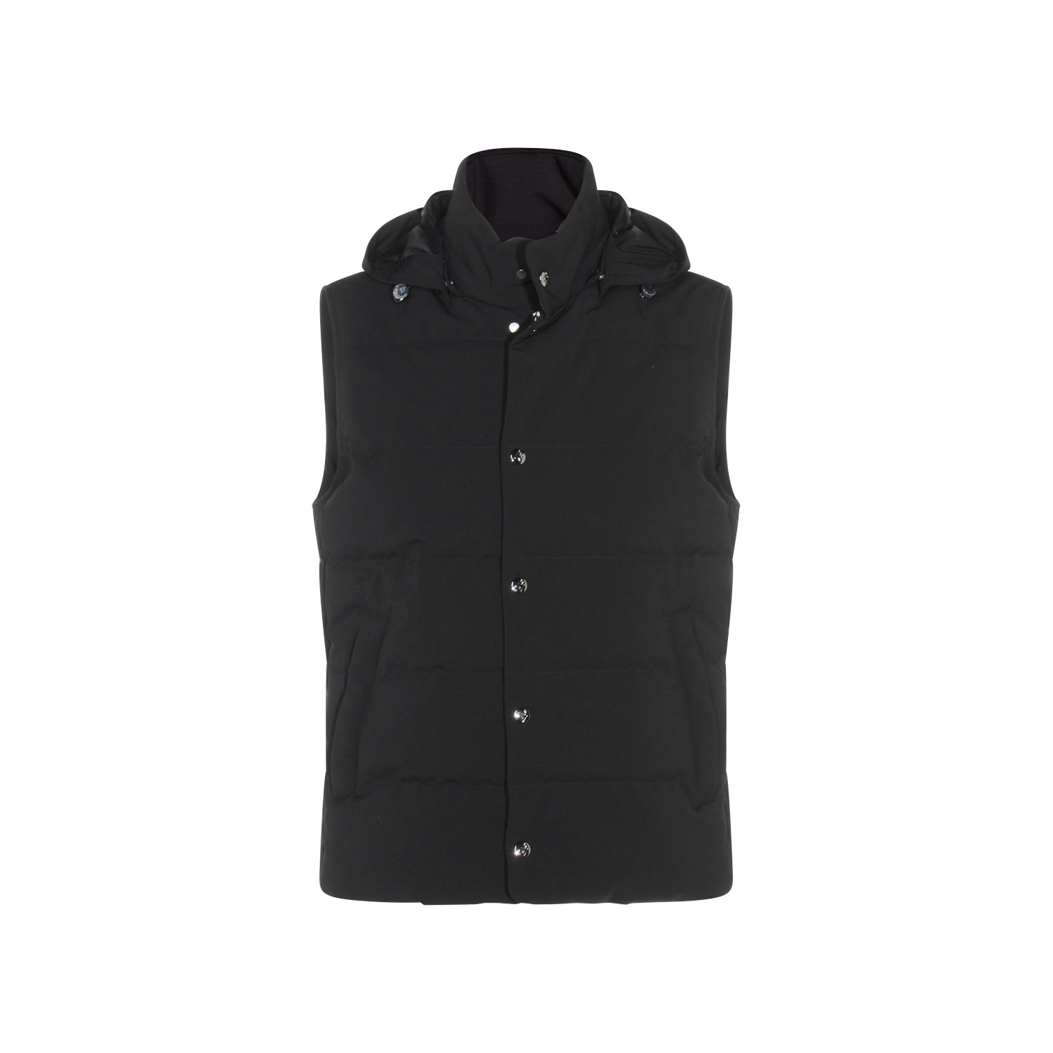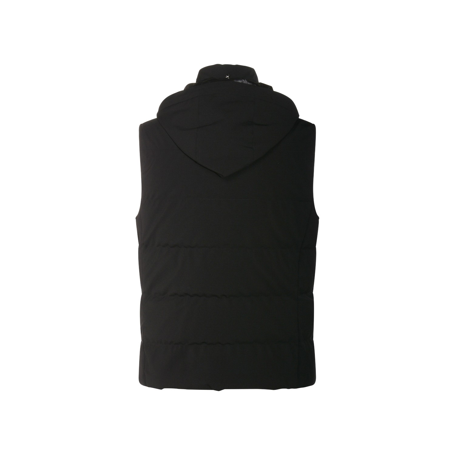 Black down jacket from Montecore featuring high collar, hood, sleeveless, frontal fastening, padded, pockets and regular vestibility.
