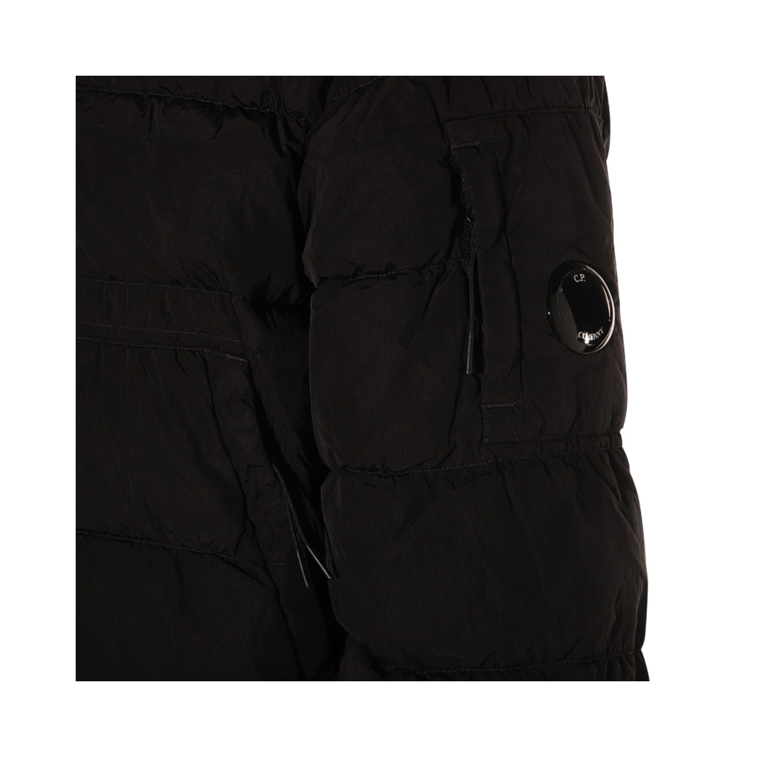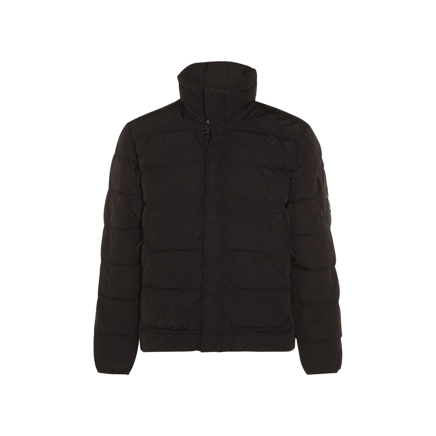 Black down jacket from CP Company featuring high collar, long sleeves, padded, frontal fastening and regular vestibility.