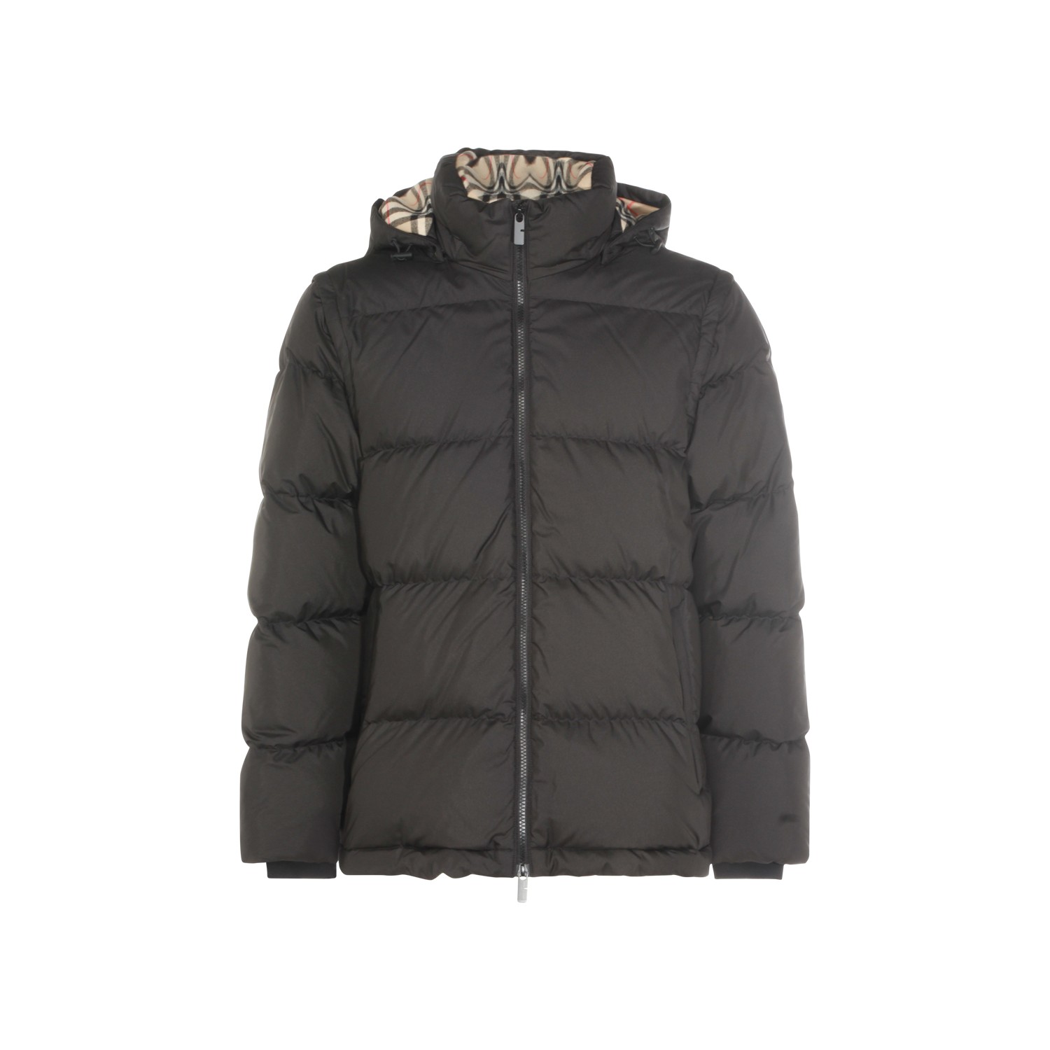 Black Bideford down jacket from Burberry featuring high collar, hood, long sleeves, padded, zip fastening and regular vestibility.