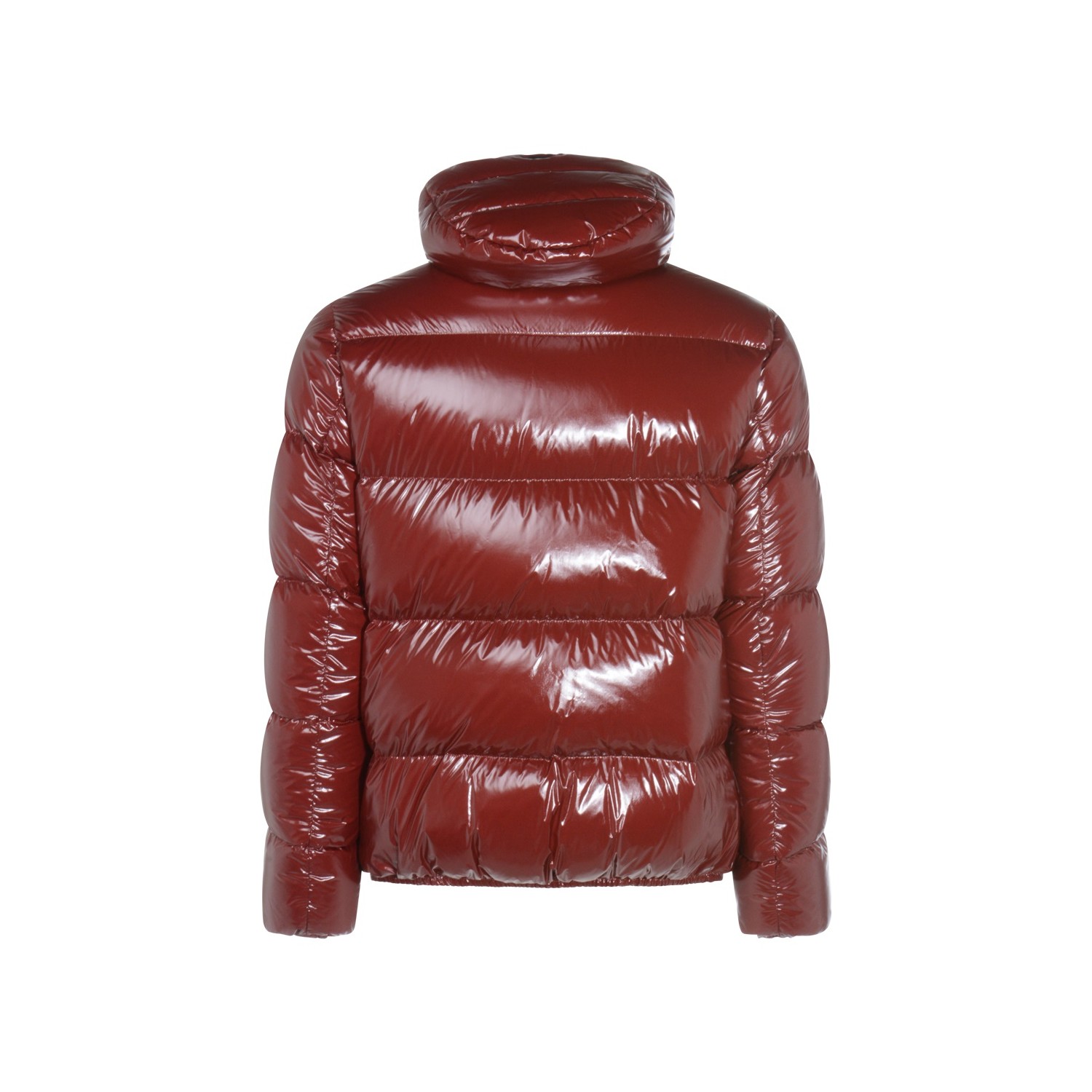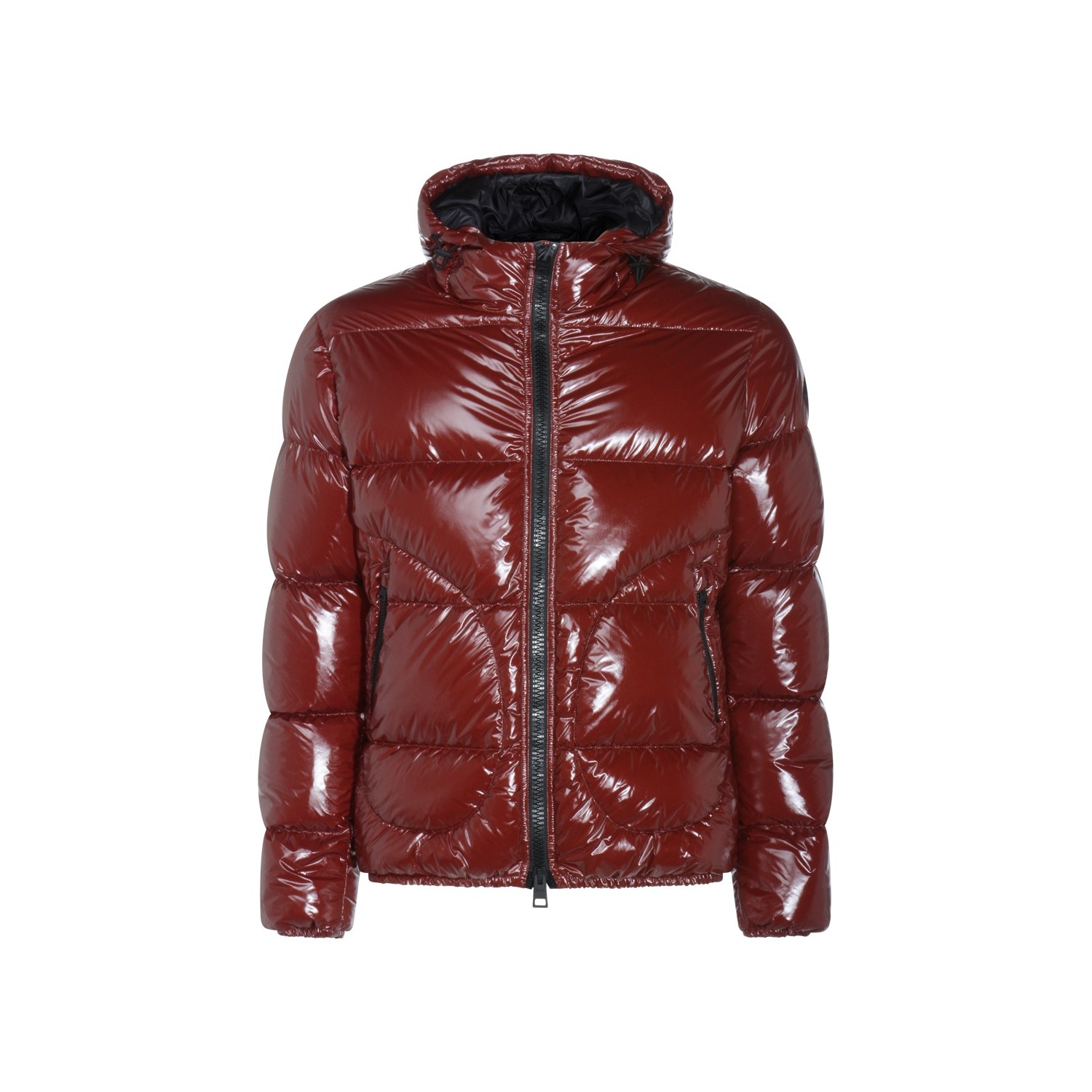 Dark red down jacket from Herno featuring zip fastening, pockets, high collar with hood and lucid finishes.