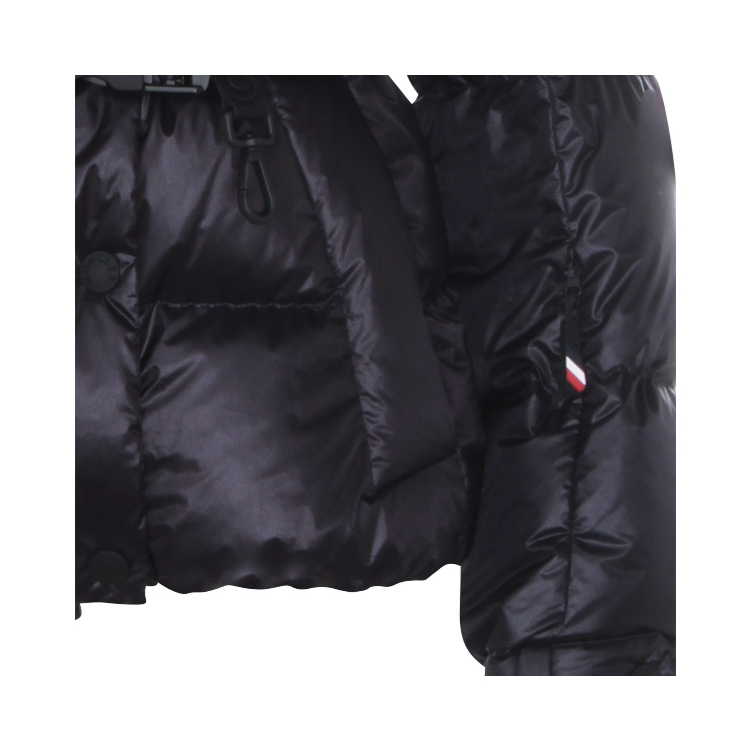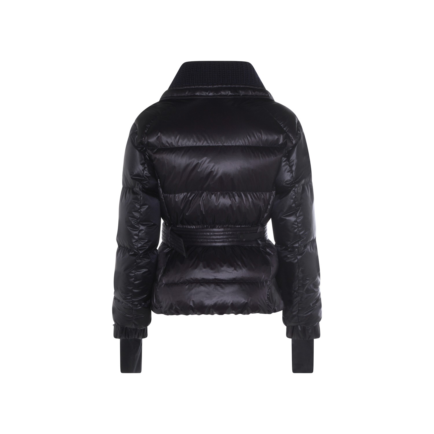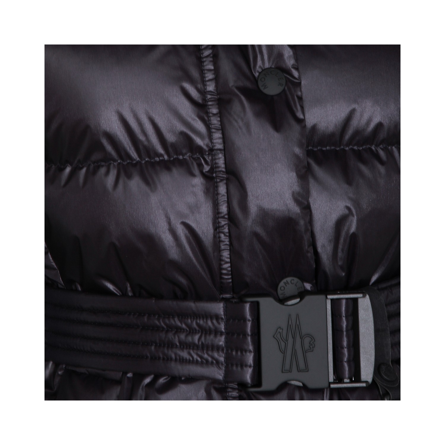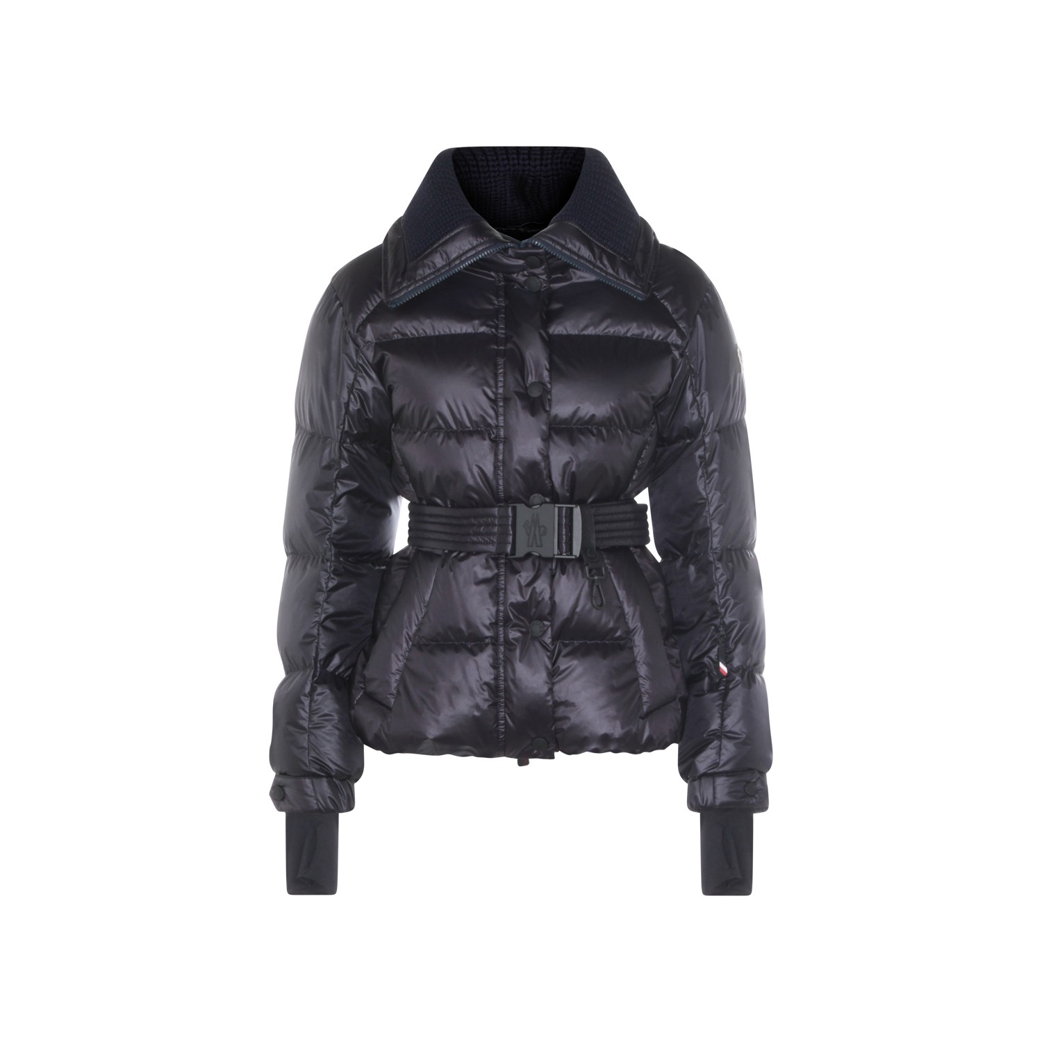 Navy down jacket from Moncler Grenoble featuring high collar, long sleeves, padded, front closure, belt waist, elasticated cuffs and pockets.