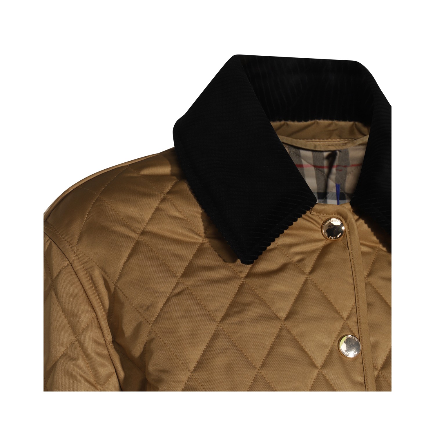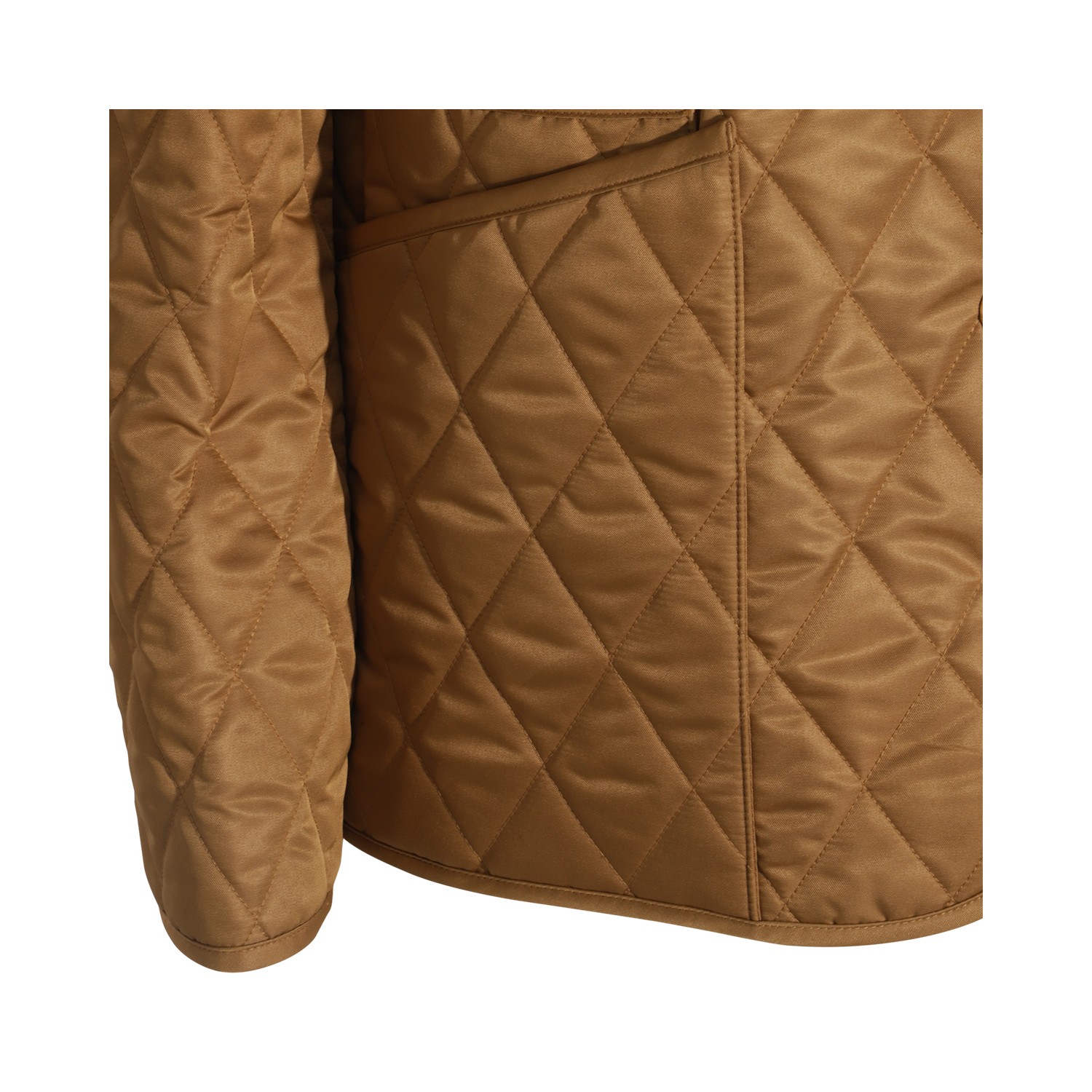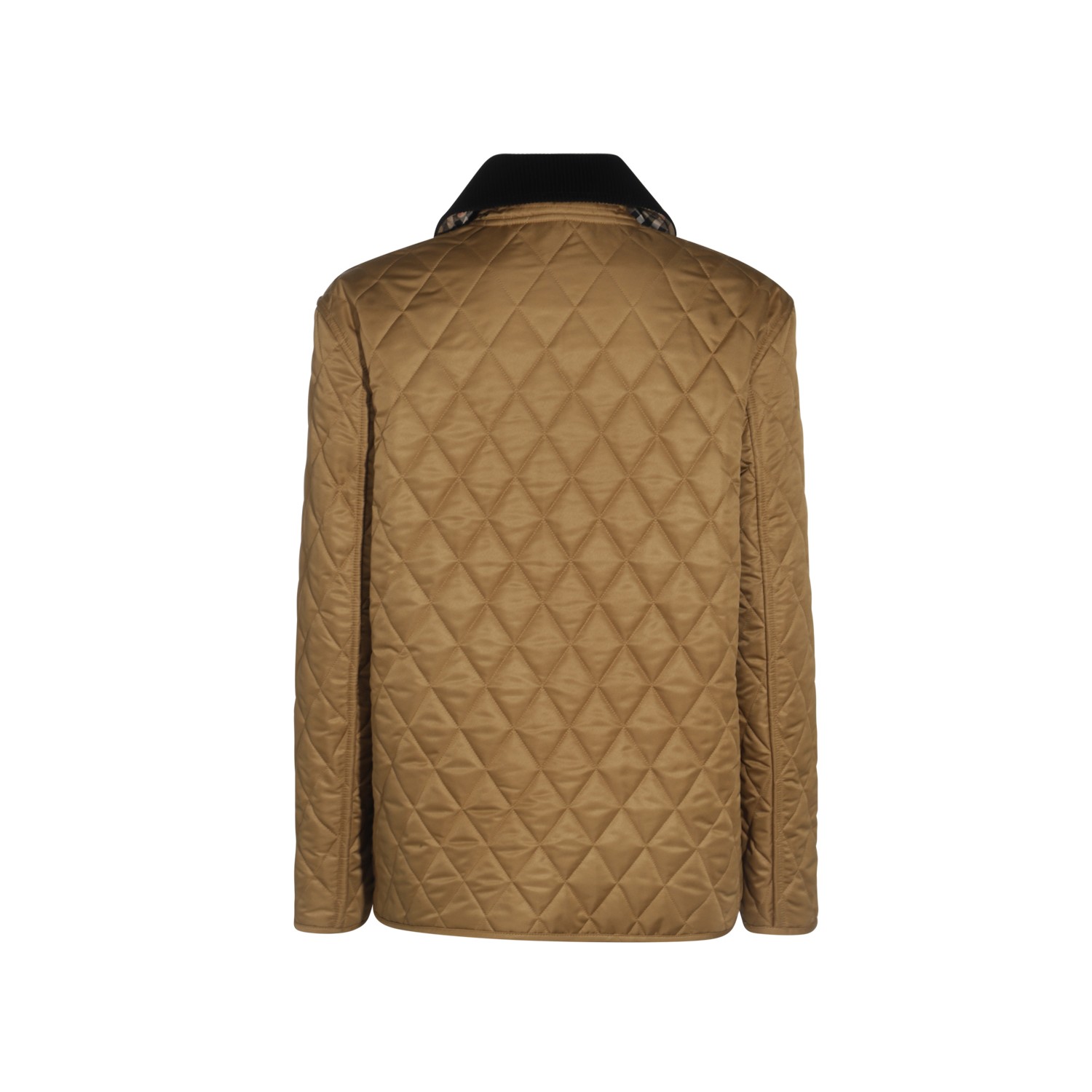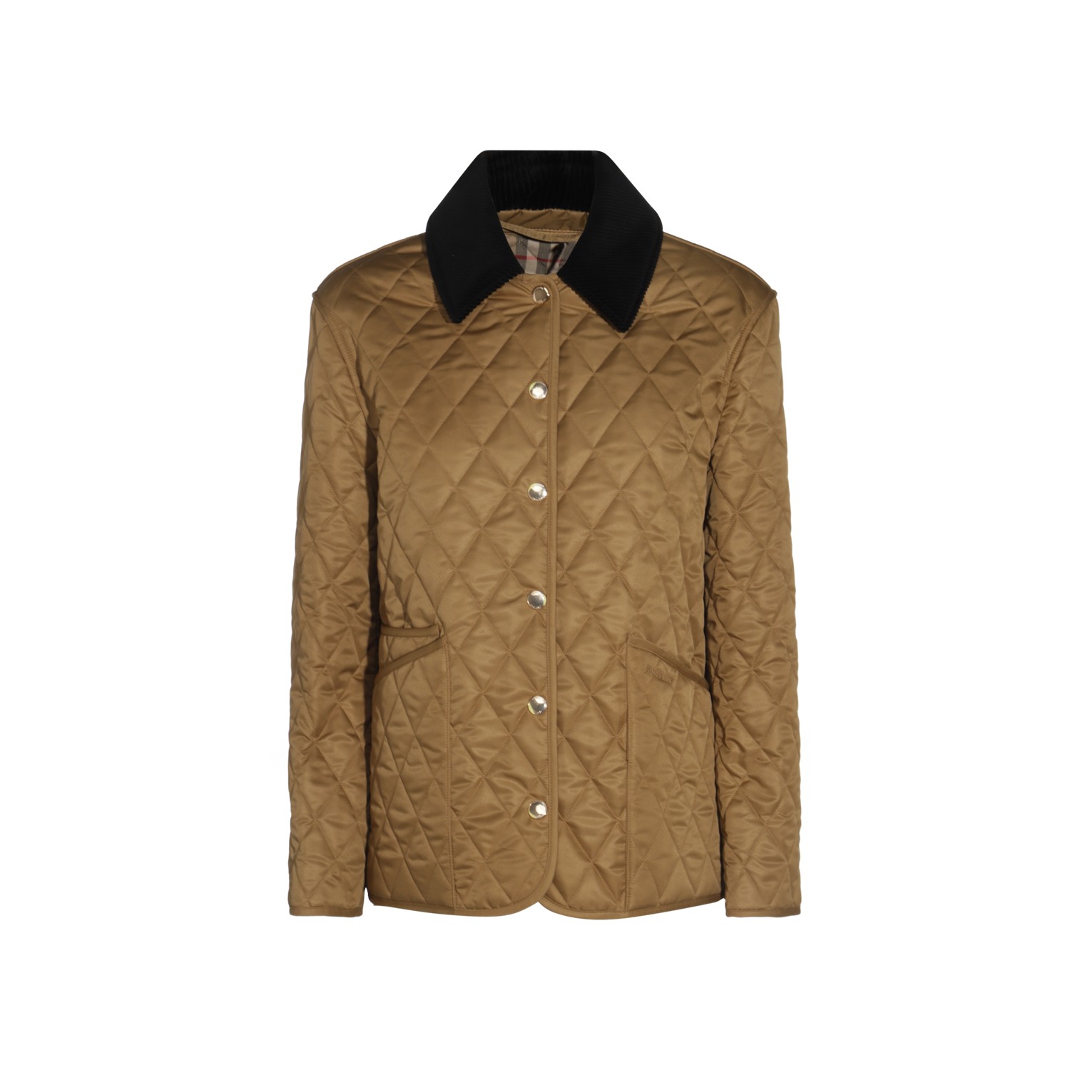 Brown Dranefeld down jacket from Burberry featuring ribbed collar, long sleeves, quilty effect, frontal buttoned fastening, pockets, patched logo and regular vestibility.