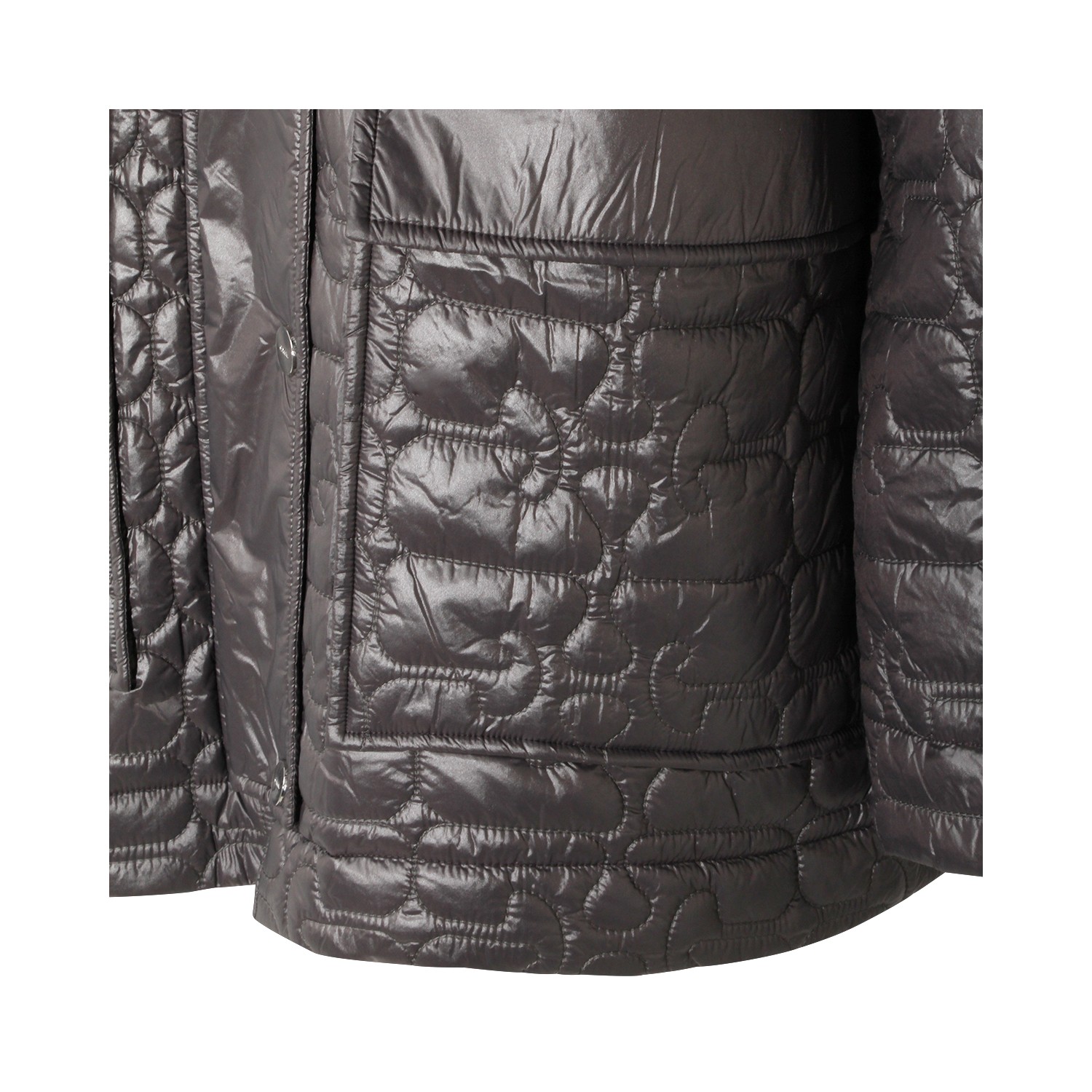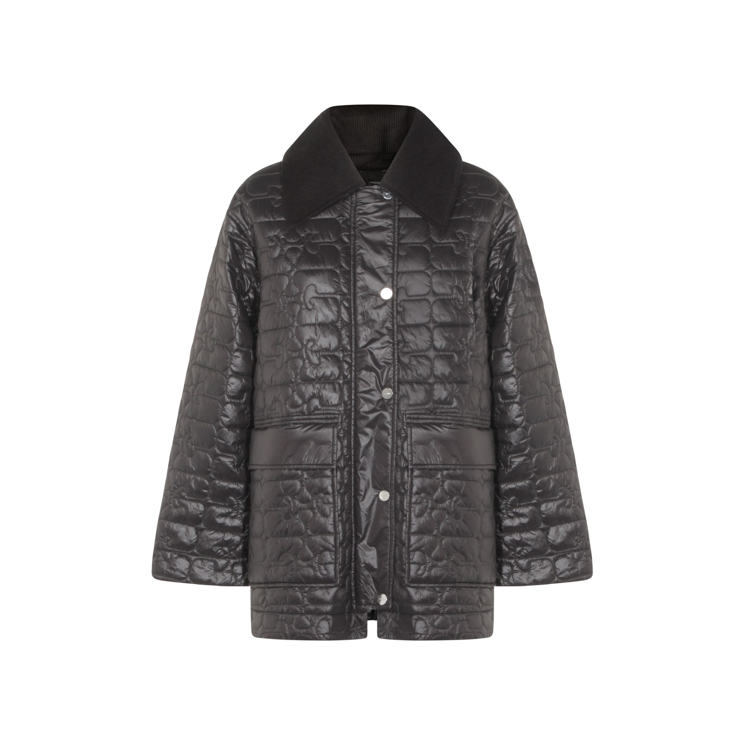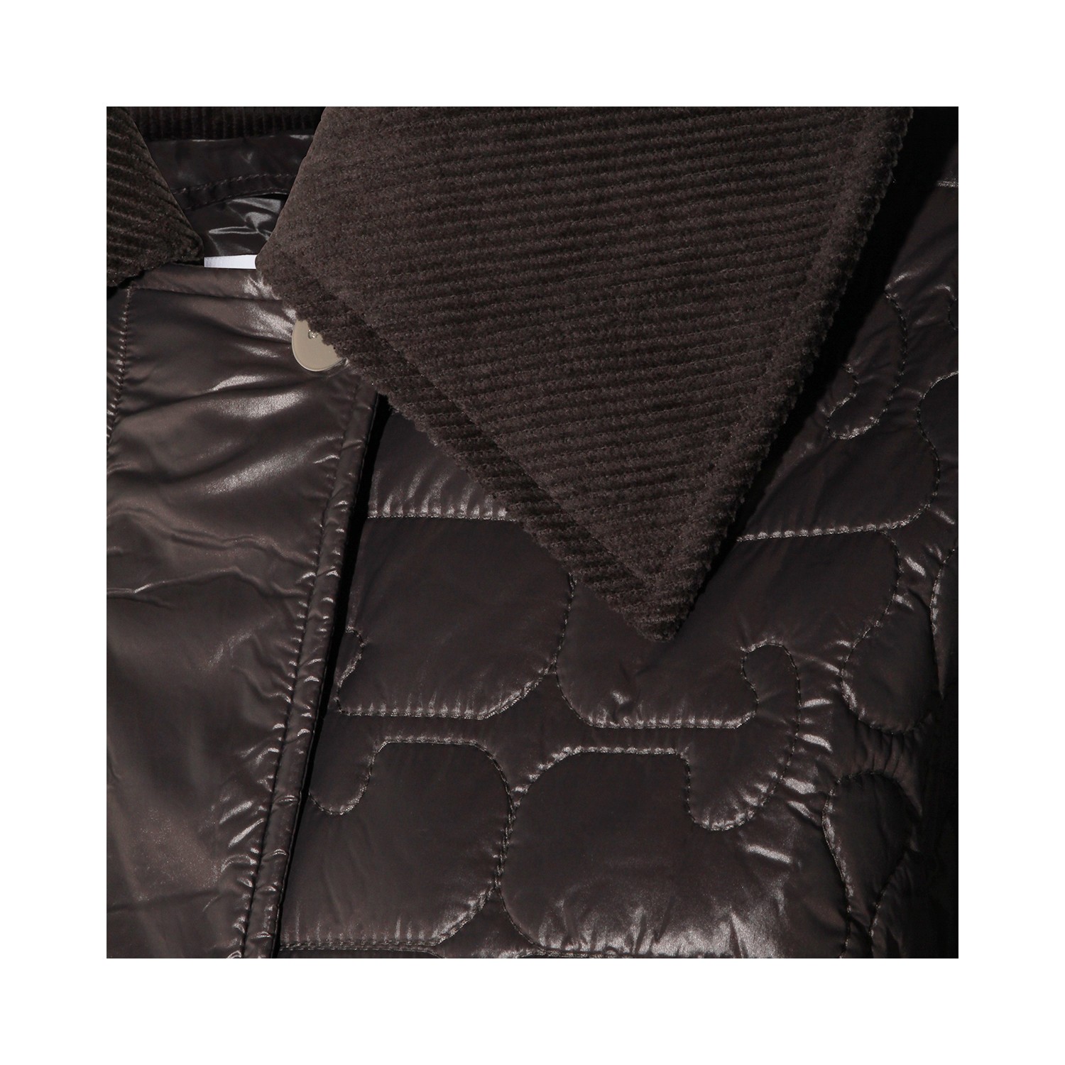 Brown down jacket from Ganni featuring high collar, buttons fastening, long sleeves, pockets, padded and soft vestibility.