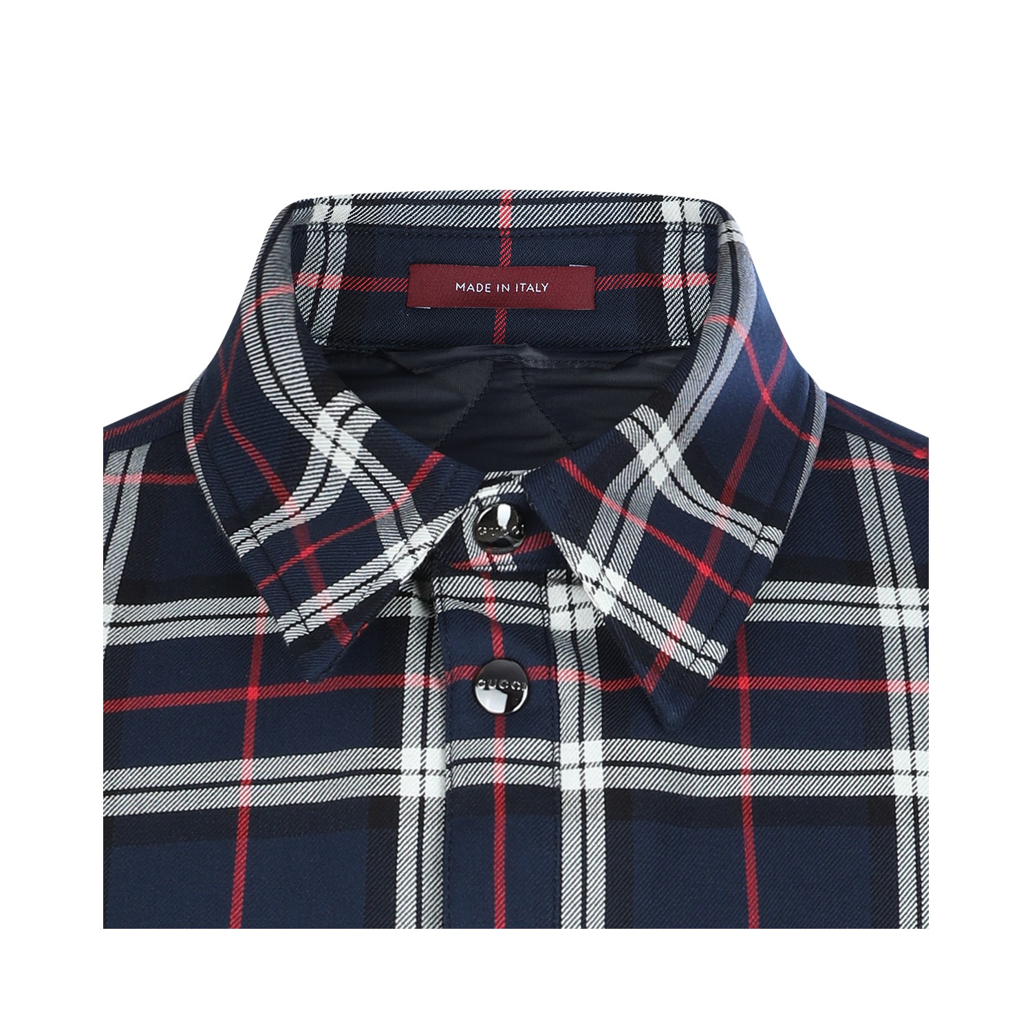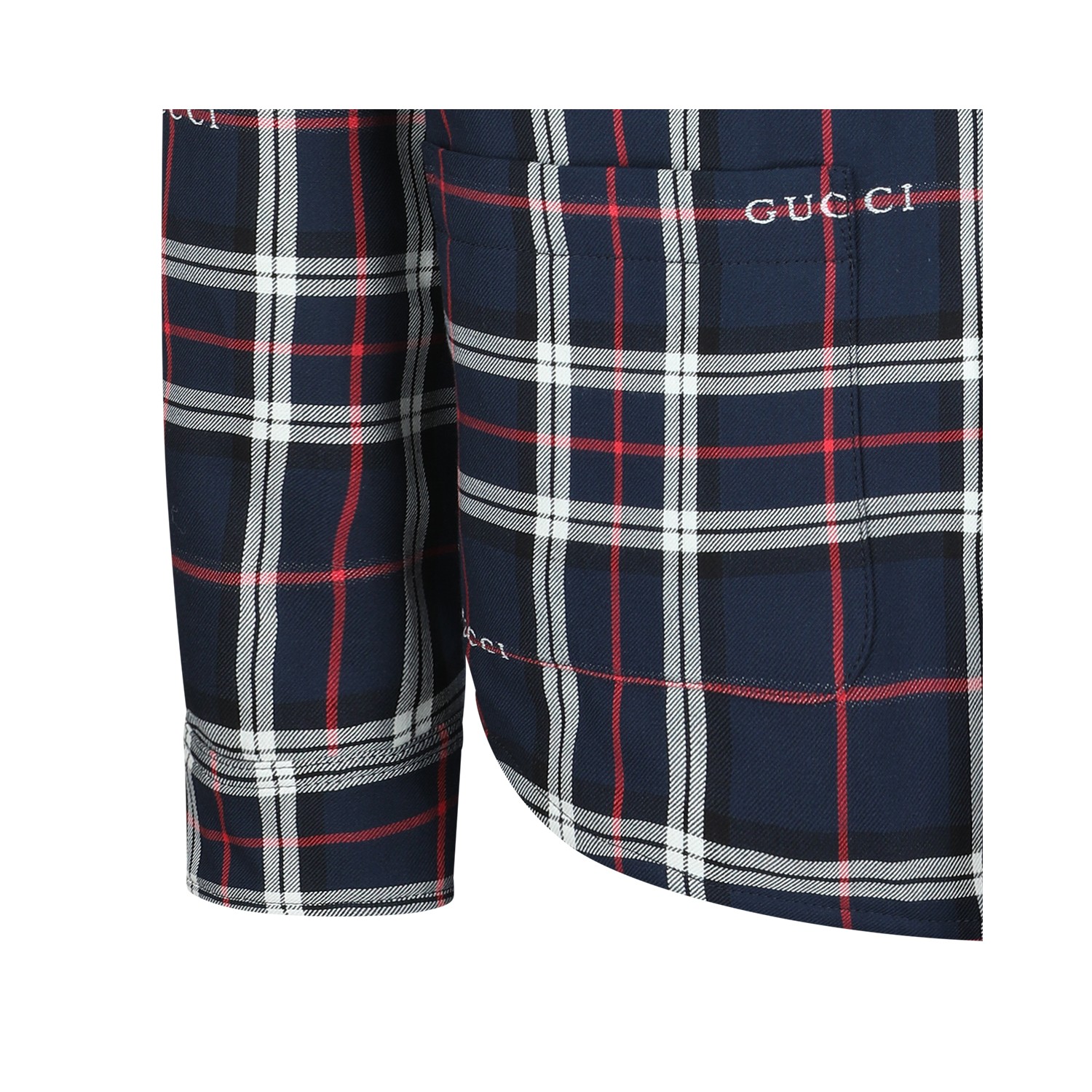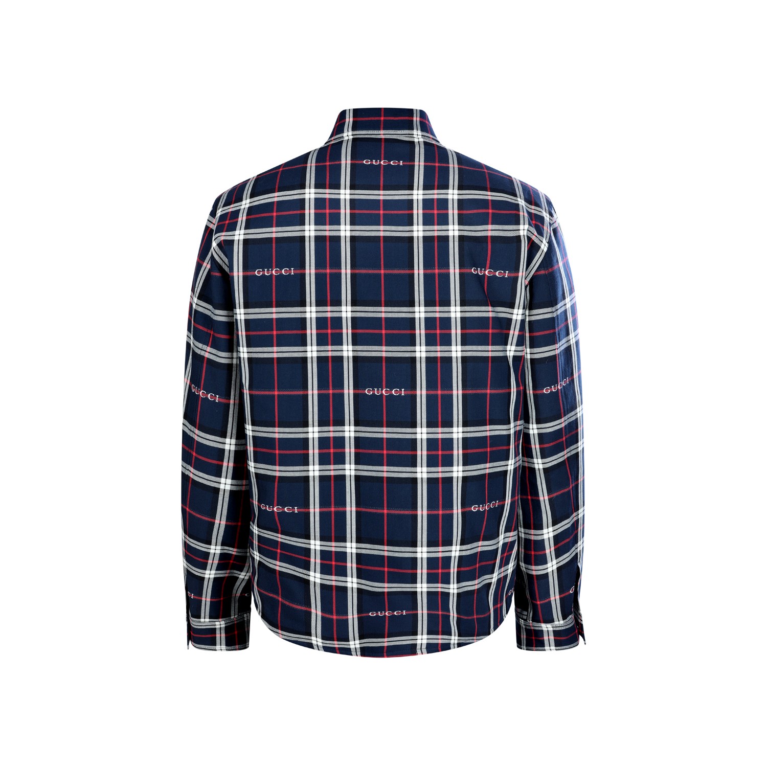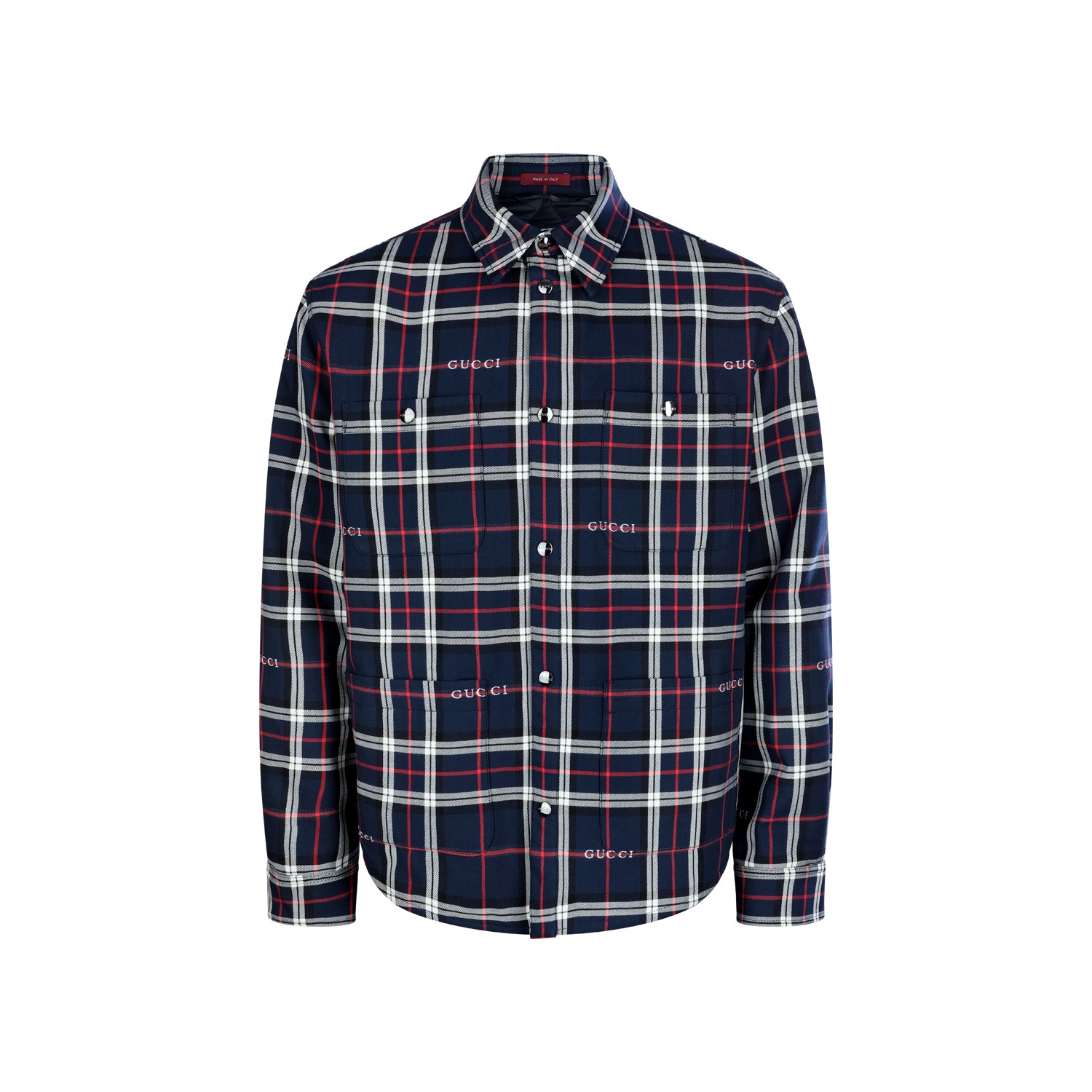 Multicolor check down jacket from Gucci featuring all over check texture, long sleeves, embroidered logo details and magnetic closure.