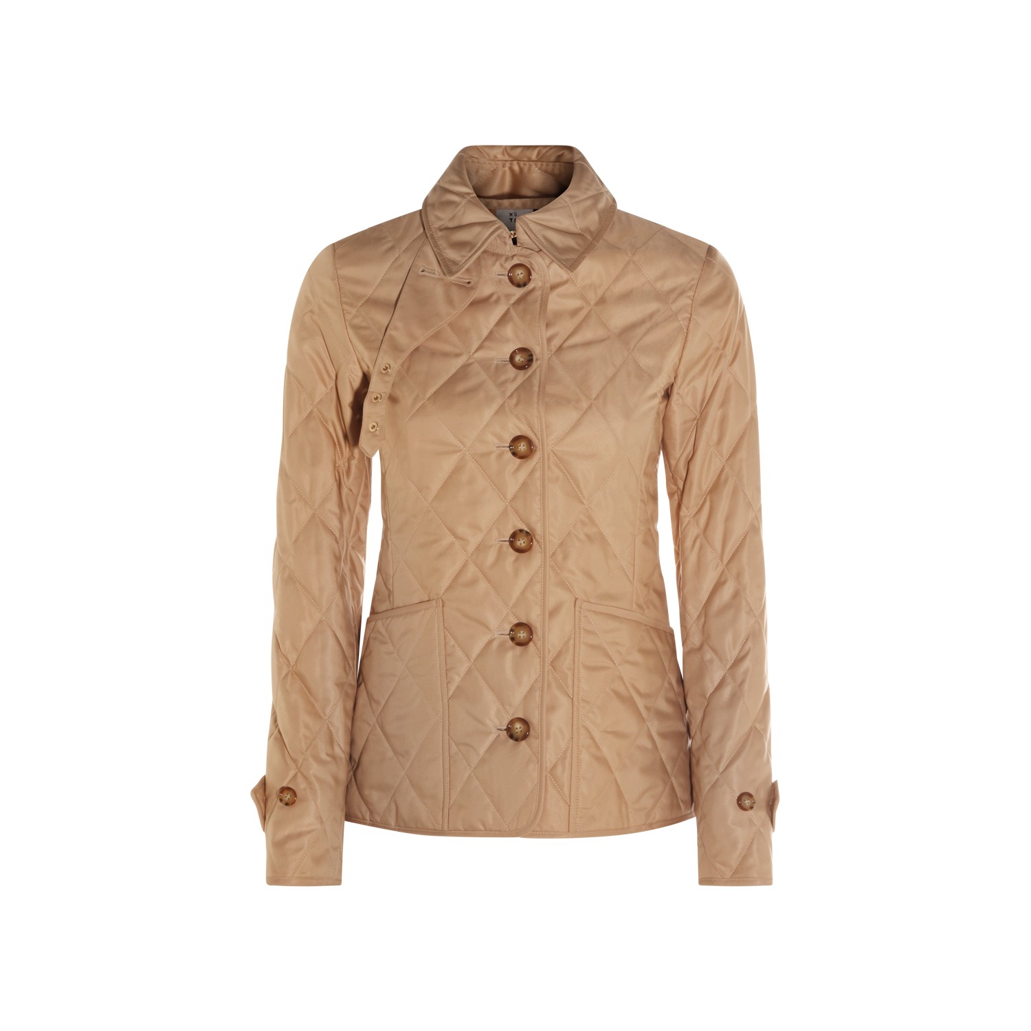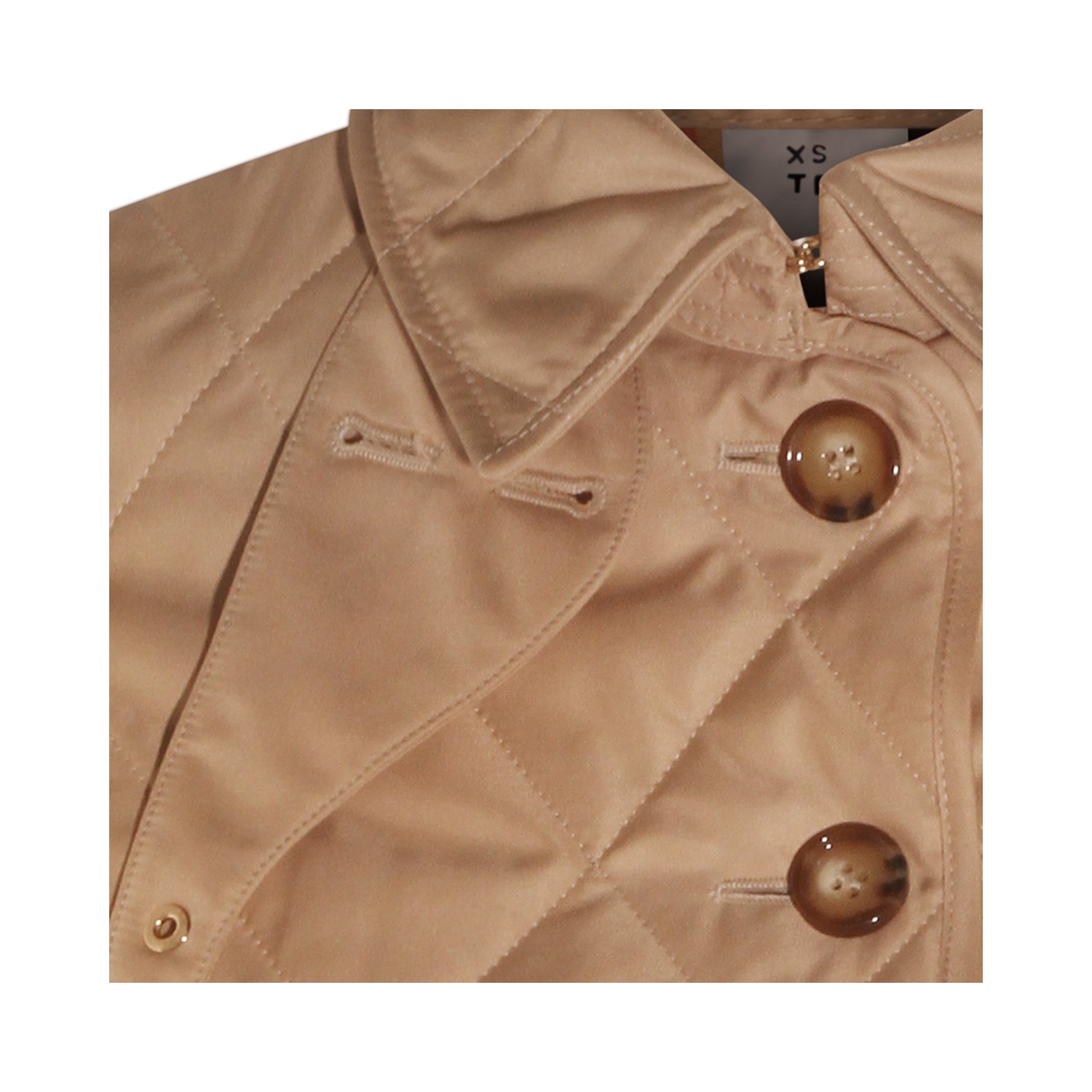 Beige down jacket from Burberry featuring shirt neck, buttons fastening, long sleeves, padded, pockets and regular vestibility.