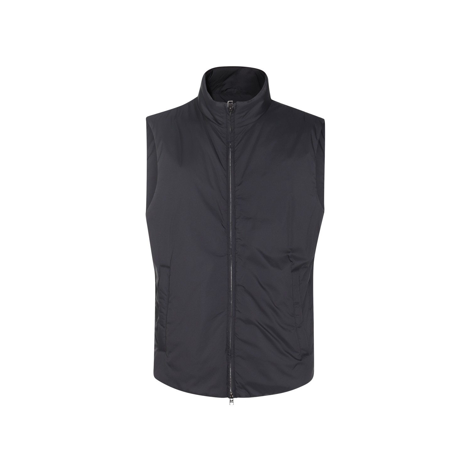Navy blue down jacket from Herno featuring sleeveless, high neck, zip fastening, pockets and regular vestibility.