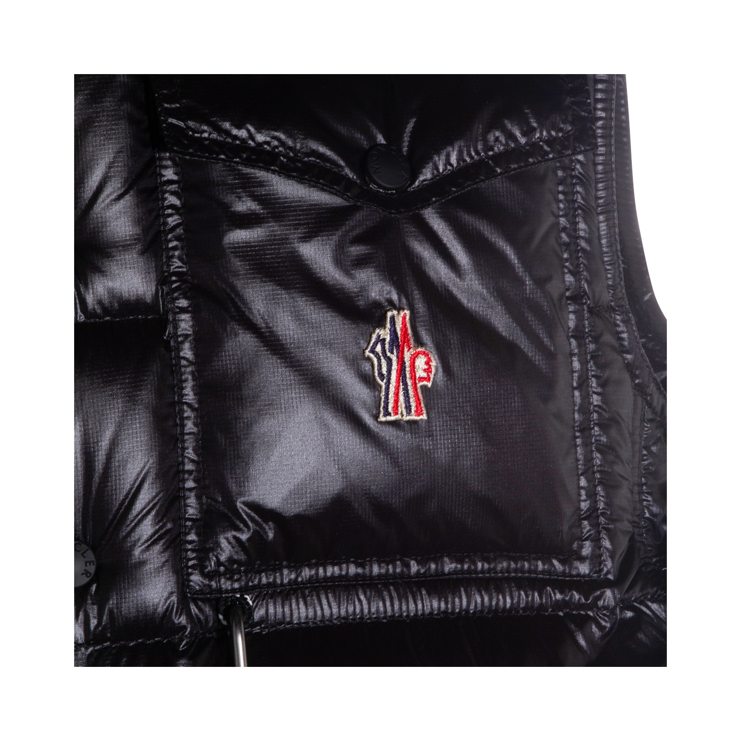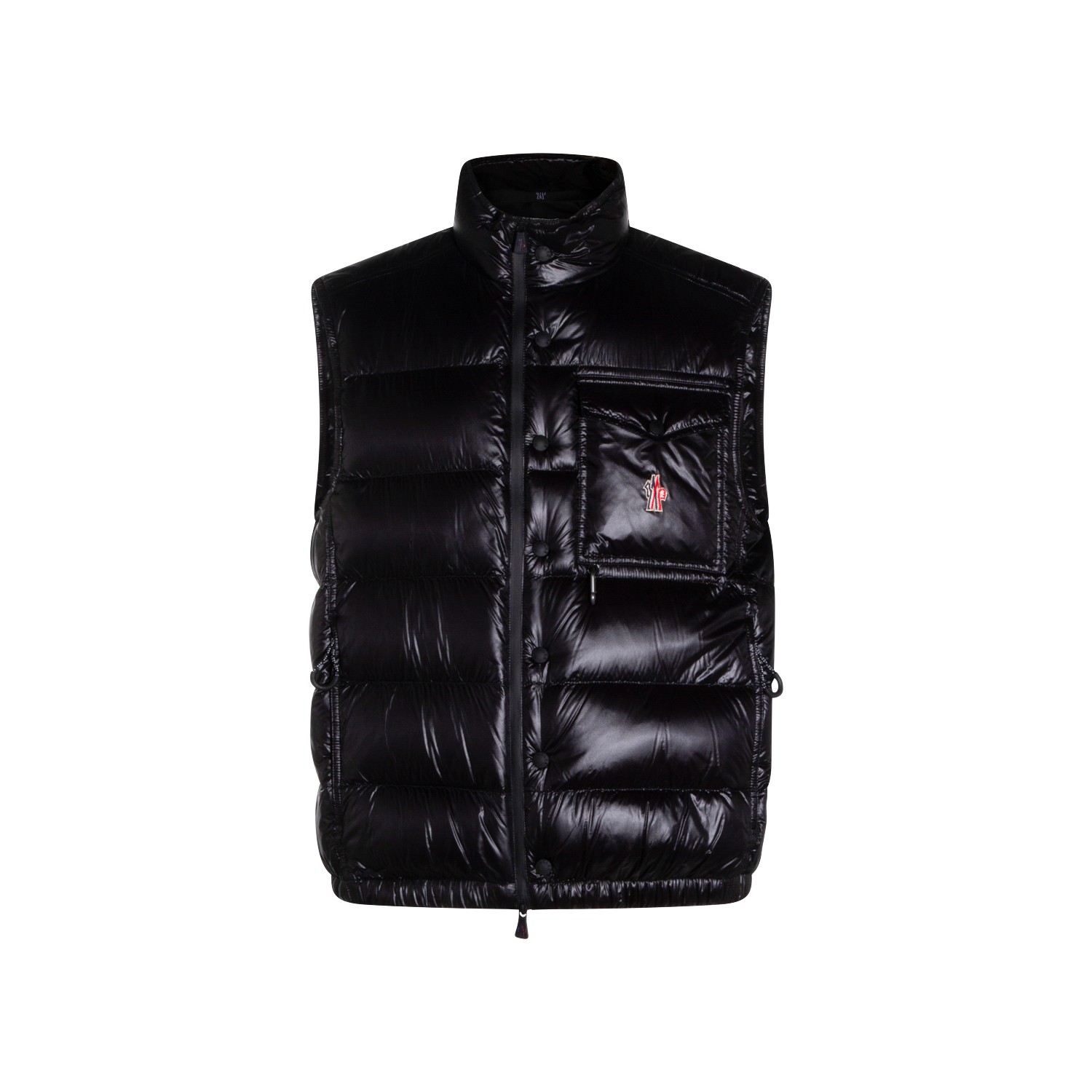 Black Uychi down jacket from Moncler Grenoble featuring high collar, sleeveless, padded, chest pocket, quilted, zip fastening, pockets and regular fit.