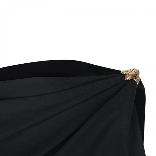 Black midi dress from Bottega Veneta featuring mono sleeve, round collar, drapes and midi length.