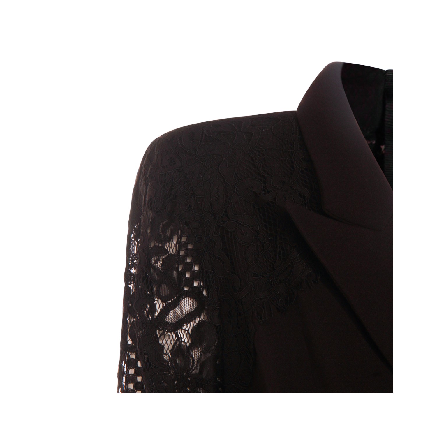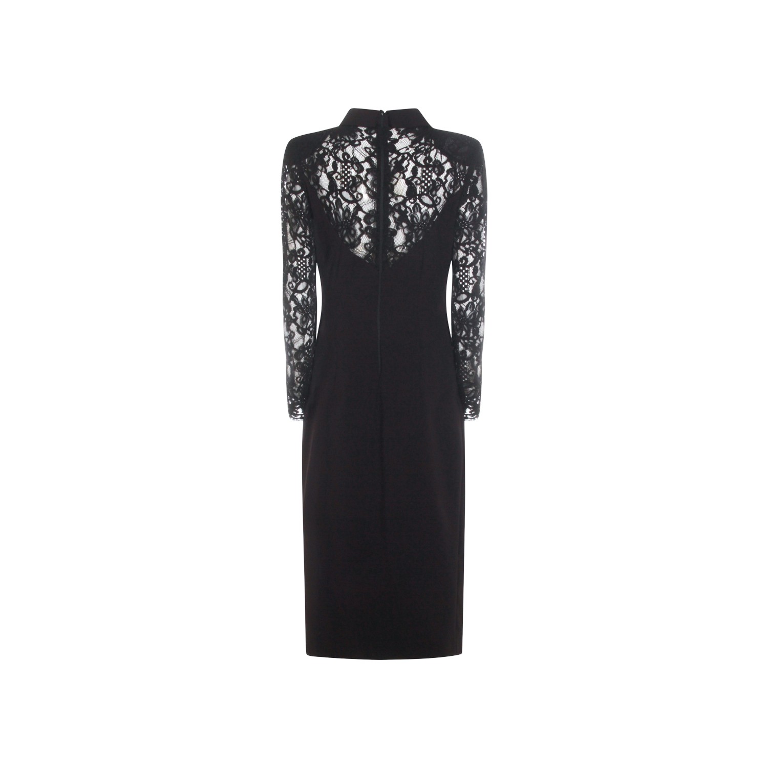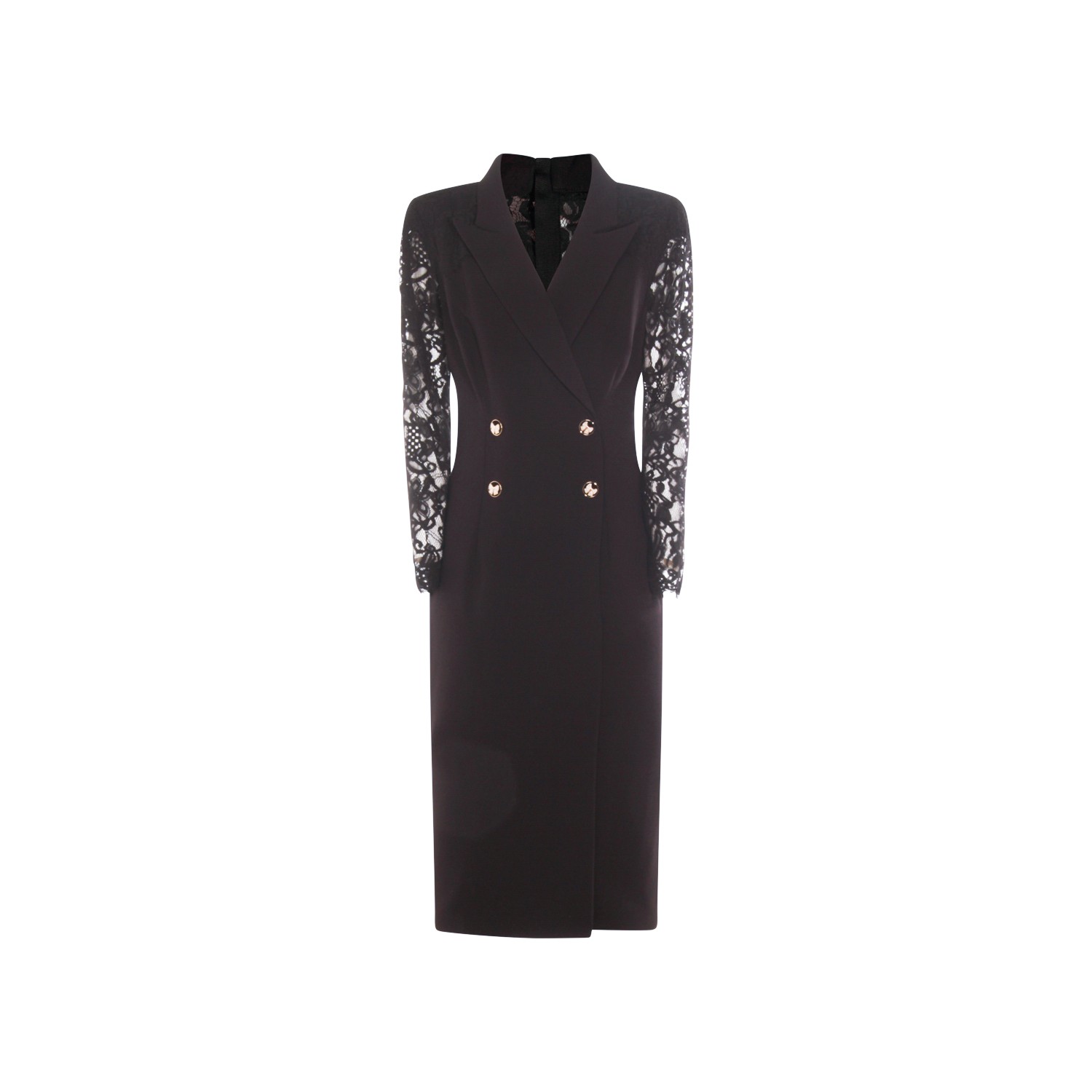 Black mini dress from Nissa featuring long sleeves, frontal double breasted fasteniing, laces and midi length.