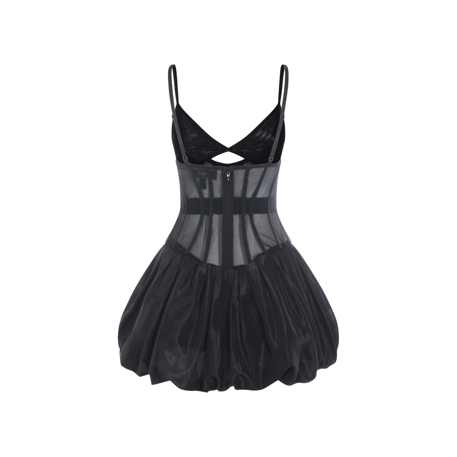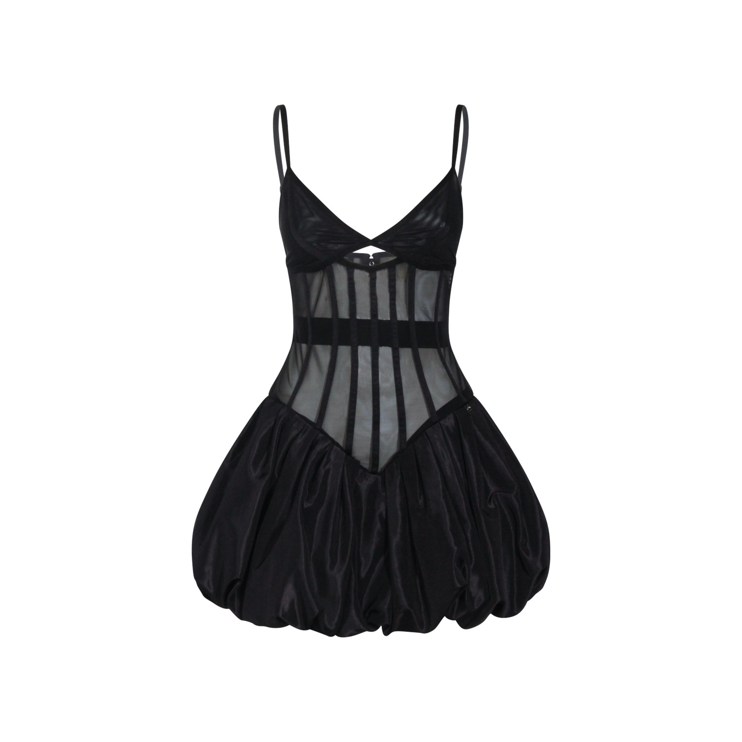 Black mini dress from Nissa featuring sleeveless, heart neckline, mini length, zip fastening and trasparence.