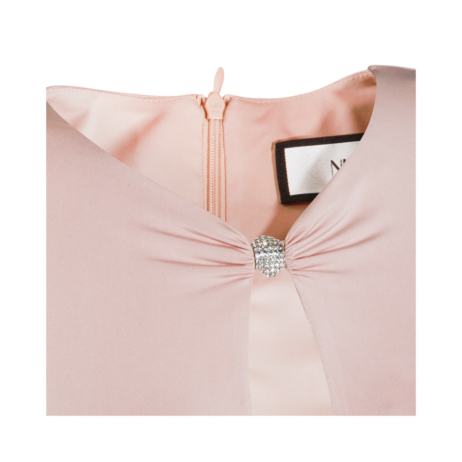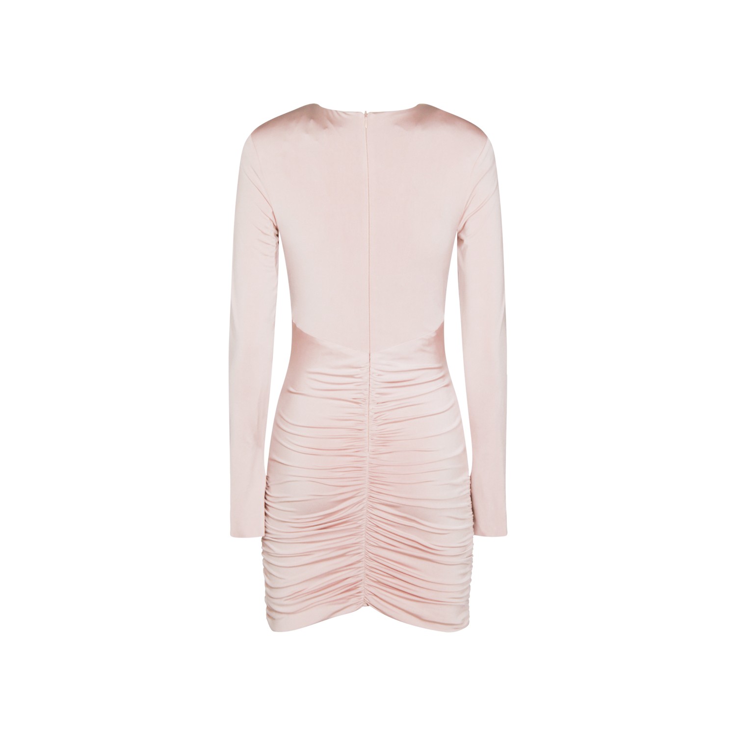 Pink mini dress from Nissa featuring long sleeves, mini length, back zip fastening and frontal cuts.