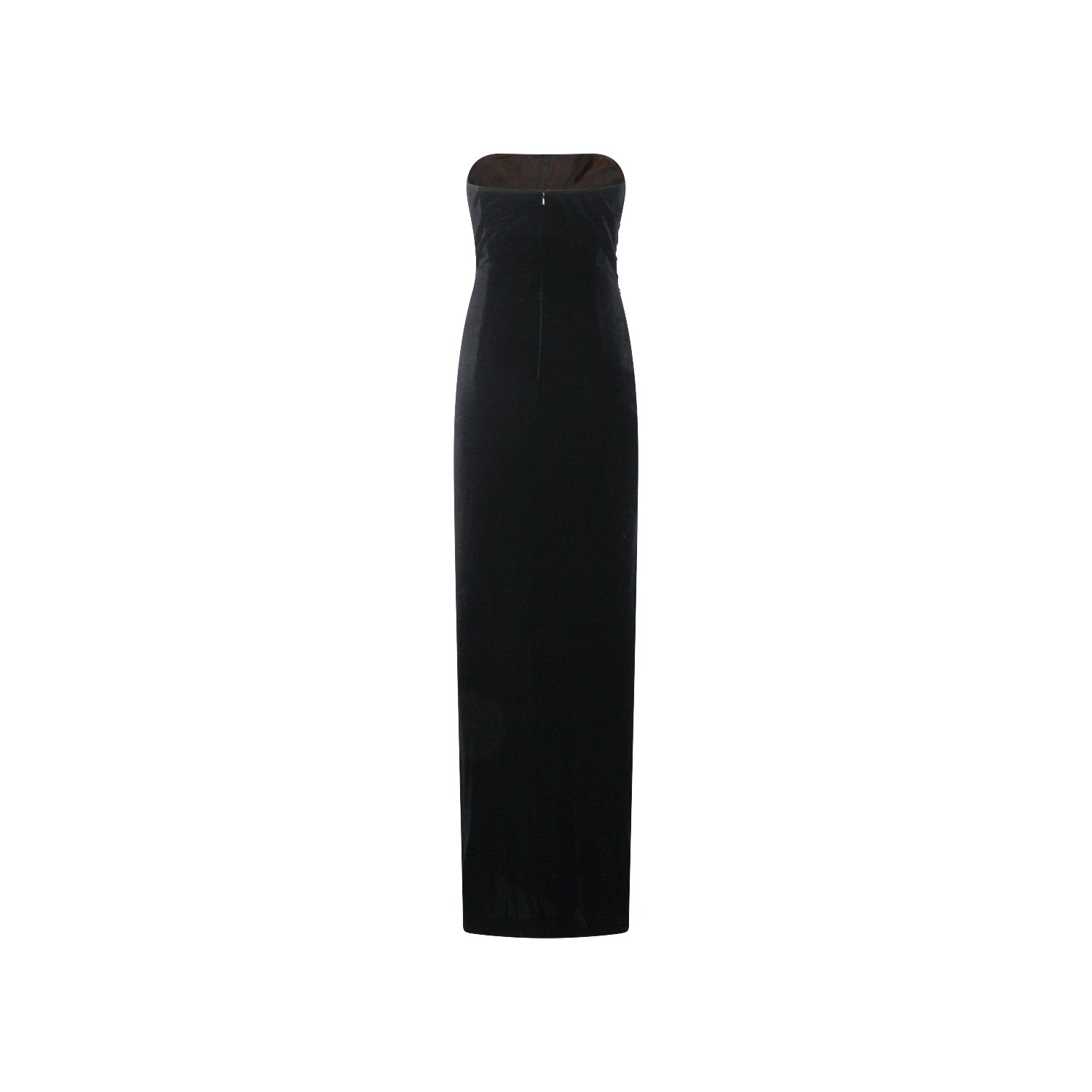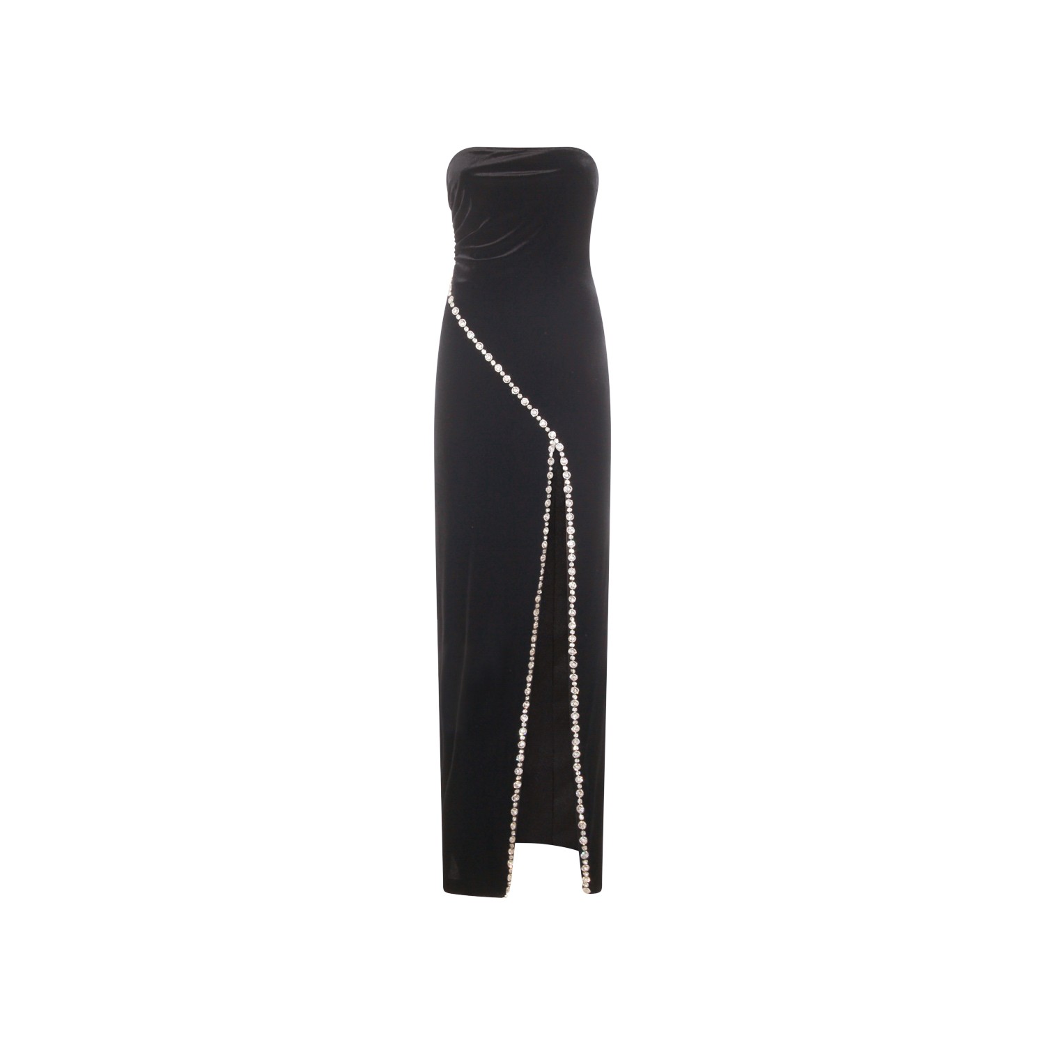 Black maxi dress from Nissa featuring sleeveless, frontal split, zip fastening and silver tone embellishment.