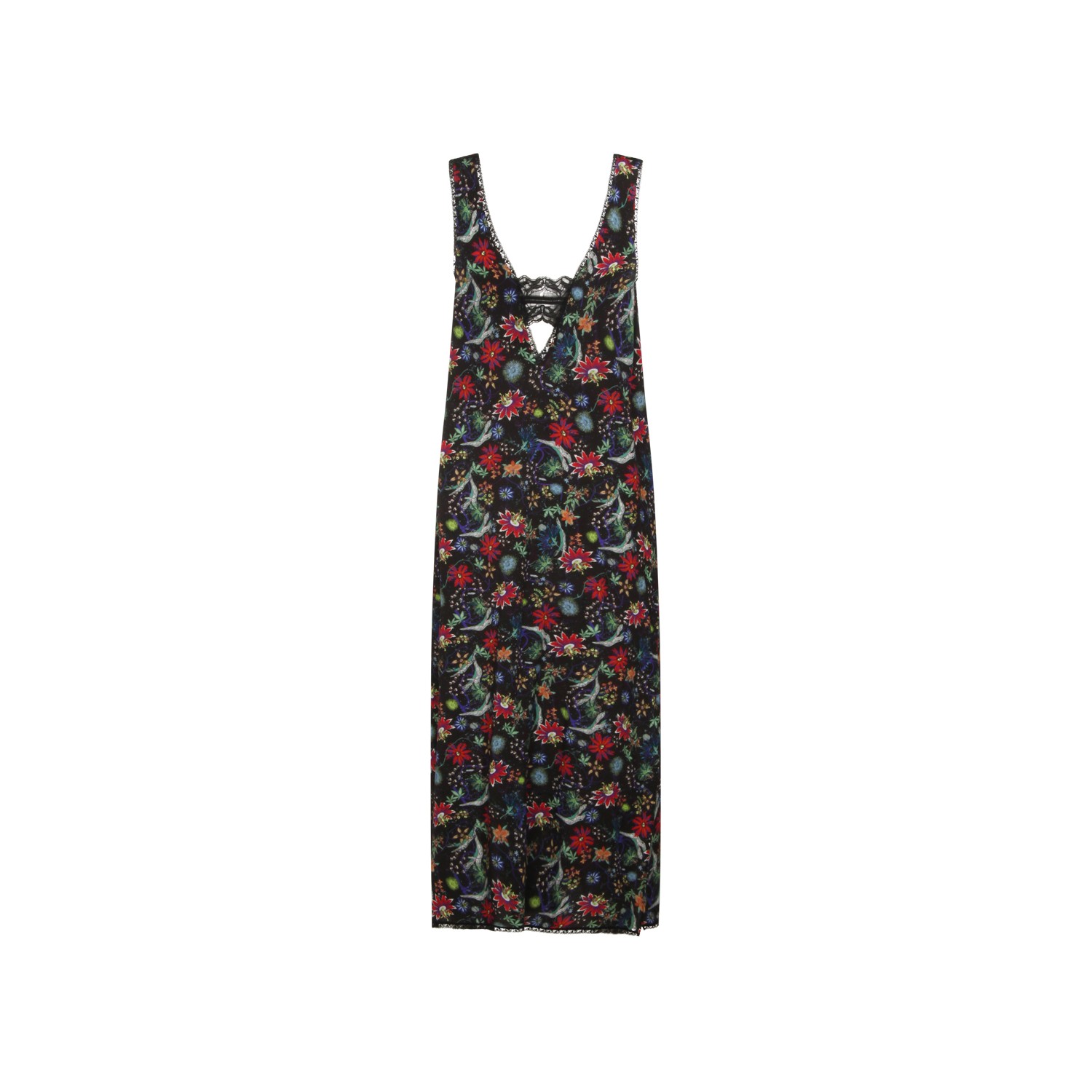 Black viscose dress from Zadig & Voltaire featuring sleeveless, V-neck, lace details and all over length.