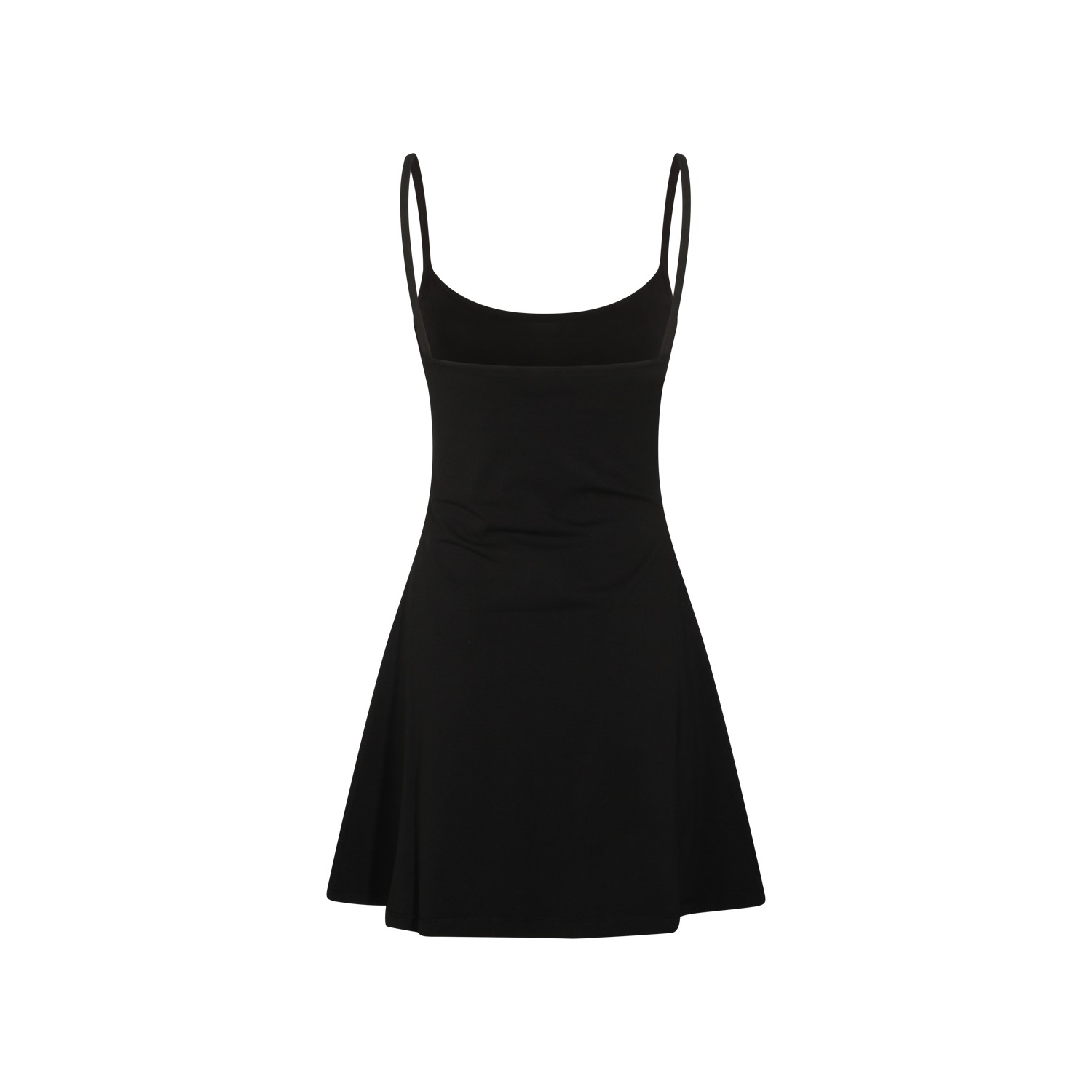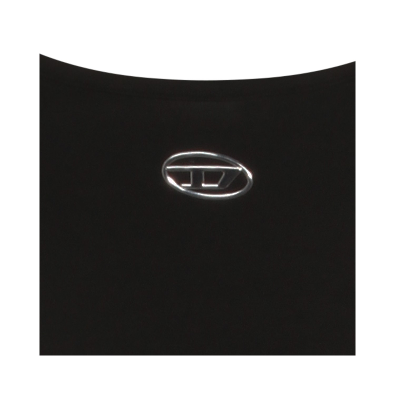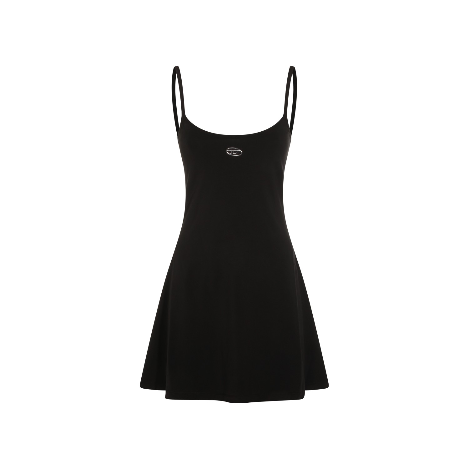 Black cotton dress from Diesel featuring straps, round neck, frontal logo detail and midi length.