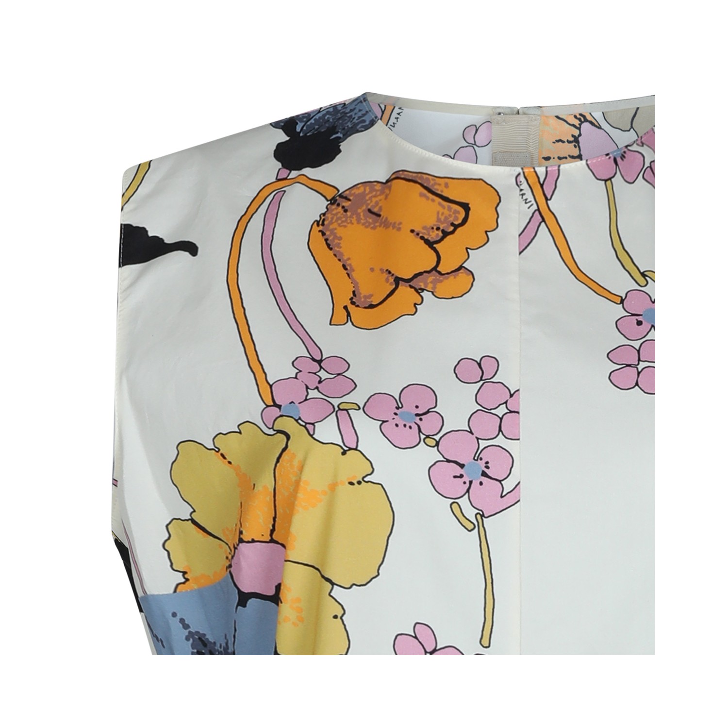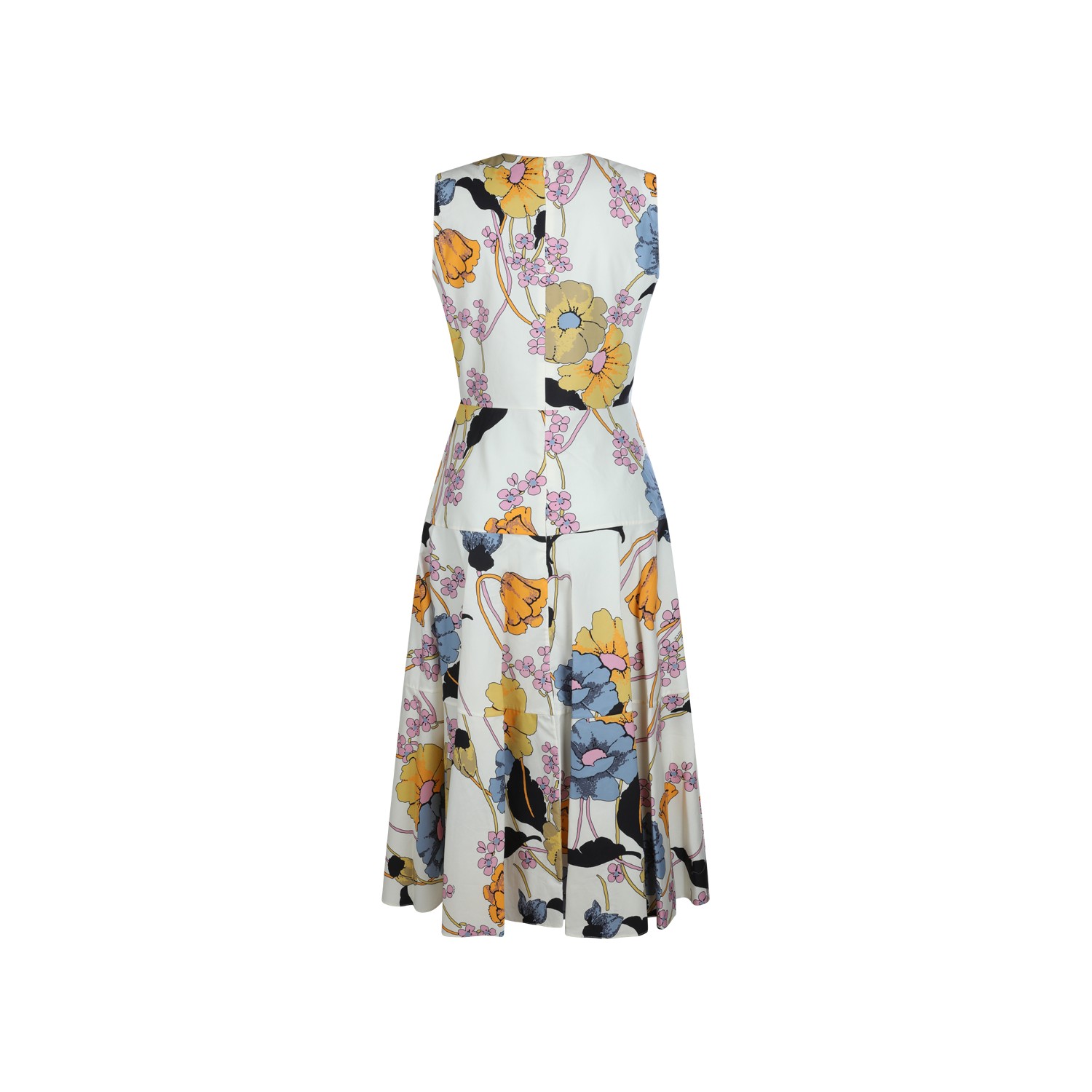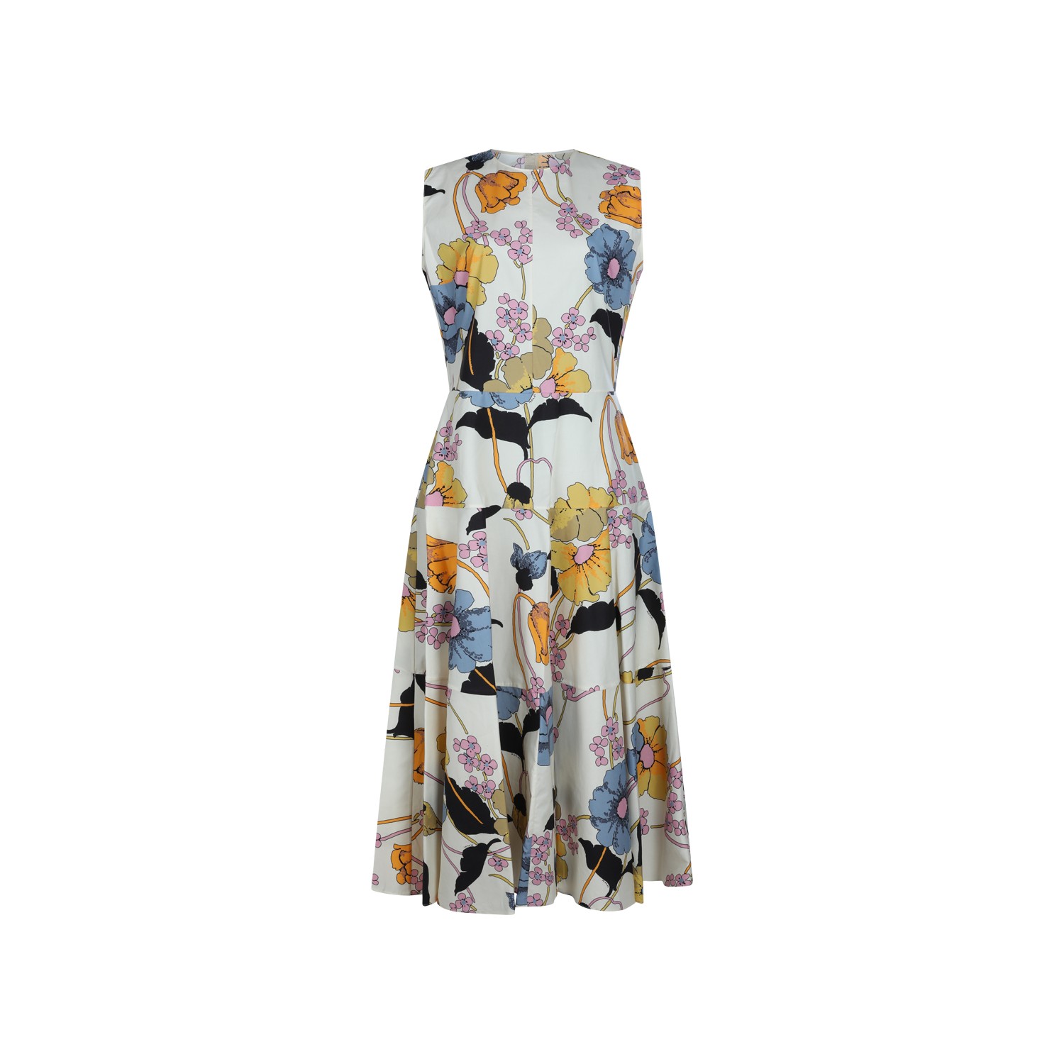 Colorful cotton dress from Marni featuring crew neck, sleeveless, all over length, loose vestibility and all over stamp.