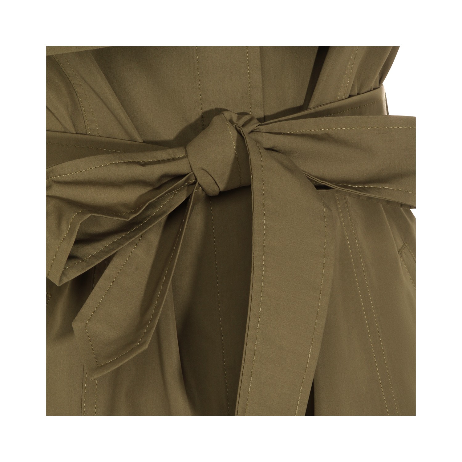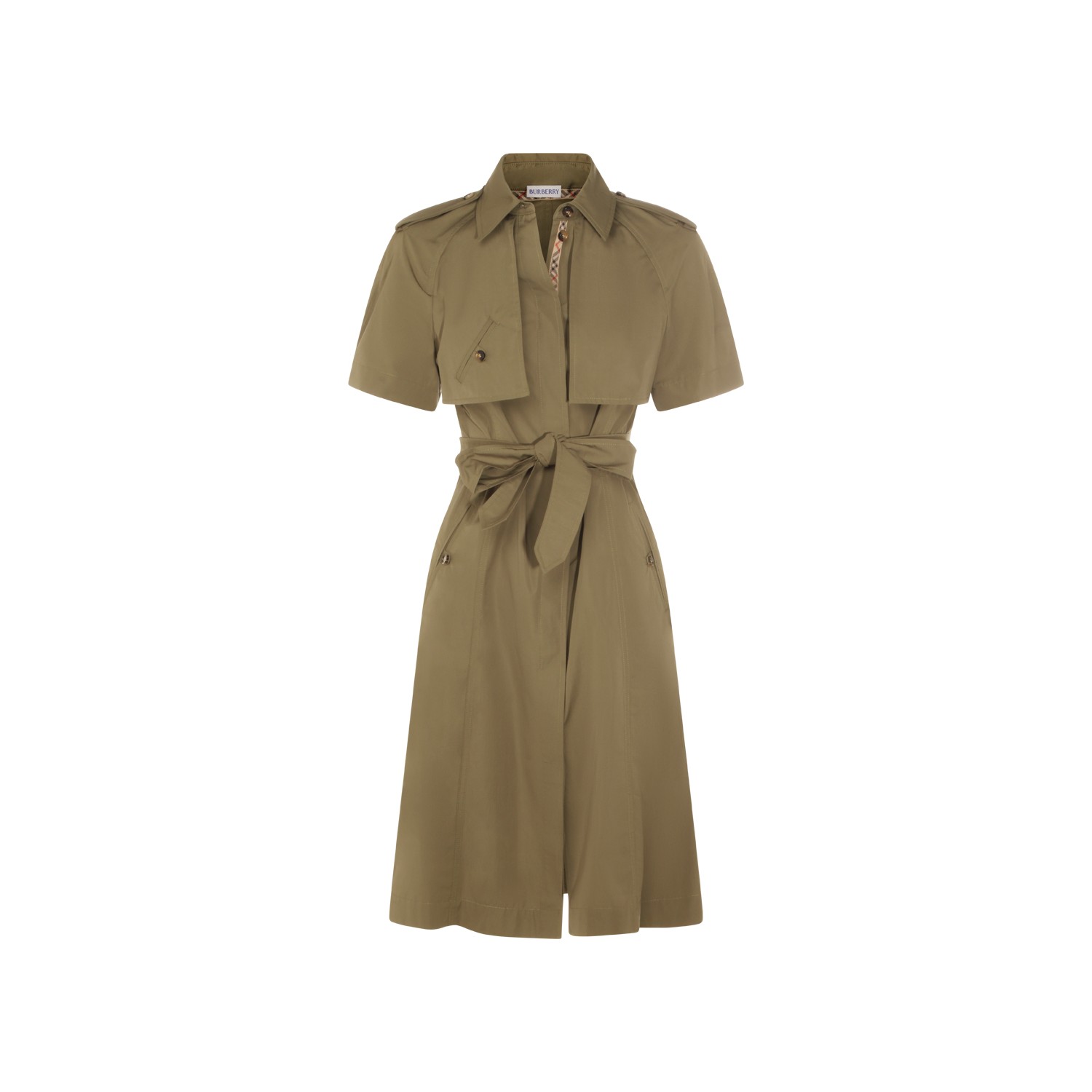 Olive cotton dress from Burberry featuring shirt neck, buttons fastening, short sleeves, waist belt, pockets and all over length.