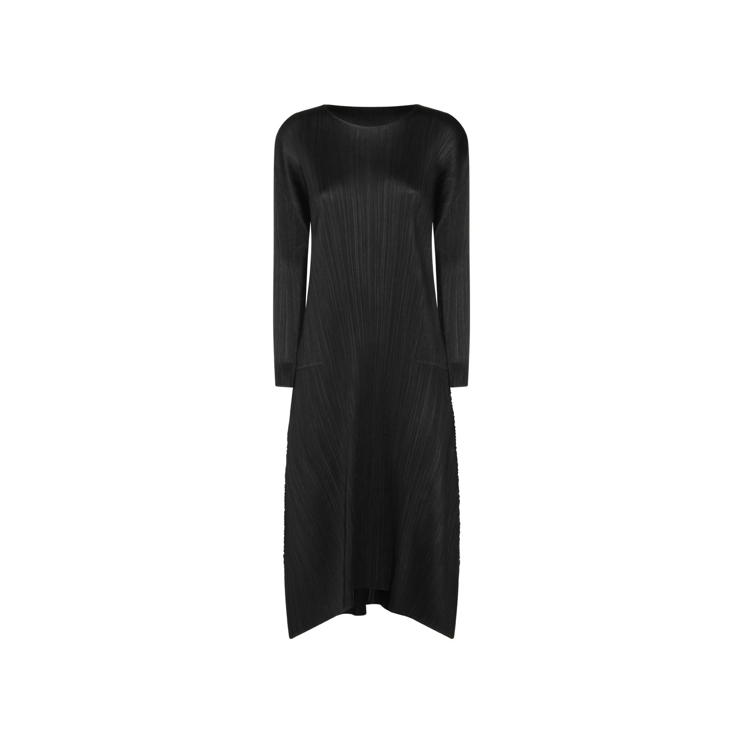 Black dress from Pleats Please Issey Miyake featuring crew neck, long sleeves, all over length and loose vestibility.