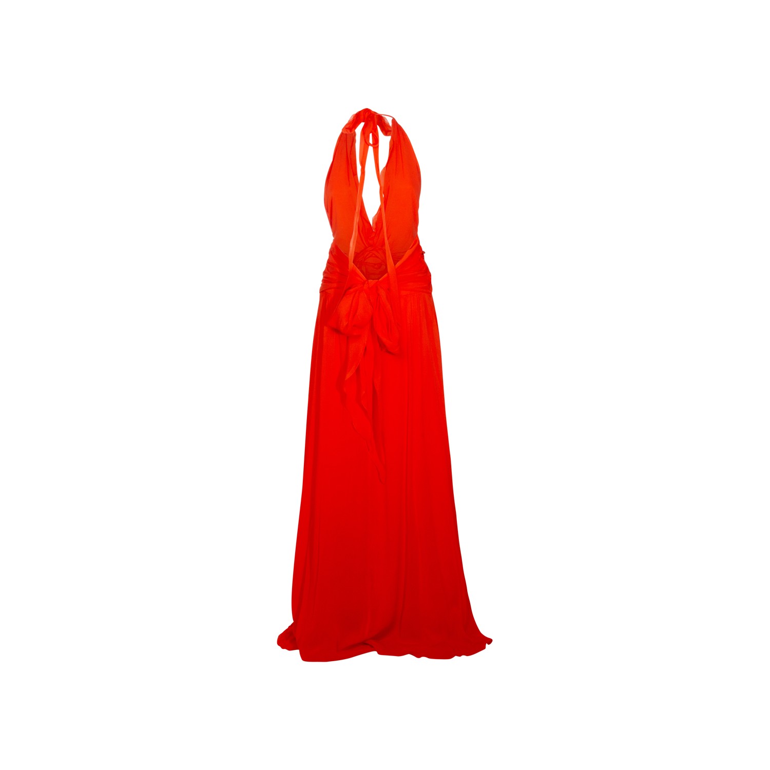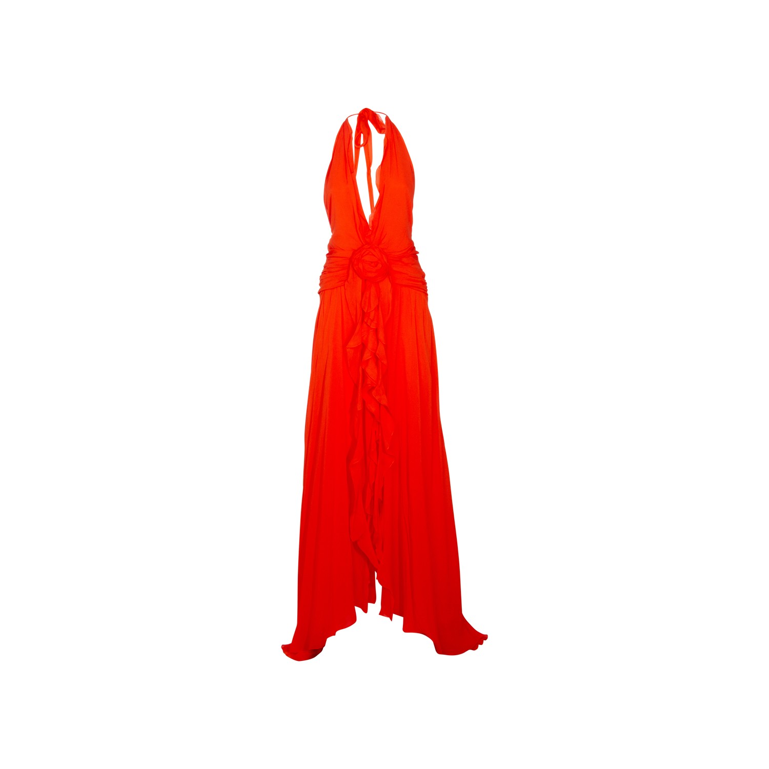 Orange viscose dress from Blumarine featuring deep neckline, sleeveless, draping, regular fit and long lenght.