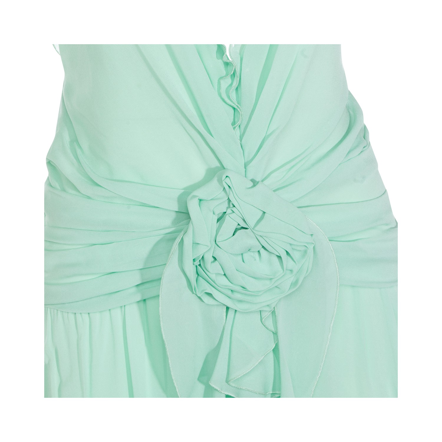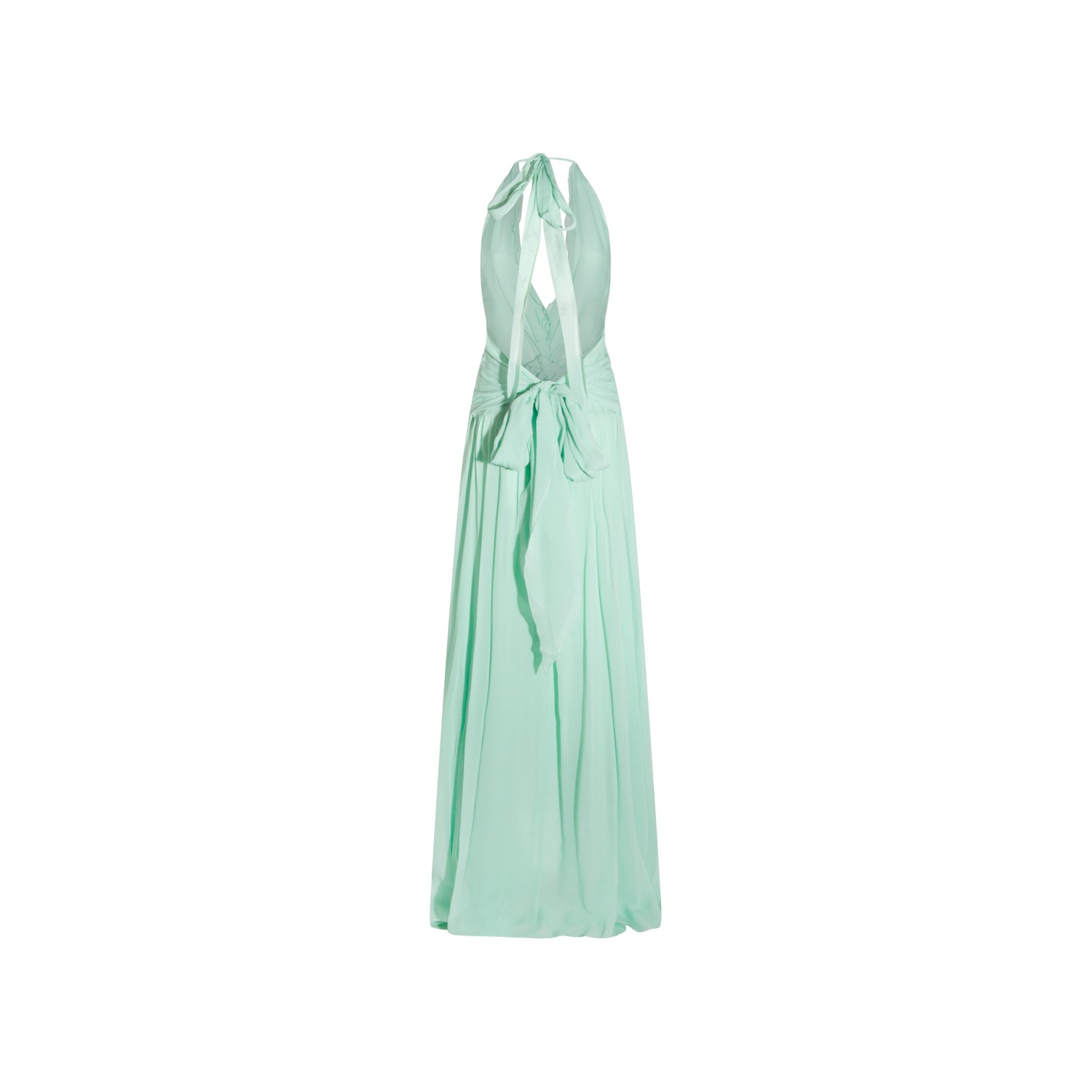 Light green viscose dress from Blumarine featuring deep collar, sleeveless, draping, details and long lenght.