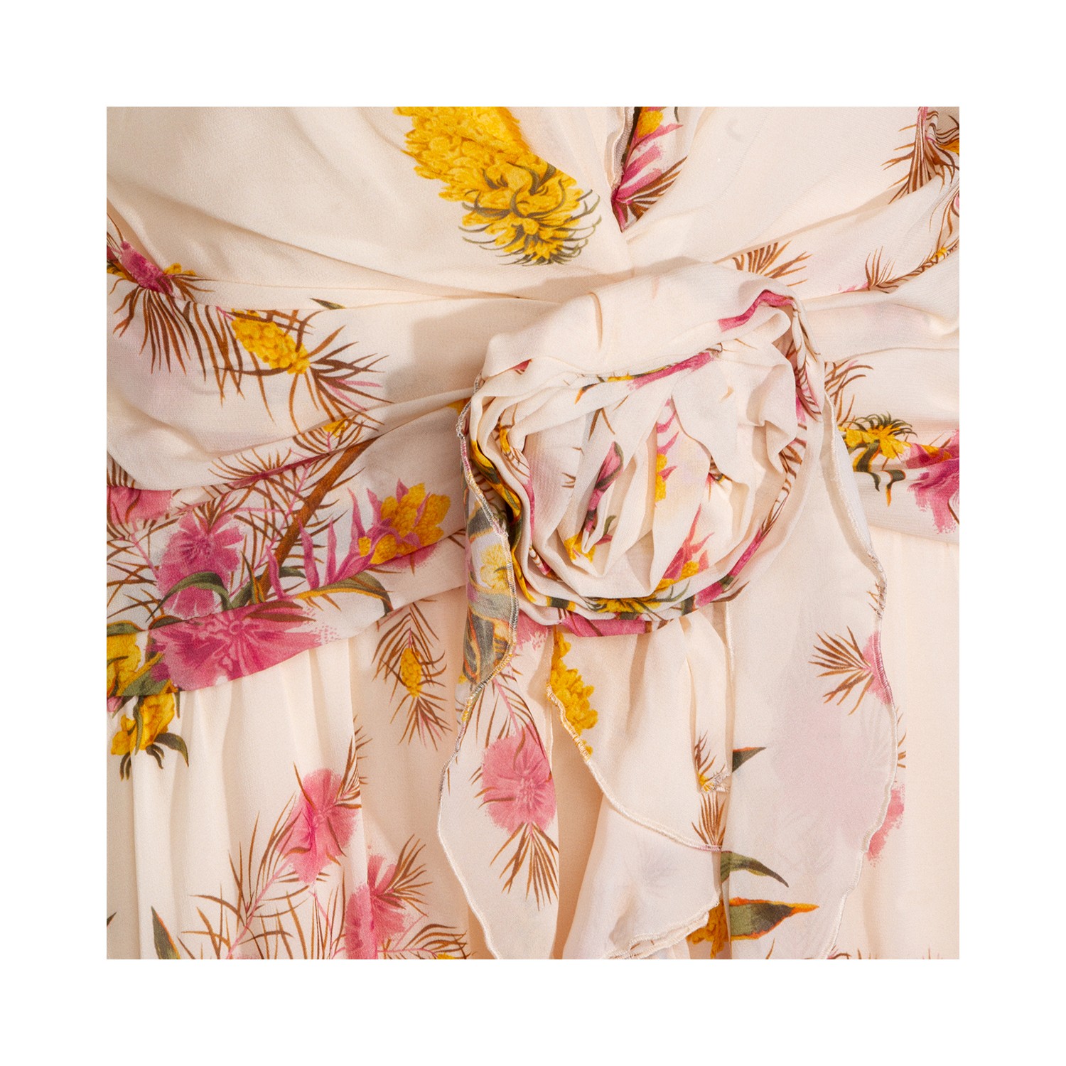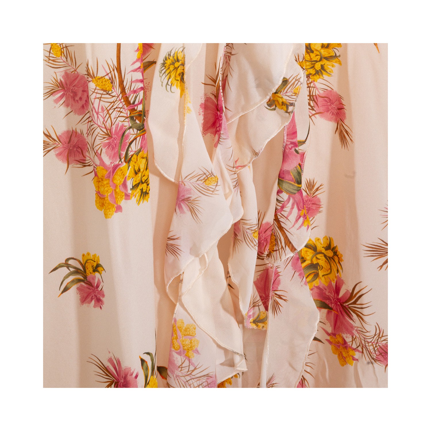 Multicolor viscose dress from Blumarine featuring deep collar, sleeveless, floral pattern, open back, draping and long lenght.