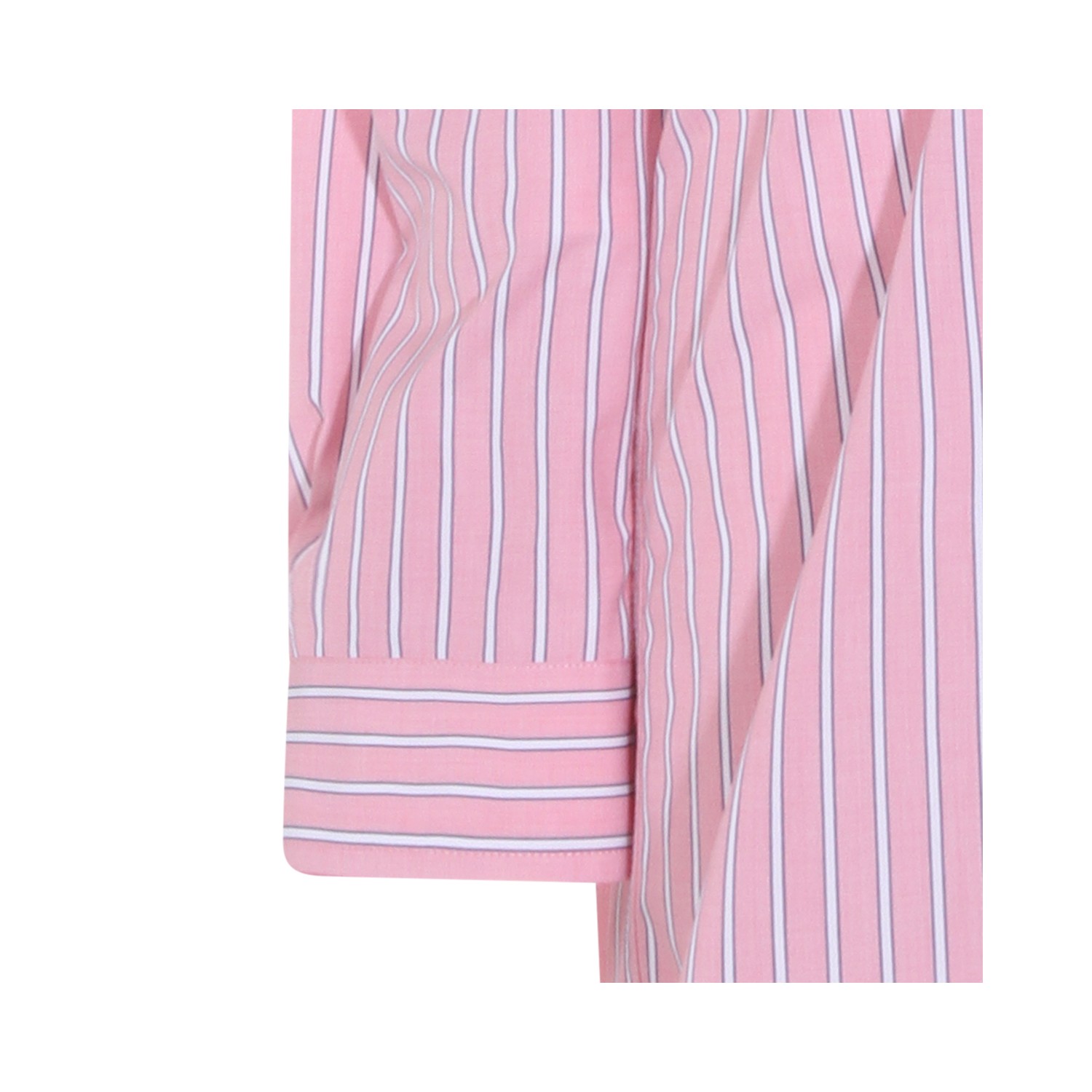 Pink cotton dress from Miu Miu featuring straps, long sleeves, V-neck, buttons fastening, elasticated waist, mid length, all over stripes and frontal logo.