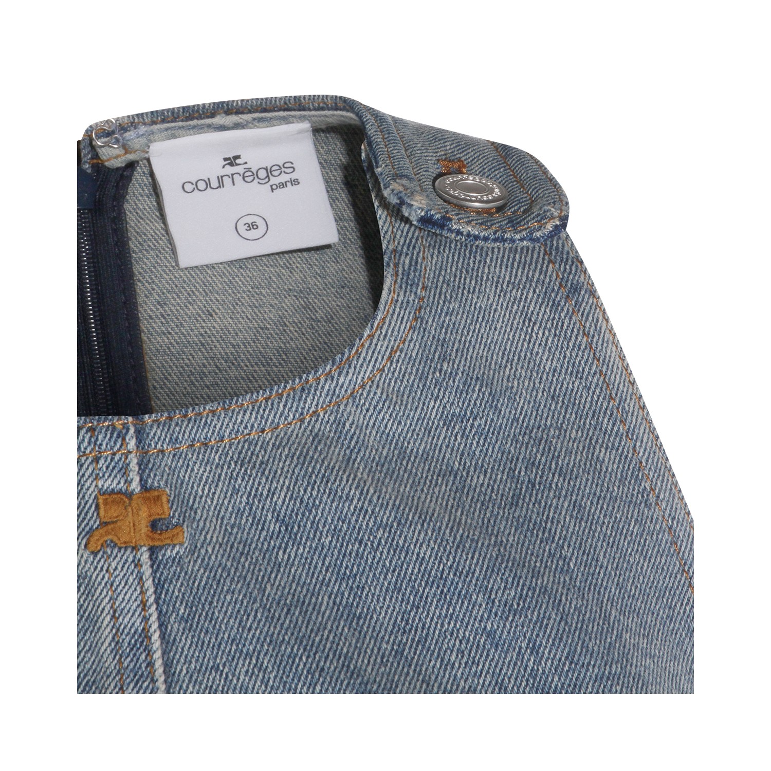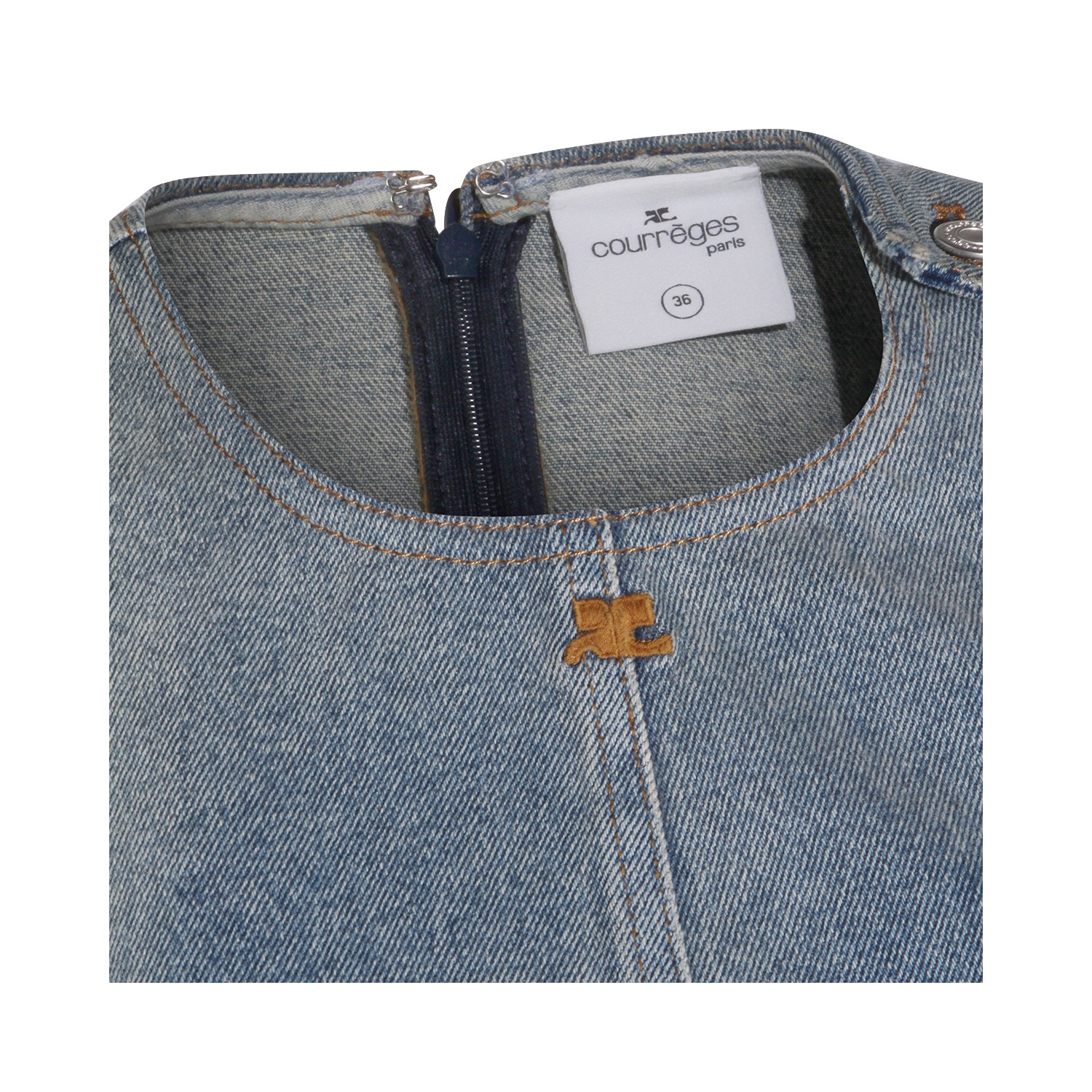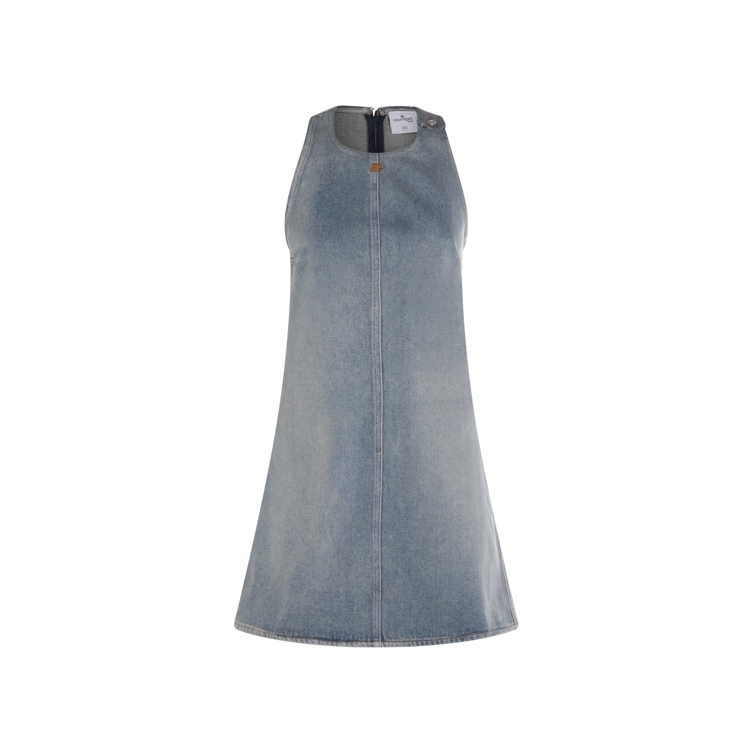 Blue cotton denim dress from Courreges featuring round collar, sleeveless, back zip fastening and regular fit.