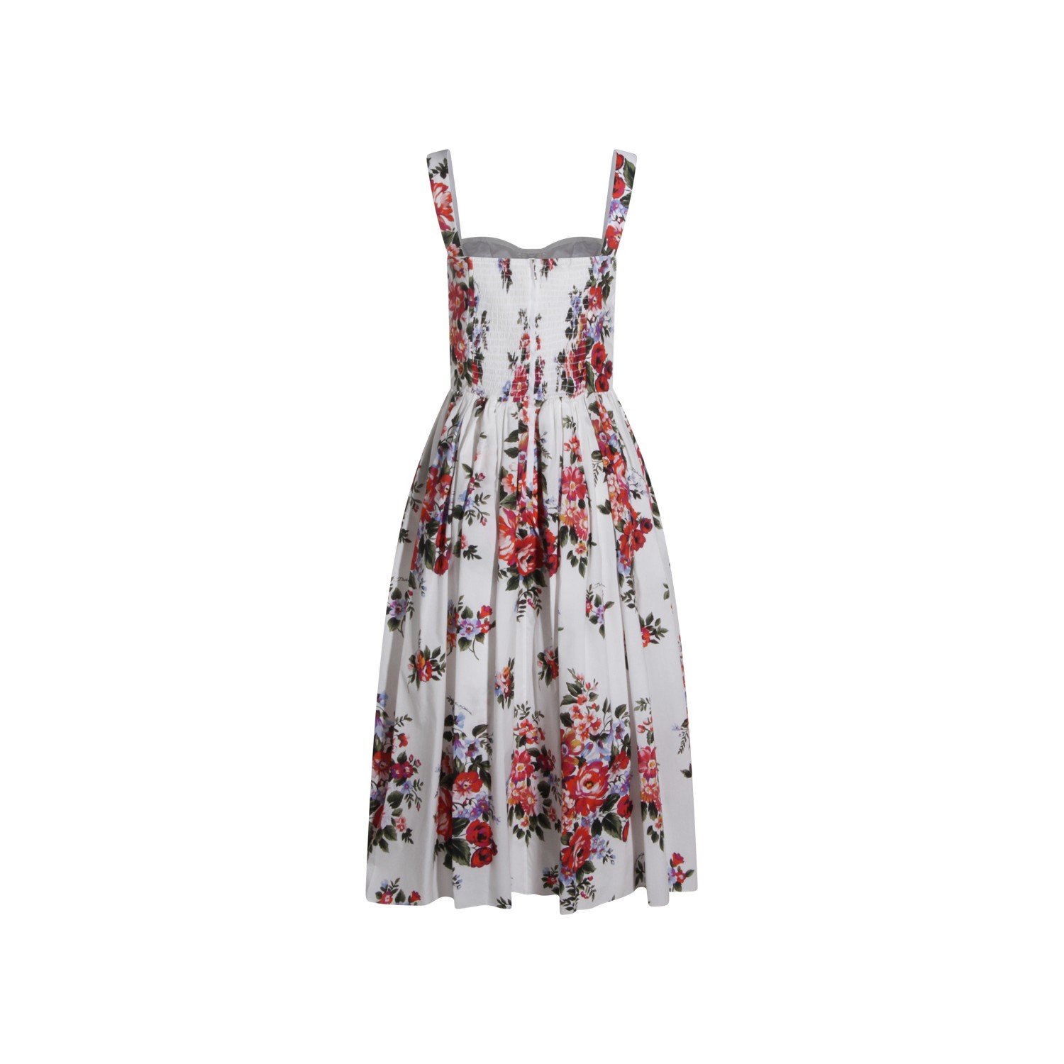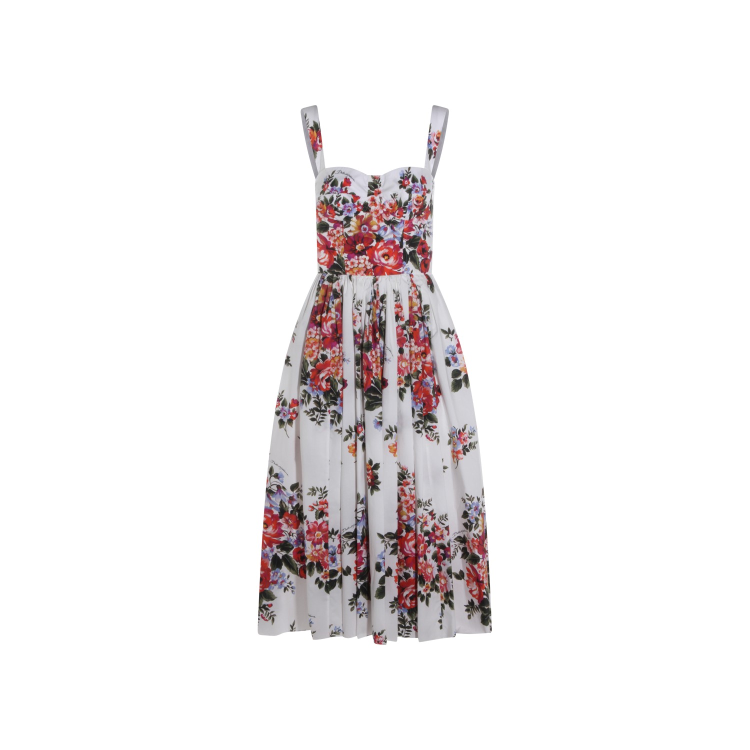 Multicolor cotton dress from Dolce & Gabbana featuring heart neckline, sleeveless, thin straps, floral pattern, back fastening, pleated and midi lenght.