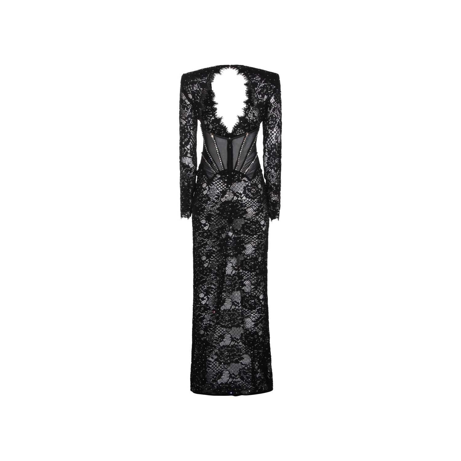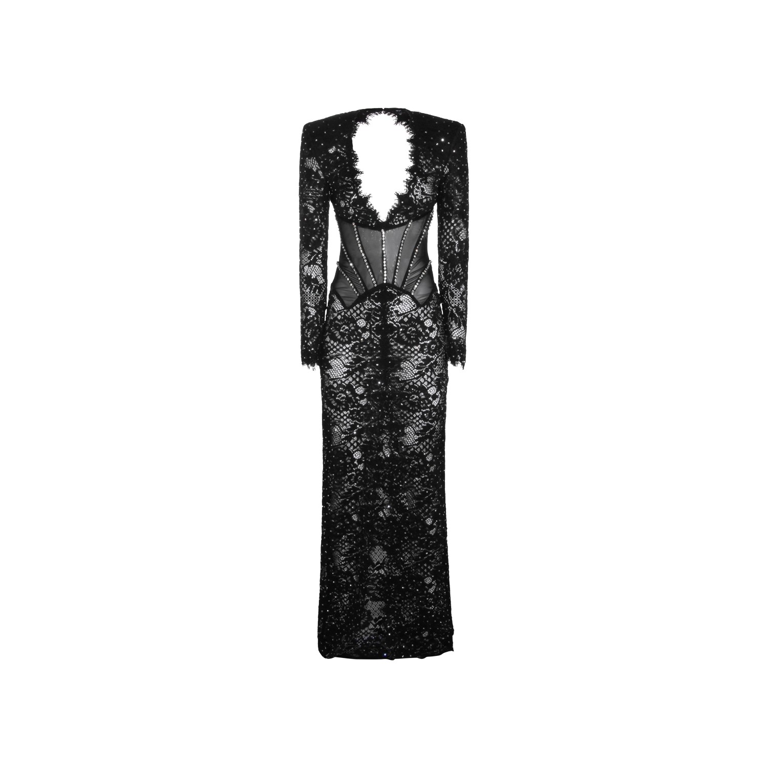 Black maxi dress from Nissa featuring long sleeves, laces, maxi length, back fastening and details.