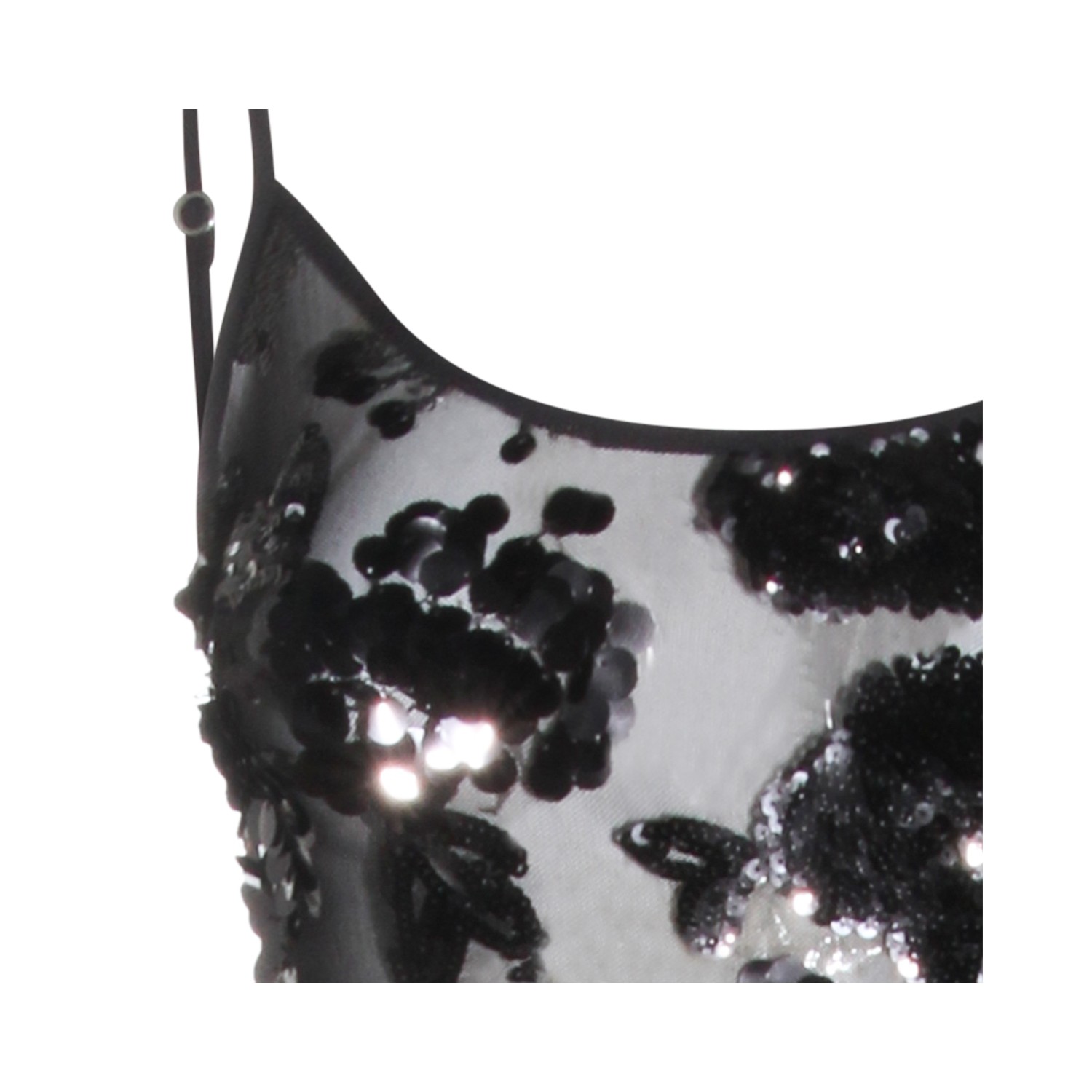 Black maxi dress from Nissa featuring sleeveless, round deep collar, all over laces and trasparence.
