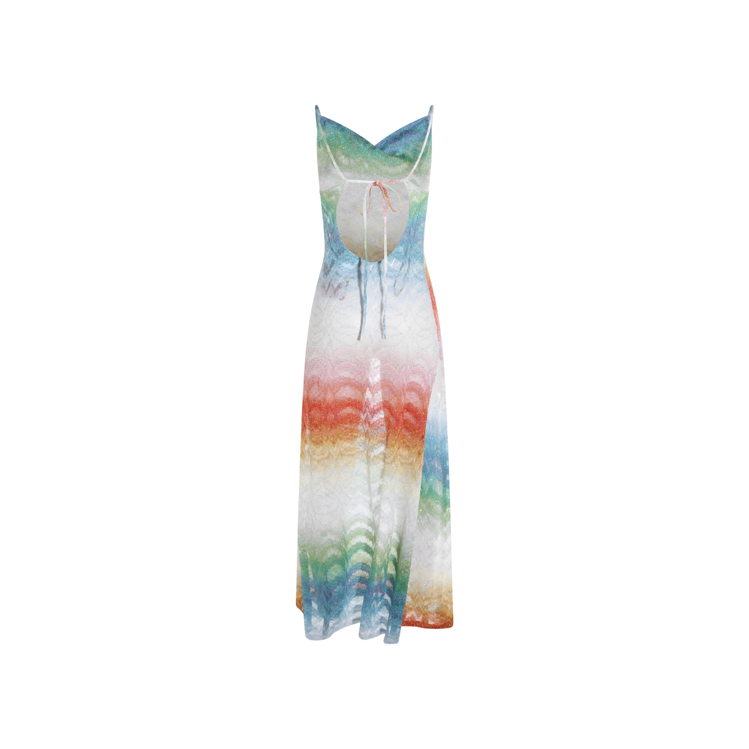 Multicolor viscose dress from Missoni featuring v open neck, sleeves, thin straps, trasparence and long lenght.