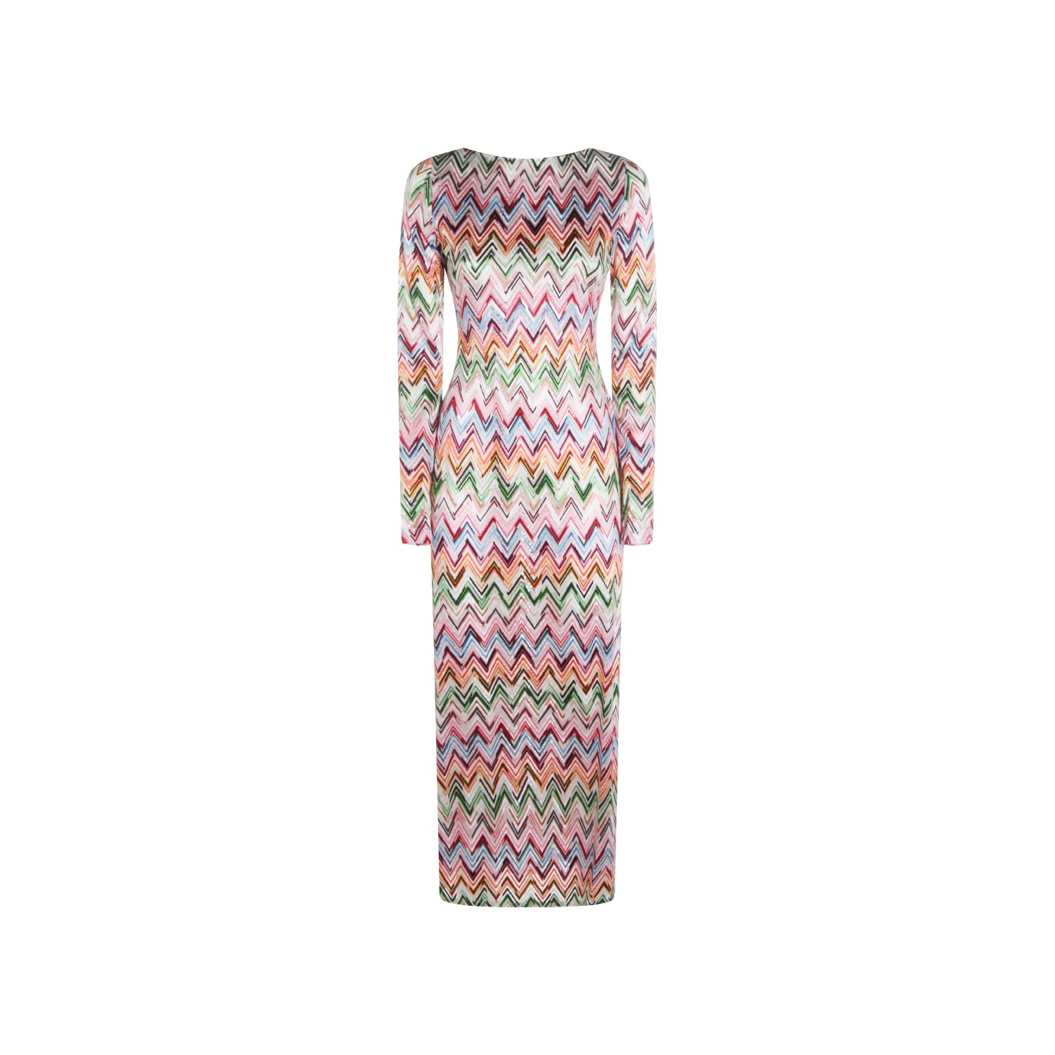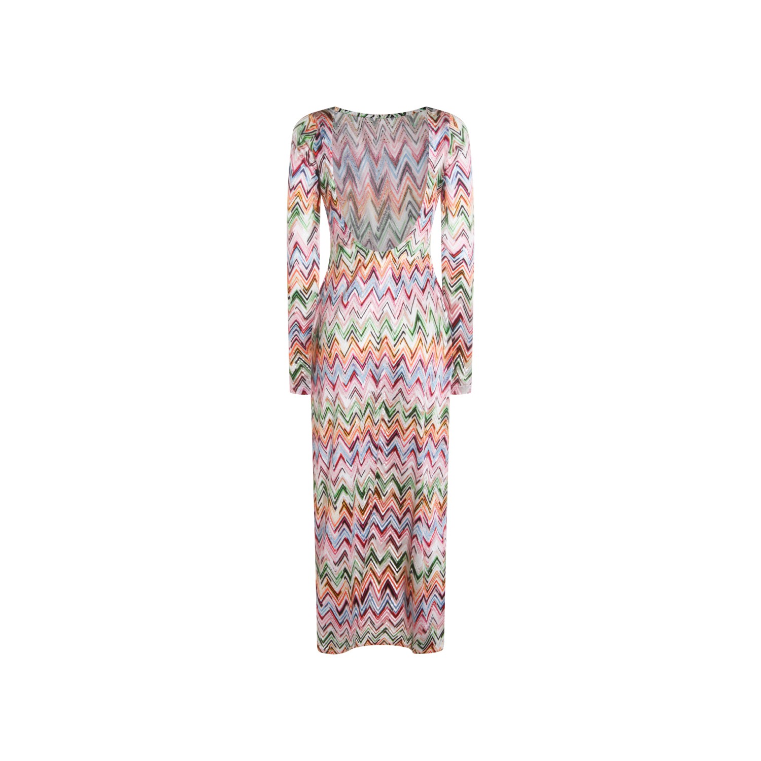 Multicolormviscose dress from Missoni featuring round collar, long sleeves, zig zag patern and long lenght.