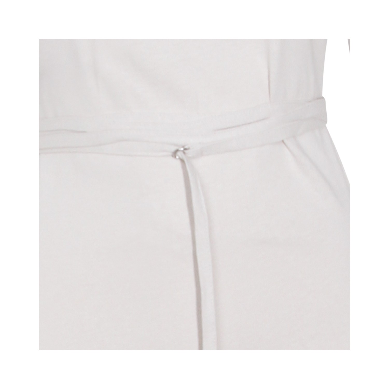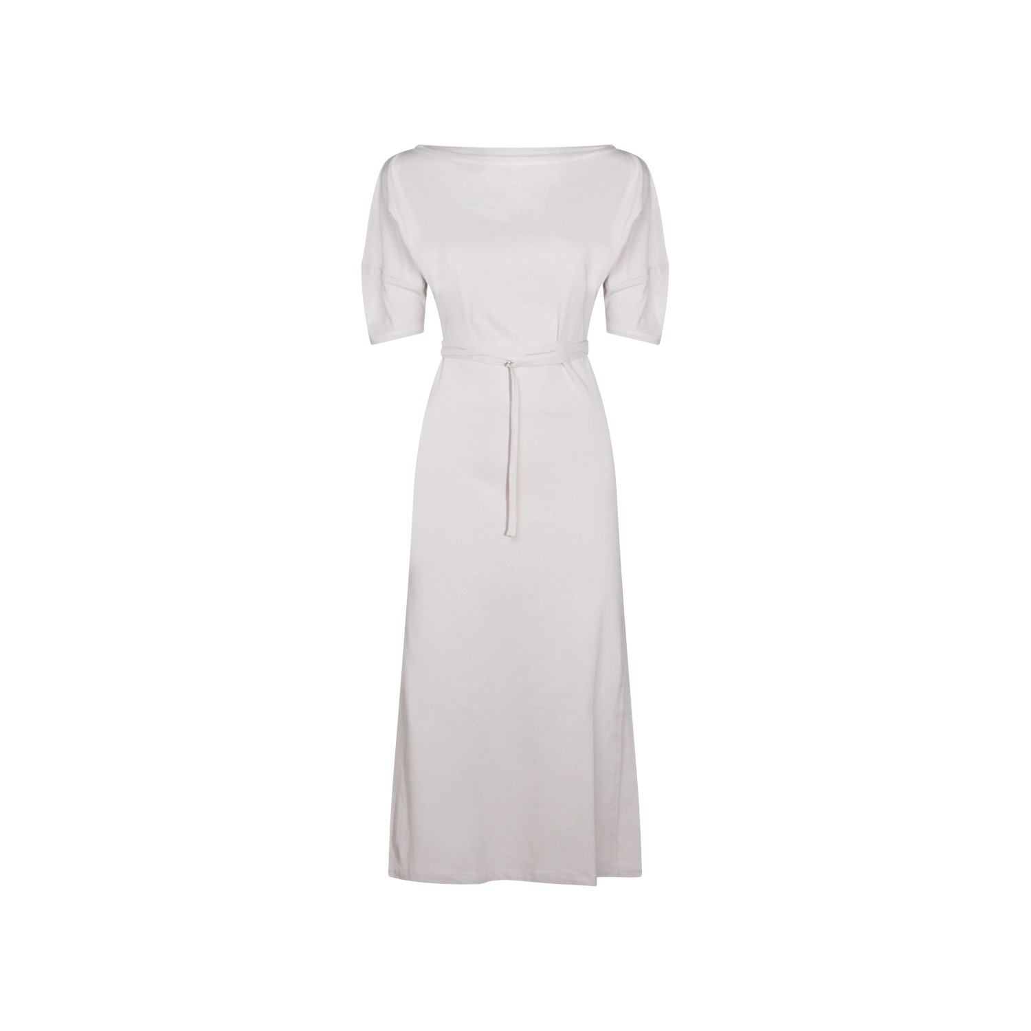 Beige cotton maxi dress from Lemaire featuring round boat collar, short sleeves, lateral split and belt waist.
